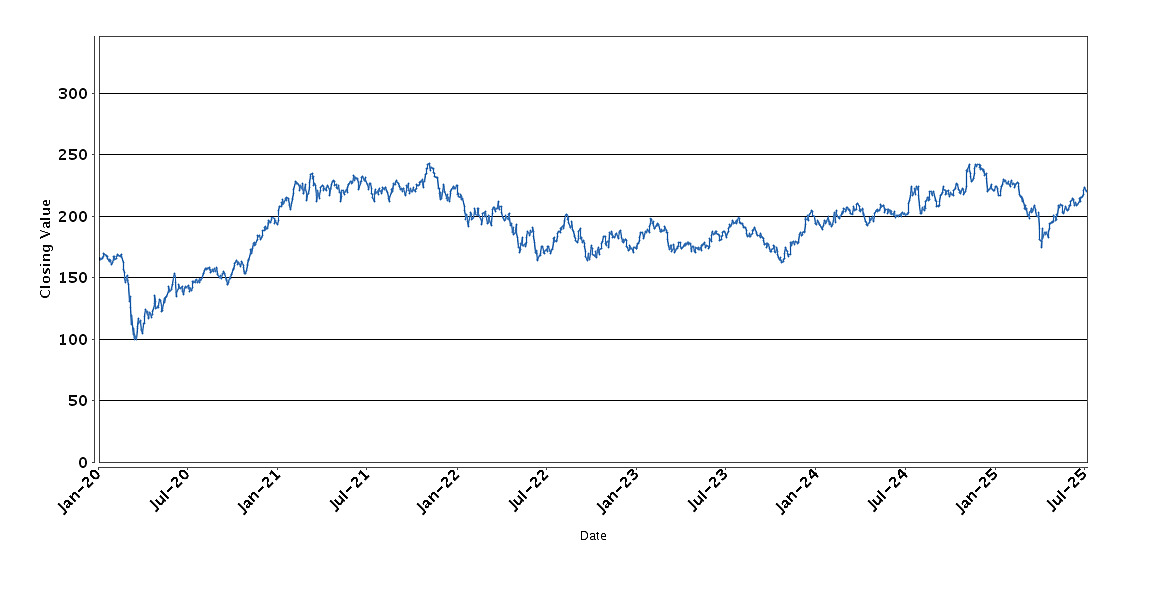 The graph below sets forth the historical performance of the XLE Fund based on the daily Closing Value from January 6, 2020 through July 9, 2025. We obtained the Closing Values shown in the graph below from Bloomberg. We have not independently verified the accuracy or completeness of the information obtained from Bloomberg.
