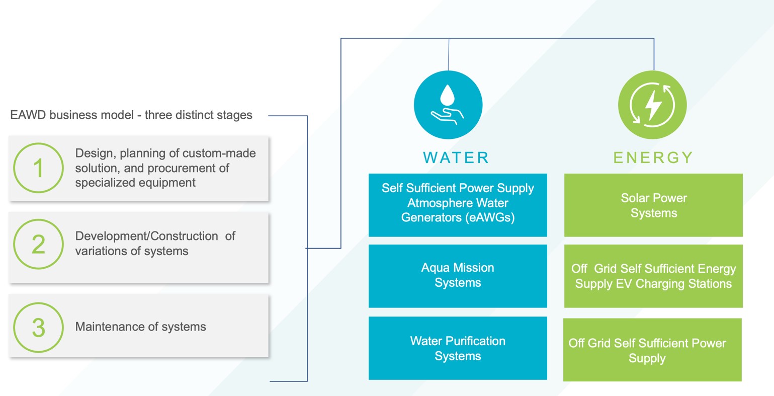 | · | EAWD commercializes proven technologies for the sustainable generation of energy and water. | |