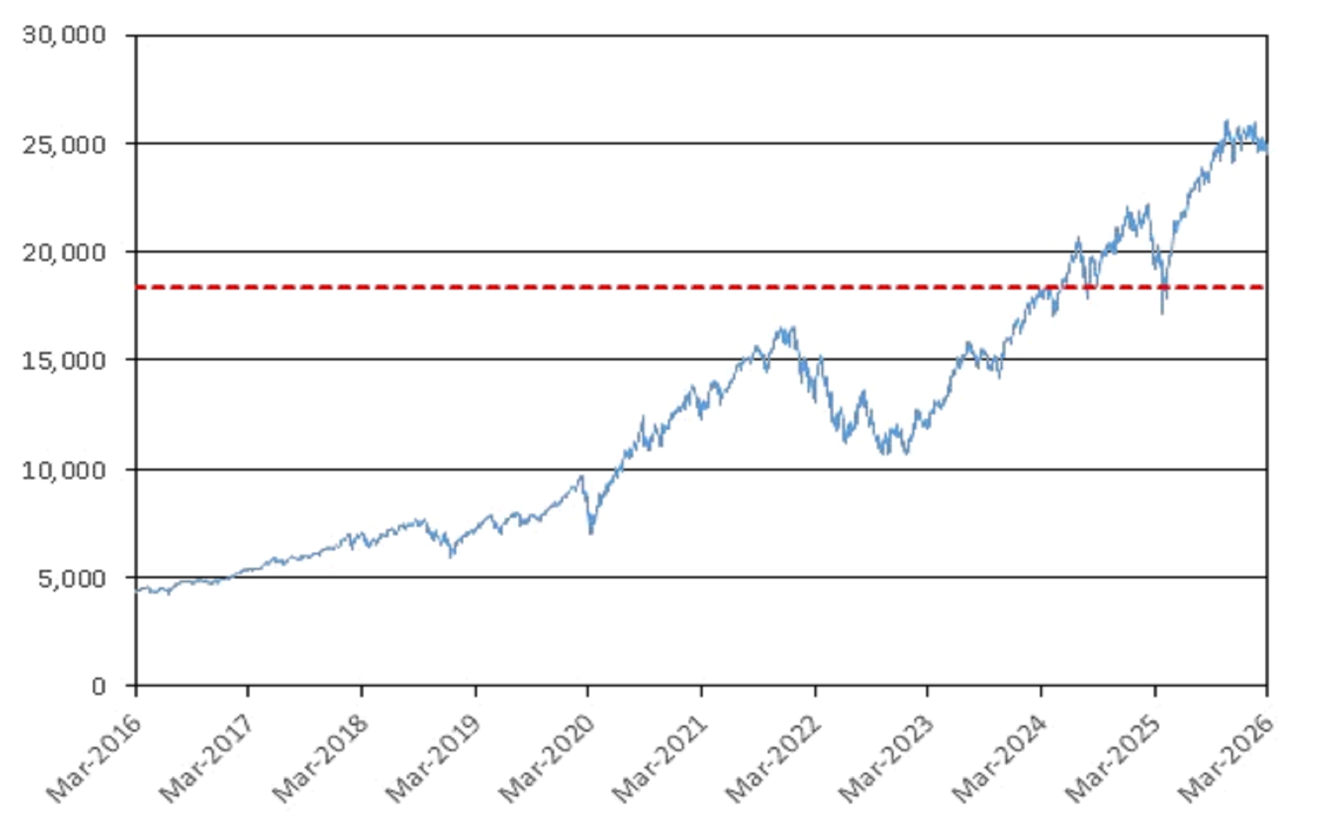 18,400.185, which is 75.00% of the Initial Level, as determined by the Calculation Agent.