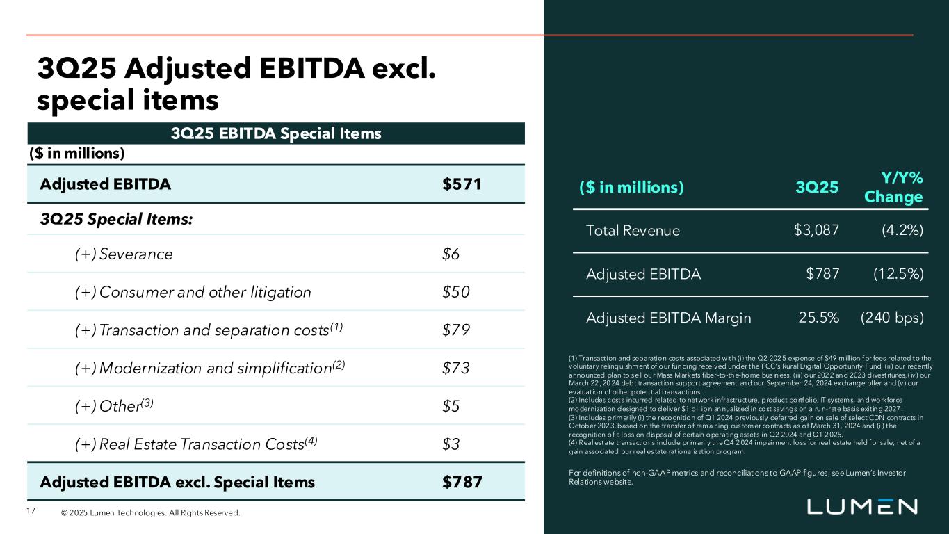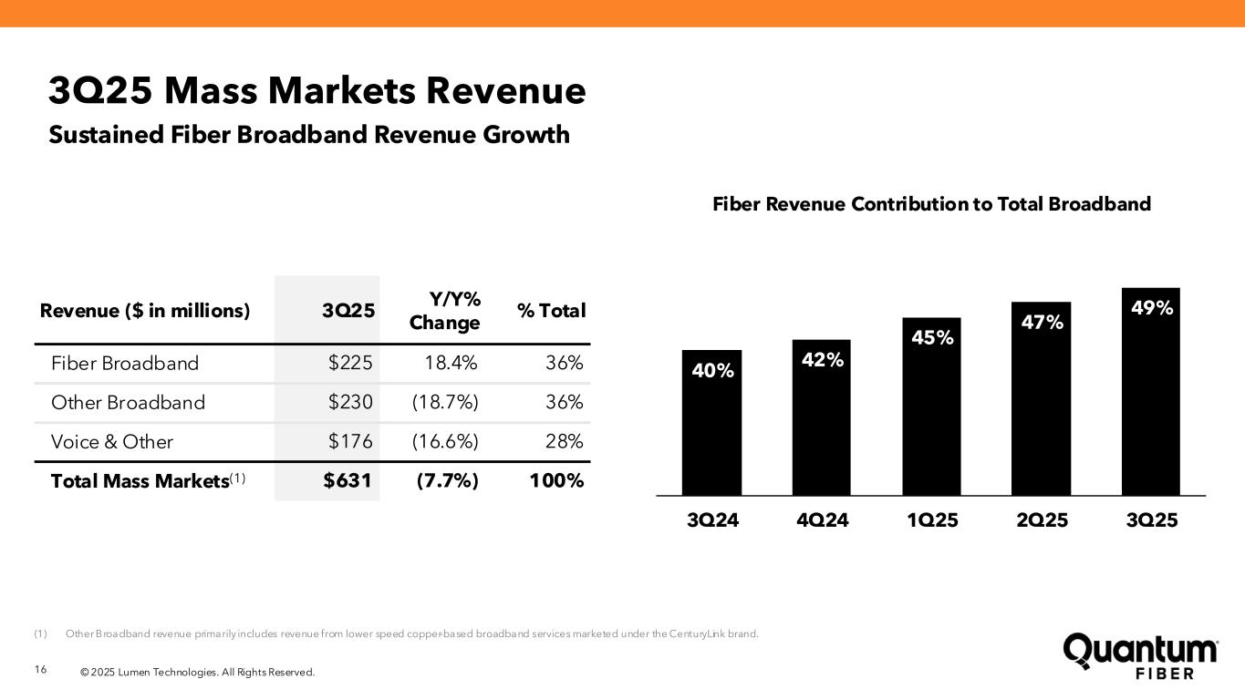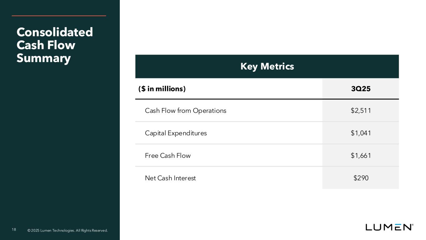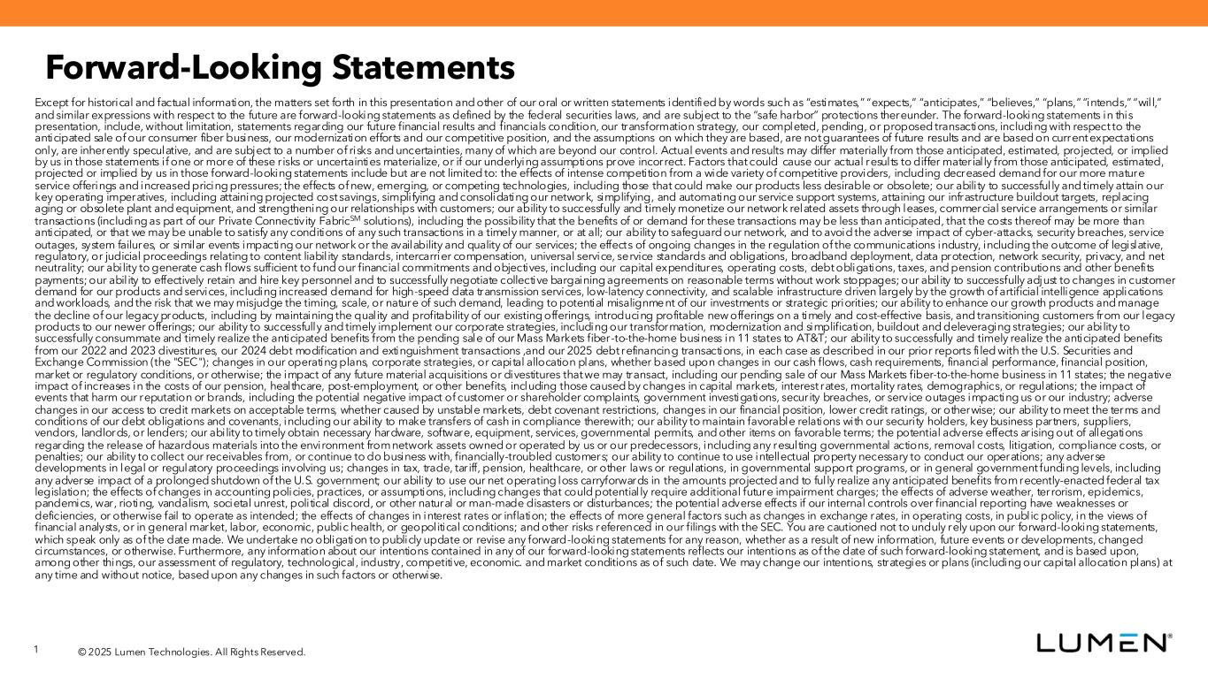 •Operational Execution: Successful Phase I ERP implementation, progress on consumer FTTH sale to AT&T, targeted to close early 2026.