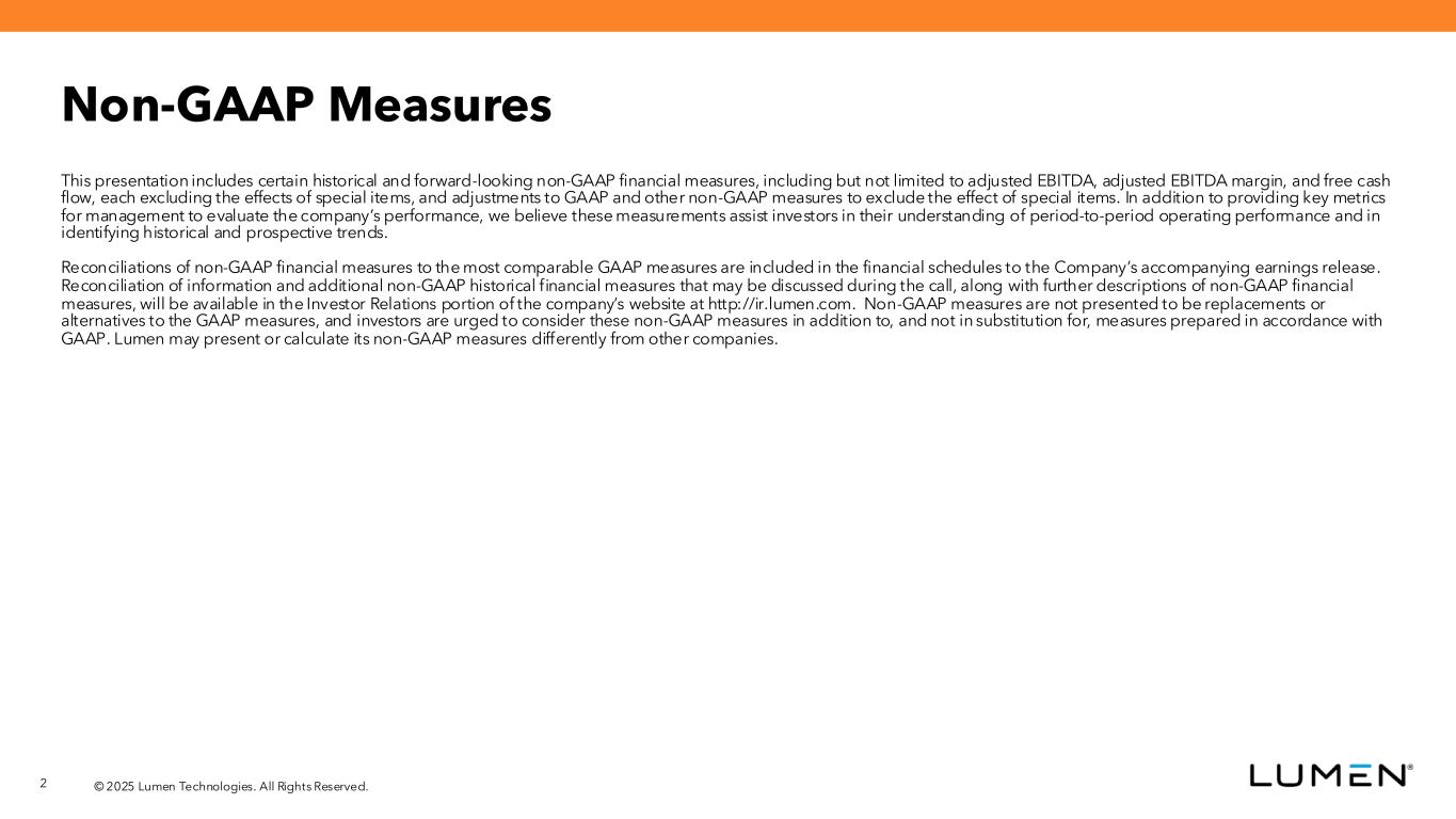 A copy of the slide presentation that the Company will present regarding its operating results during the teleconference beginning at 5:00 p.m. Eastern time on October 30, 2025 is attached to this Current Report on Form 8-K as Exhibit 99.2. The investor presentation material is also available on the “Investors” page of the Company’s website (http://www.lumen.com).