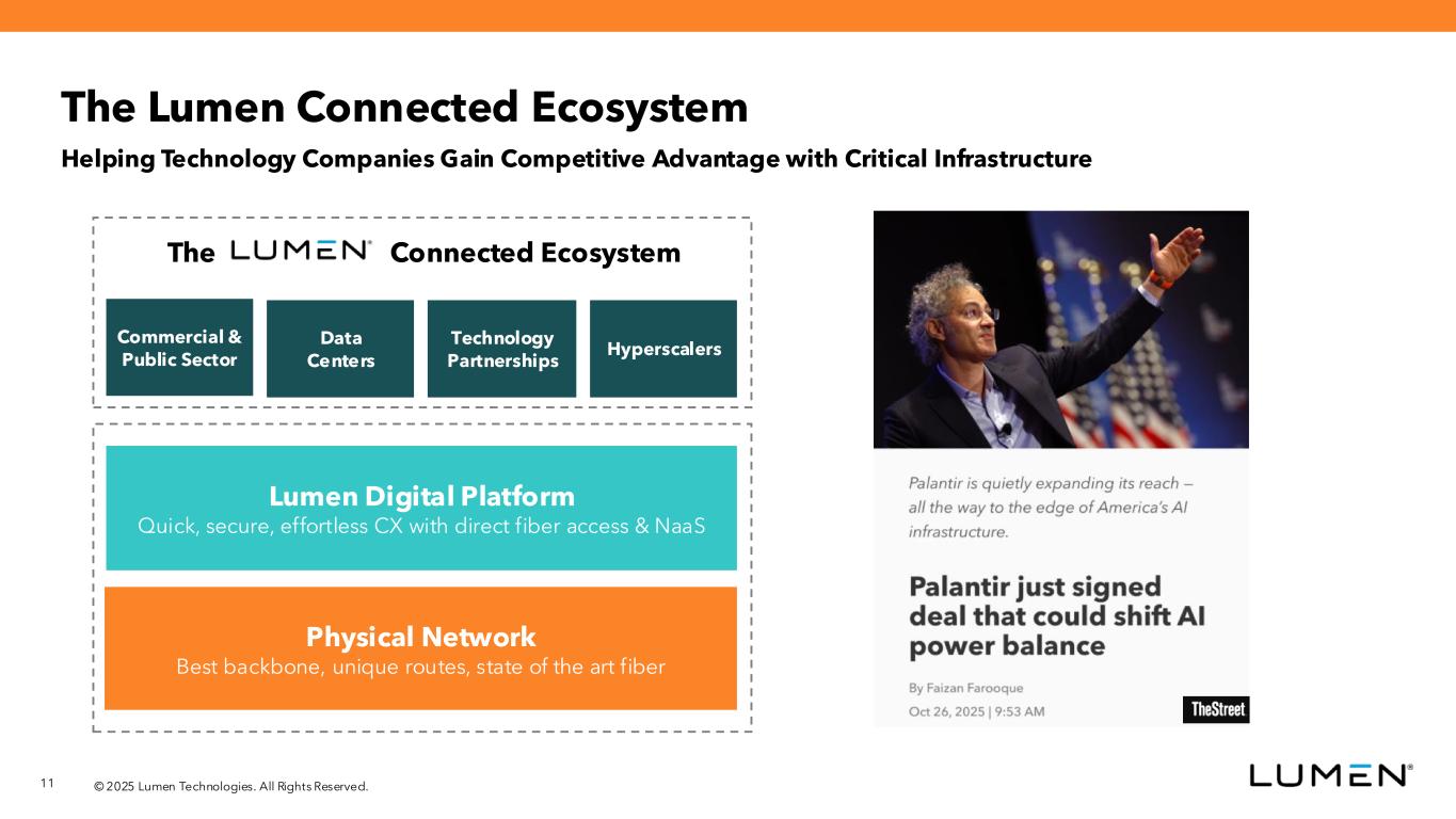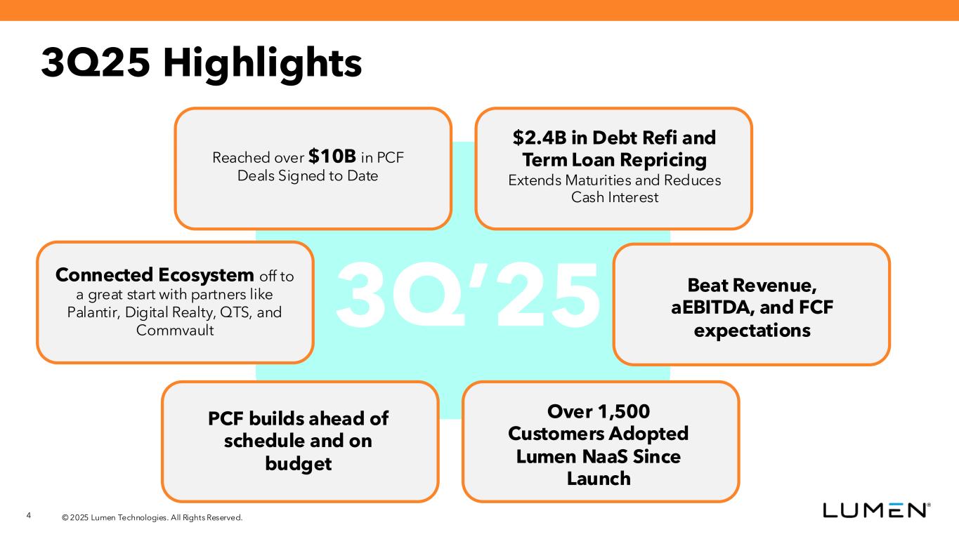 “This quarter, we demonstrated what disciplined execution and bold ambition can achieve,” said Kate Johnson, president and CEO of Lumen Technologies. “We delivered strong financial results—revenue, EBITDA, and free cash flow all ahead of expectations—while advancing our transformation agenda. Our investments in Private Connectivity Fabric, NaaS, and digital innovation are opening new doors, and the momentum is unmistakable. We’re scaling our platform, expanding our reach, and accelerating our pivot to sustainable growth as we build the backbone of the AI economy. I’m proud of our team’s accomplishments—and even more excited for what’s ahead.”