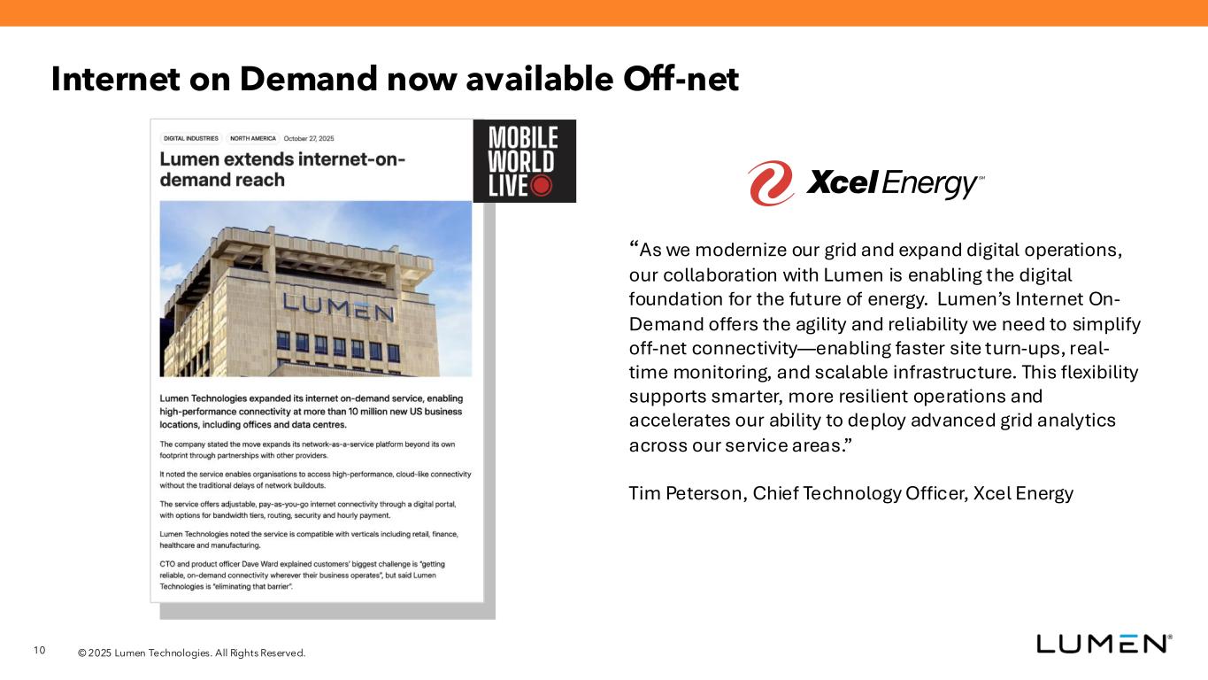 •Growth Pivot: In October, $1 billion in new Private Connectivity Fabric deals (total PCF deal value now $10 billion+), scaling NaaS platform, launch of IoD offnet innovation.