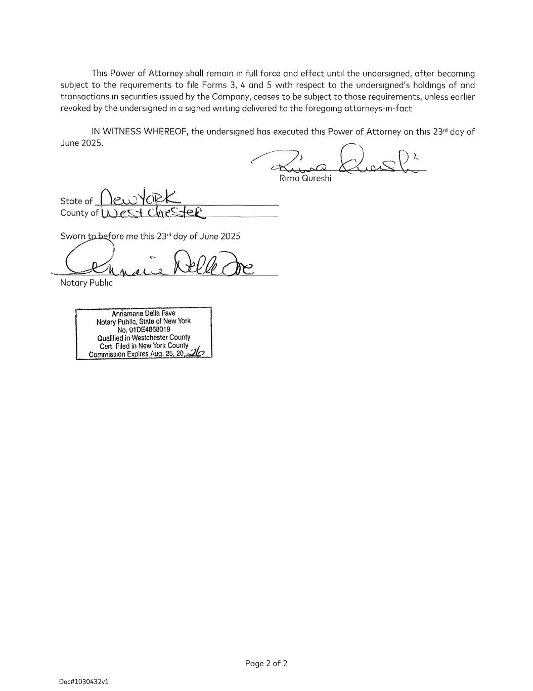 /s/ Craig Brown, as attorney-in-fact for Rima Qureshi, pursuant to a power of attorney dated June 23, 2025 | 06/26/2025 | |