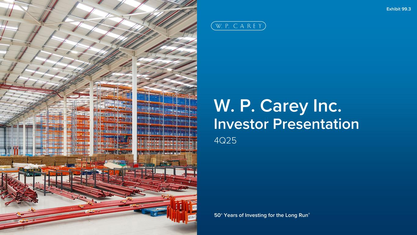 50+ Years of Investing for the Long Run® 4Q25 W. P. Carey Inc. Investor Presentation Exhibit 99.3