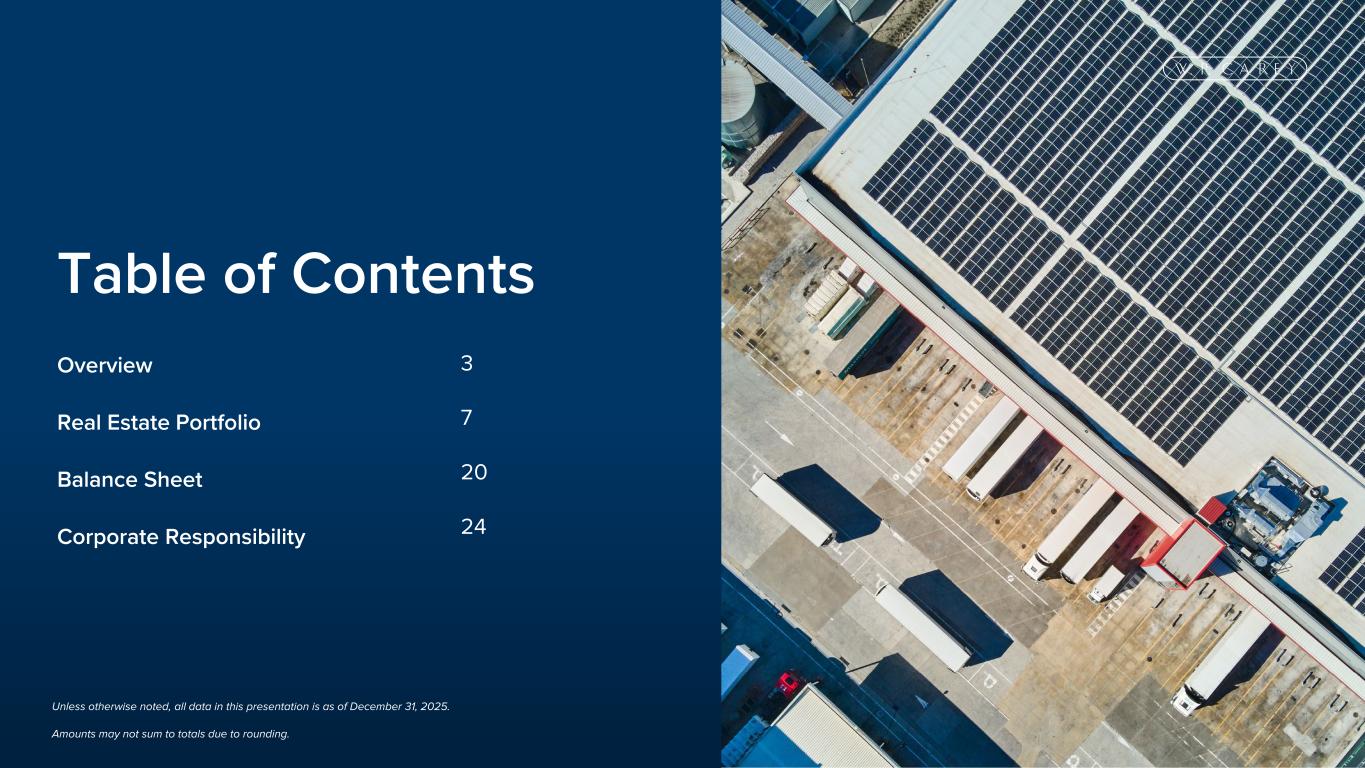 Table of Contents Unless otherwise noted, all data in this presentation is as of December 31, 2025. Amounts may not sum to totals due to rounding. Overview Real Estate Portfolio Balance Sheet Corporate Responsibility 3 7 20 24