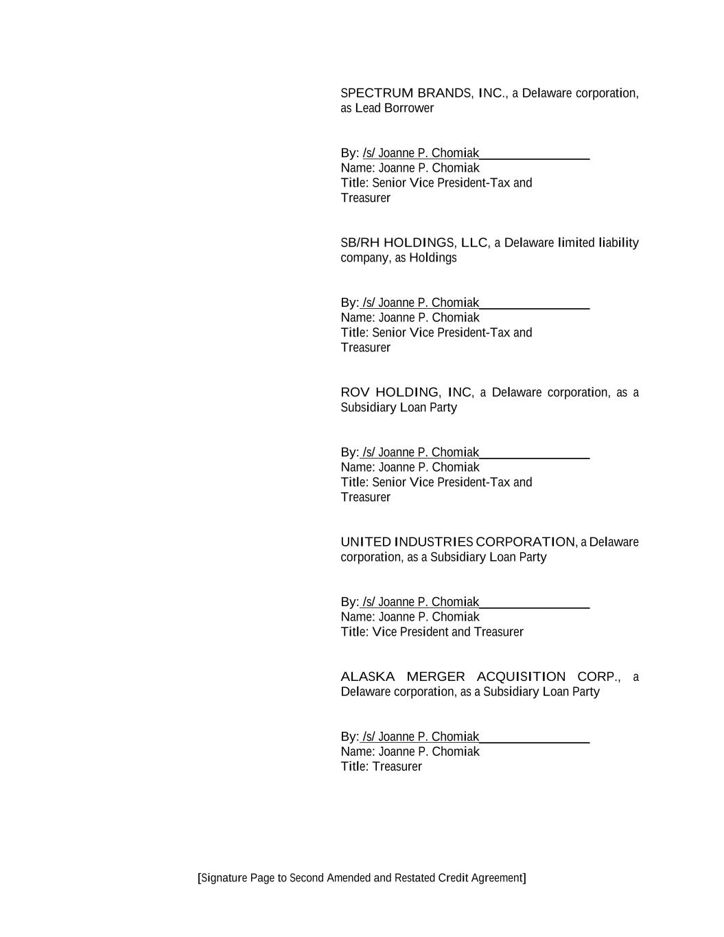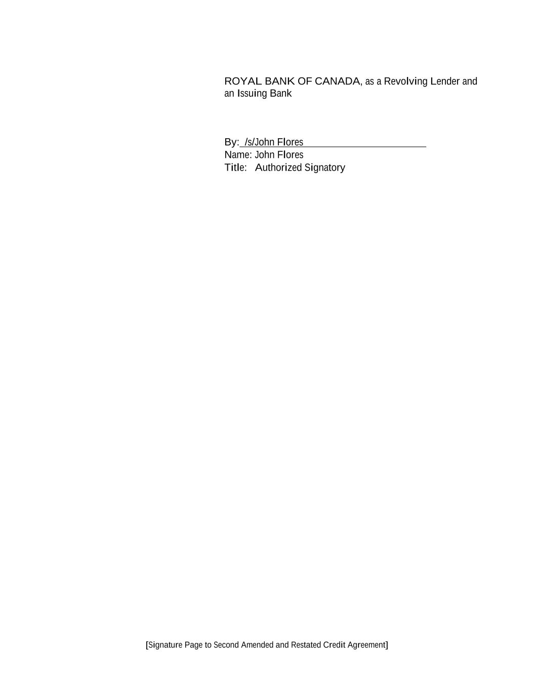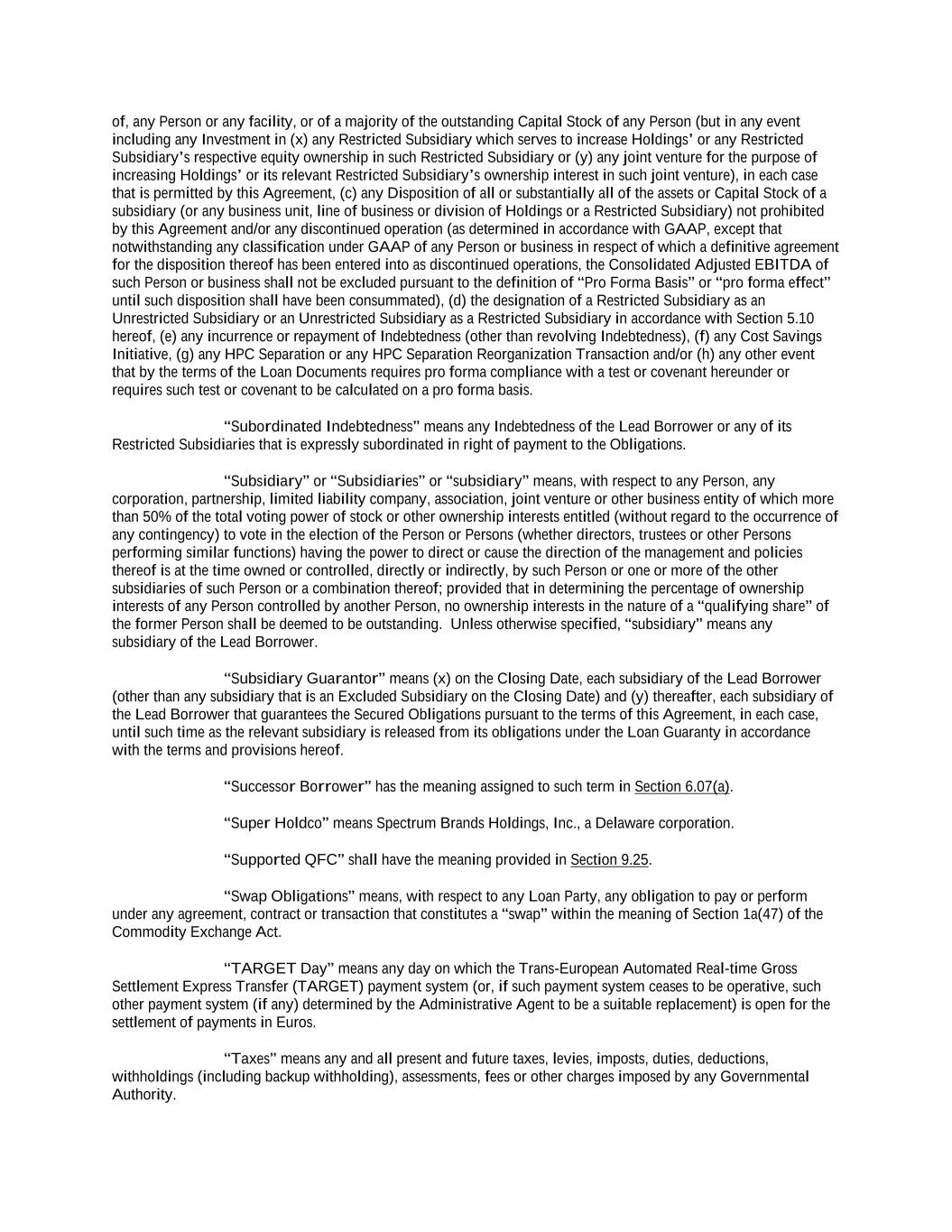 TABLE OF CONTENTS Page -1- 61234327 #97236474v29 CREDIT AGREEMENT SECOND AMENDED AND RESTATED CREDIT AGREEMENT dated as of June 23, 2015, as amended and restated as of June 30, 2020 as further amended and restated as of October 19, 2023 (the “Agreement”) by and among SPECTRUM BRANDS, INC., a Delaware corporation (the “Lead Borrower”), SB/RH HOLDINGS, LLC, a Delaware limited liability company (“Holdings”), the Lenders (such term and each other capitalized term used but not defined in this introductory statement having the meaning given to it in Article I), ROYAL BANK OF CANADA (“Royal Bank”), in its capacities as administrative agent for the Lenders (in such capacity, including any successor thereto, the “Administrative Agent”), as collateral agent for the Lenders (in such capacity, including any successor thereto, the “Collateral Agent”), and ROYAL BANK OF CANADA, JPMORGAN CHASE BANK, N.A. (“JPM”), BARCLAYS BANK PLC (“Barclays”) and BANK OF AMERICA, N.A. (“BofA”), each as an Issuing Bank. RECITALS A. The Lead Borrower has requested that, immediately upon (or contemporaneously with) the satisfaction in full of the applicable conditions precedent set forth in Section 4.01 below, the Revolving Lenders extend credit to the Borrowers in the form of U.S. Dollar revolving commitments in the aggregate initial commitment amount equivalent to $400 million and multicurrency revolving commitments in the aggregate commitment amount equivalent to $100 million, in each case for the making, from time to time, of revolving loans; same day base rate loans denominated in U.S. Dollars; ancillary facilities; and the issuance, from time to time, of letters of credit, in each case on the terms and subject to the conditions set forth in this Agreement. B. The Lenders have indicated their willingness to extend such credit, and the Issuing Banks have indicated their willingness to issue Letters of Credit, in each case on the terms and subject to the conditions set forth herein. Accordingly, the parties hereto agree as follows: ARTICLE 1 DEFINITIONS Section 1.01 Defined Terms. As used in this Agreement, the following terms have the meanings specified below: “ABR”, when used in reference to any Loan or Borrowing, refers to whether such Loan, or the Loans comprising such Borrowing, bear interest at a rate determined by reference to the Alternate Base Rate or the Canadian Prime Rate, as applicable; provided that in no event shall the ABR be less than 1.00%. “ACH” means automated clearing house transfers. “Additional Agreement” has the meaning assigned to such term in Article 8. “Additional Borrowers” means the Pre-Approved Borrowers and the Other Non-U.S. Revolving Facility Borrowers. “Additional Commitments” means any commitments hereunder added pursuant to Section 2.22, 2.23 or 9.02(c). “Additional Lender” has the meaning assigned to such term in Section 2.22(b). “Additional Loans” means the Additional Revolving Loans. “Additional Revolving Commitments” means any revolving credit commitment added pursuant to Section 2.22, 2.23 or 9.02(c)(ii).
