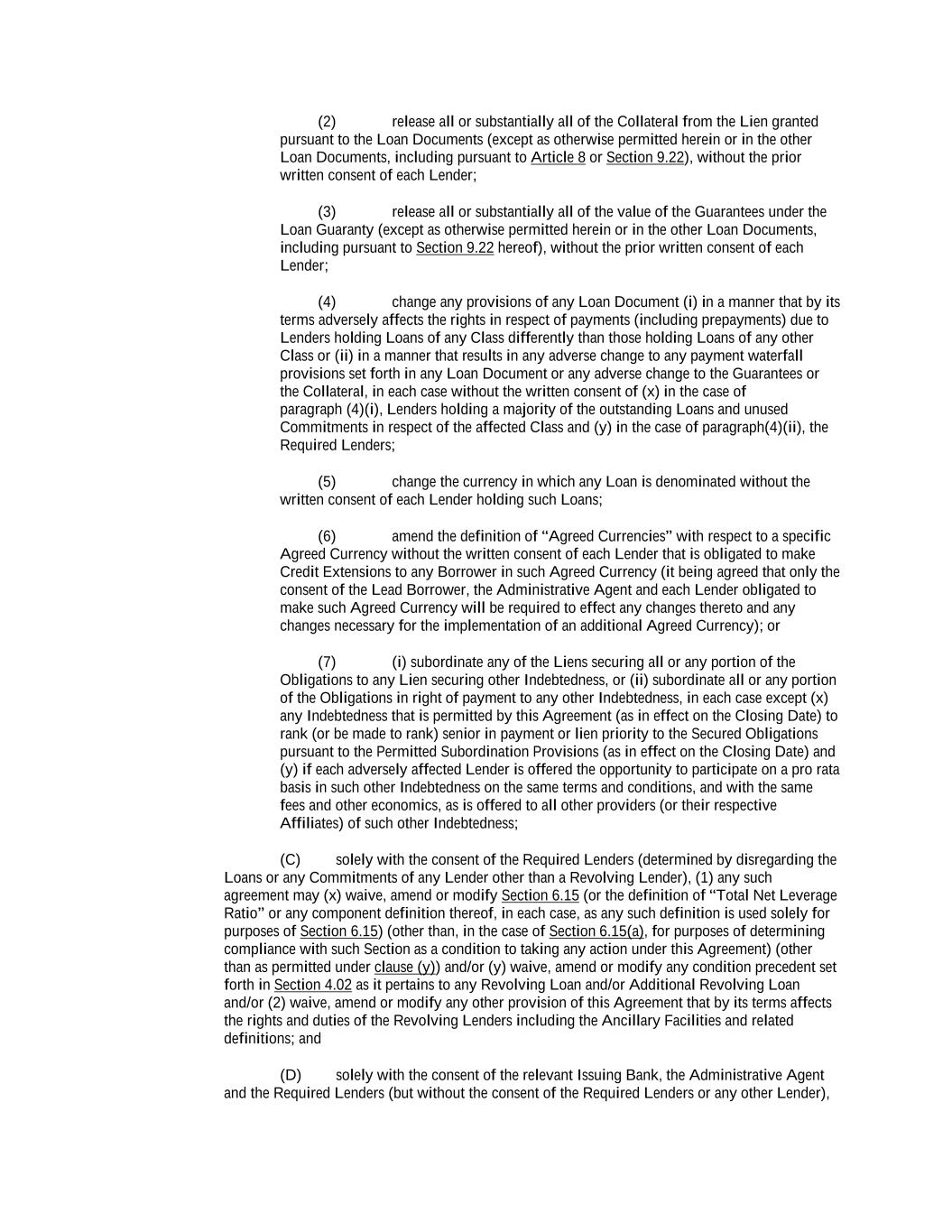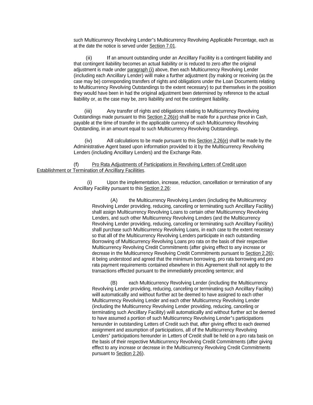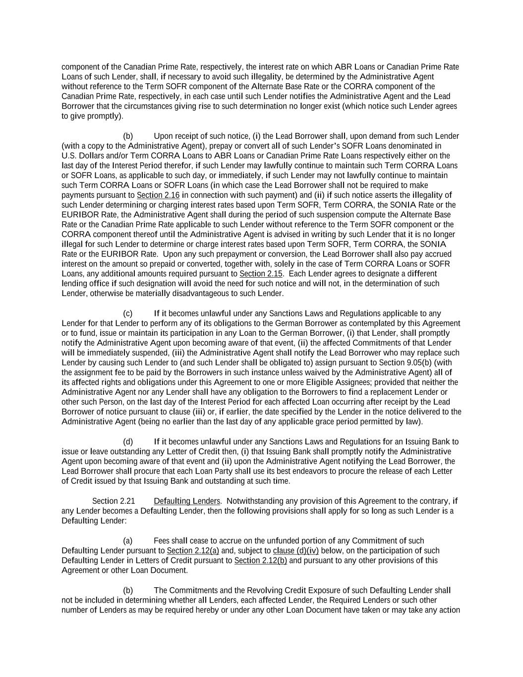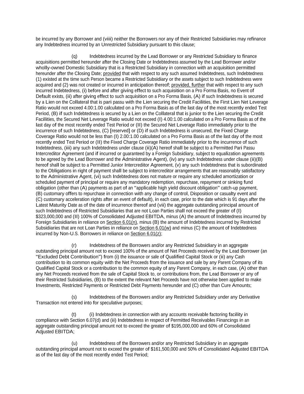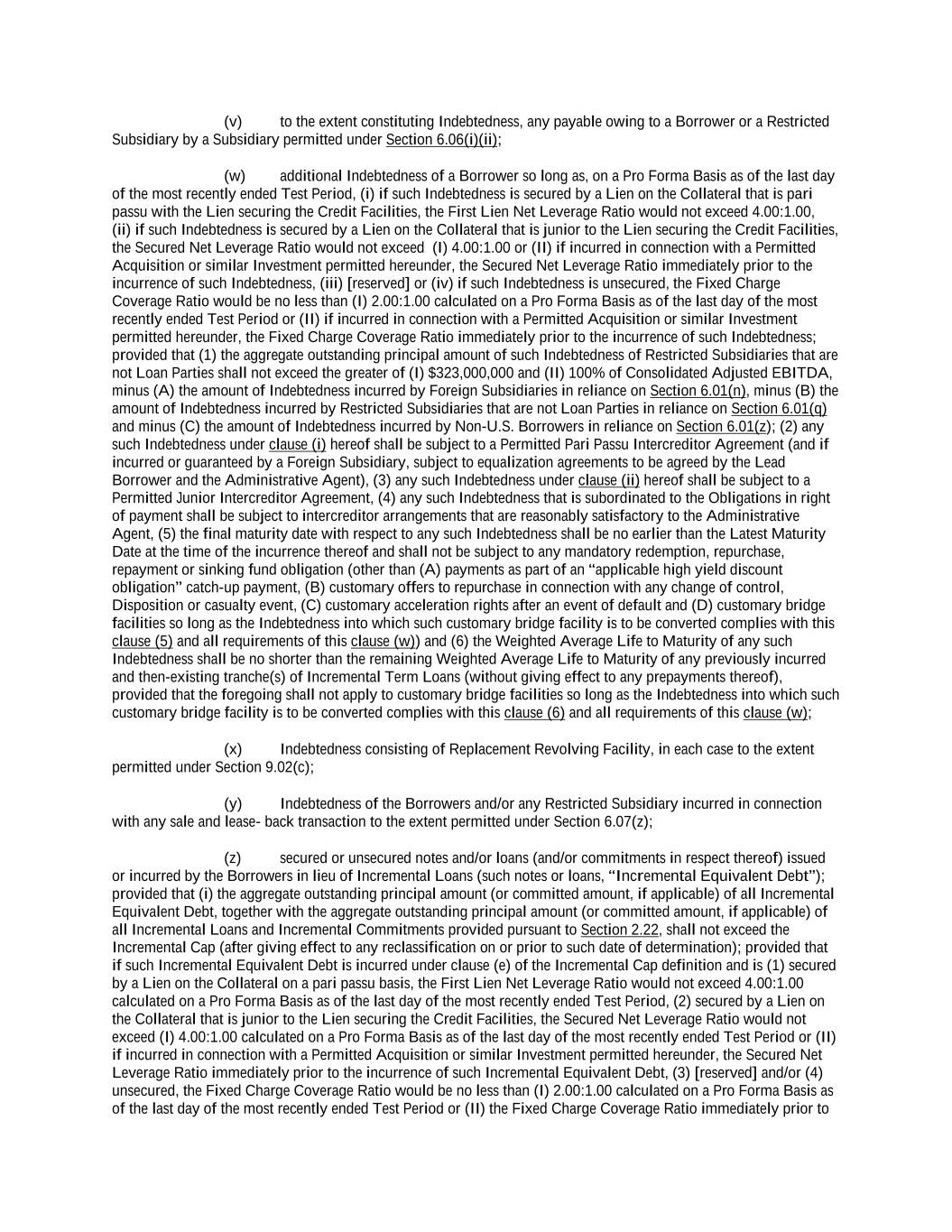 -ii- 61234327 #97236474v29 Section 2.17 Taxes. ............................................................................................................................................ 88 Section 2.18 Payments Generally; Allocation of Proceeds; Sharing of Payments. ............................................ 91 Section 2.19 Mitigation Obligations; Replacement of Lenders. ........................................................................ 93 Section 2.20 Illegality. ....................................................................................................................................... 94 Section 2.21 Defaulting Lenders ........................................................................................................................ 95 Section 2.22 Incremental Credit Extensions. ..................................................................................................... 97 Section 2.23 Extensions of Loans and Revolving Commitments. ................................................................... 102 Section 2.24 Lead Borrower as Borrower Representative ............................................................................... 104 Section 2.25 Currency Equivalents. ................................................................................................................. 104 Section 2.26 Ancillary Facilities. ..................................................................................................................... 105 Section 2.27 Benchmark Replacement. ........................................................................................................... 109 Section 2.28 Canadian Benchmark Replacement Setting. ............................................................................... 111 ARTICLE 3 REPRESENTATIONS AND WARRANTIES Section 3.01 Organization; Powers .................................................................................................................. 112 Section 3.02 Authorization; Enforceability...................................................................................................... 113 Section 3.03 Governmental Approvals; No Conflicts ...................................................................................... 113 Section 3.04 Financial Condition; No Material Adverse Effect. ..................................................................... 113 Section 3.05 Properties; Intellectual Property. ................................................................................................. 113 Section 3.06 Litigation and Environmental Matters. ....................................................................................... 114 Section 3.07 Compliance with Laws ................................................................................................................ 114 Section 3.08 Investment Company Status ........................................................................................................ 114 Section 3.09 Taxes ........................................................................................................................................... 114 Section 3.10 ERISA. ........................................................................................................................................ 114 Section 3.11 Disclosure. .................................................................................................................................. 114 Section 3.12 Solvency ...................................................................................................................................... 115 Section 3.13 Capitalization and Subsidiaries ................................................................................................... 115 Section 3.14 Security Interest in Collateral...................................................................................................... 115 Section 3.15 Labor Disputes ............................................................................................................................ 115 Section 3.16 Federal Reserve Regulations. ...................................................................................................... 115 Section 3.17 Economic and Trade Sanctions and Anti-Corruption Laws. ....................................................... 116 Section 3.18 Senior Indebtedness .................................................................................................................... 116 Section 3.19 Use of Proceeds ........................................................................................................................... 116 Section 3.20 Insurance ..................................................................................................................................... 116 Section 3.21 Central Administration; COMI ................................................................................................... 116