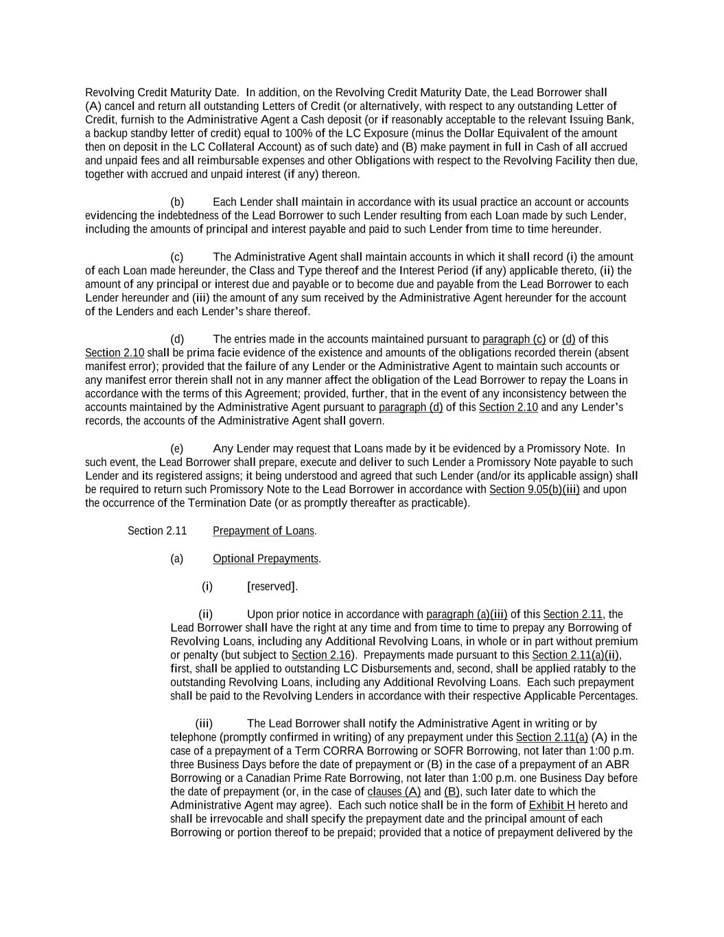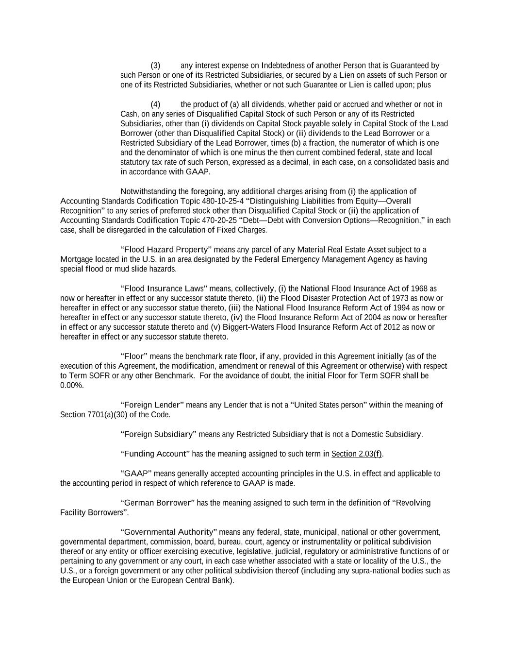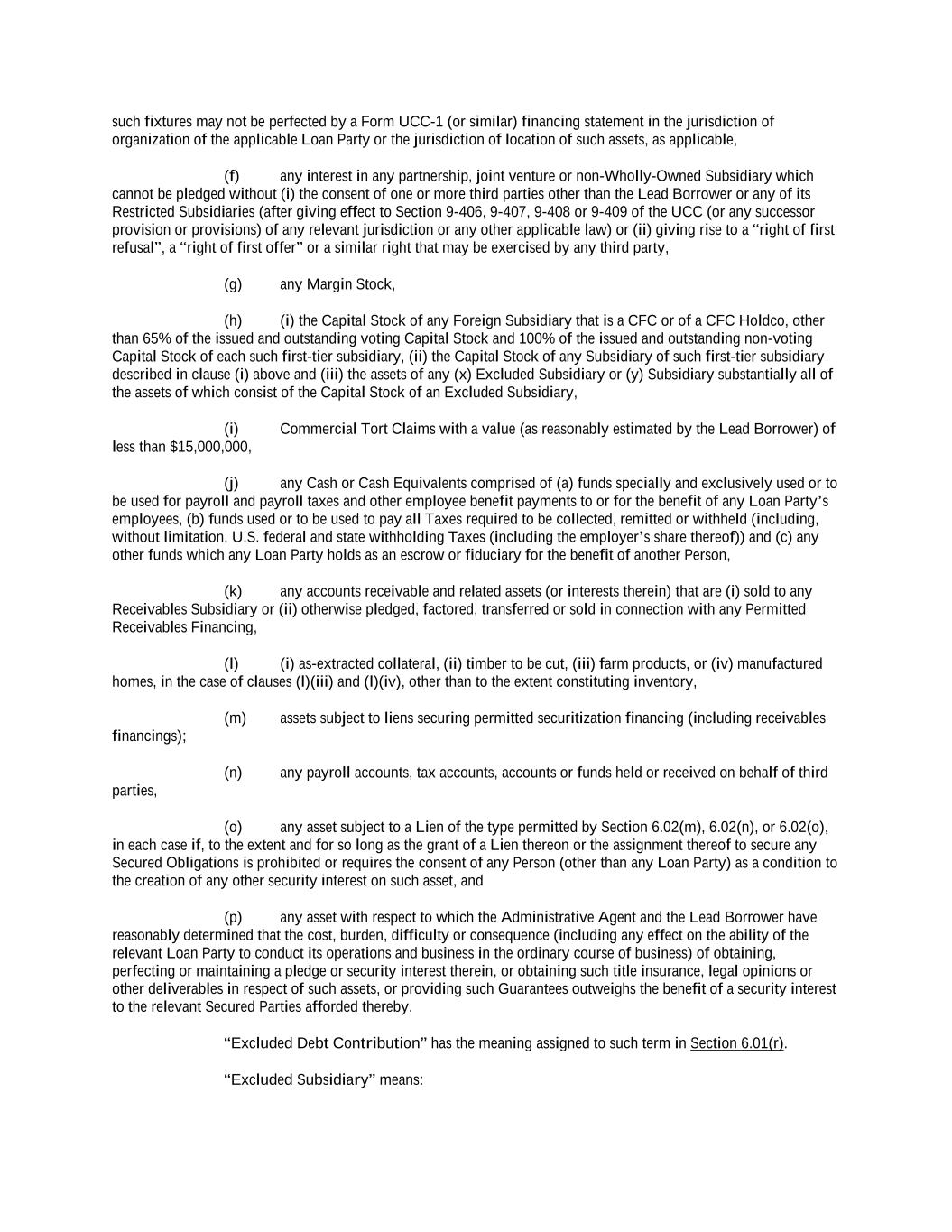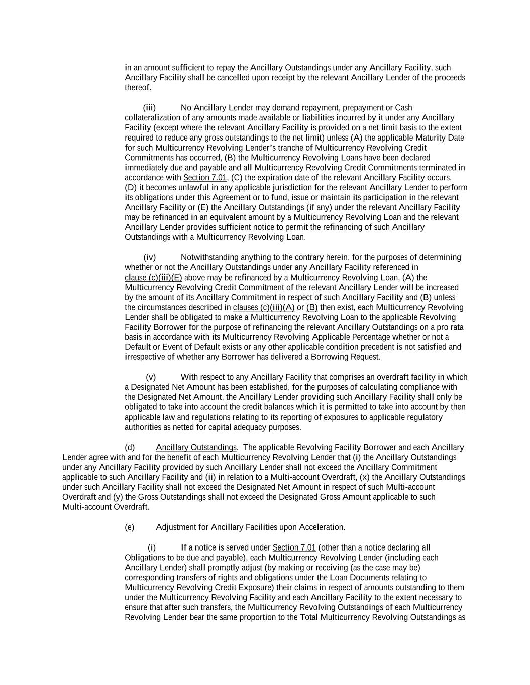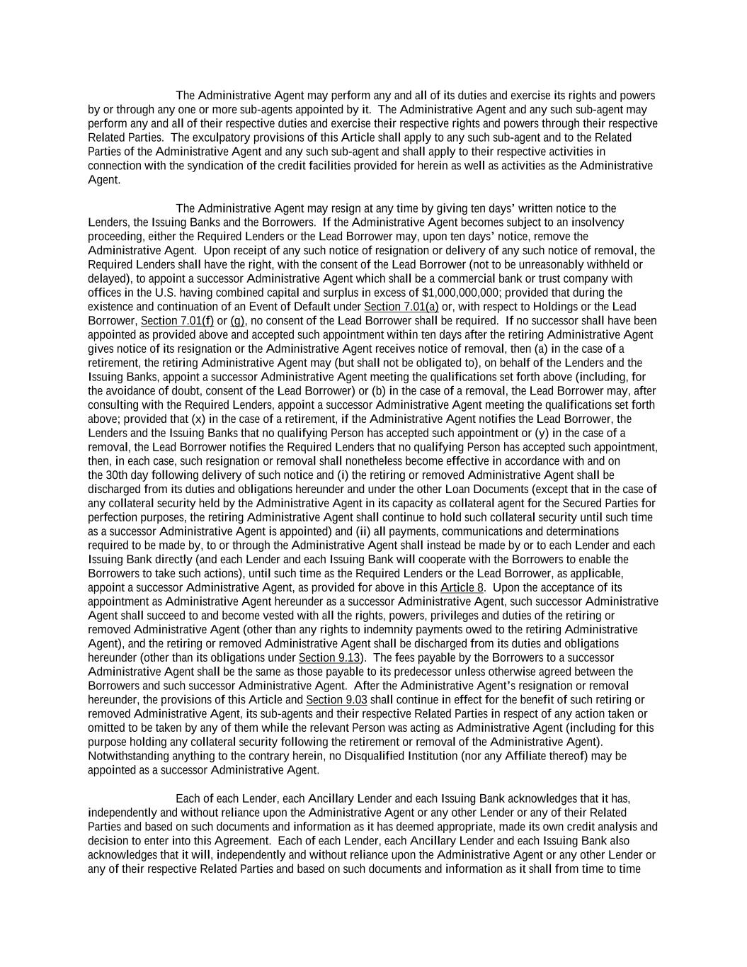 -ii- 61234327 #97236474v29 Section 2.17 Taxes. ............................................................................................................................................ 88 Section 2.18 Payments Generally; Allocation of Proceeds; Sharing of Payments. ............................................ 91 Section 2.19 Mitigation Obligations; Replacement of Lenders. ........................................................................ 93 Section 2.20 Illegality. ....................................................................................................................................... 94 Section 2.21 Defaulting Lenders ........................................................................................................................ 95 Section 2.22 Incremental Credit Extensions. ..................................................................................................... 97 Section 2.23 Extensions of Loans and Revolving Commitments. ................................................................... 102 Section 2.24 Lead Borrower as Borrower Representative ............................................................................... 104 Section 2.25 Currency Equivalents. ................................................................................................................. 104 Section 2.26 Ancillary Facilities. ..................................................................................................................... 105 Section 2.27 Benchmark Replacement. ........................................................................................................... 109 Section 2.28 Canadian Benchmark Replacement Setting. ............................................................................... 111 ARTICLE 3 REPRESENTATIONS AND WARRANTIES Section 3.01 Organization; Powers .................................................................................................................. 112 Section 3.02 Authorization; Enforceability...................................................................................................... 113 Section 3.03 Governmental Approvals; No Conflicts ...................................................................................... 113 Section 3.04 Financial Condition; No Material Adverse Effect. ..................................................................... 113 Section 3.05 Properties; Intellectual Property. ................................................................................................. 113 Section 3.06 Litigation and Environmental Matters. ....................................................................................... 114 Section 3.07 Compliance with Laws ................................................................................................................ 114 Section 3.08 Investment Company Status ........................................................................................................ 114 Section 3.09 Taxes ........................................................................................................................................... 114 Section 3.10 ERISA. ........................................................................................................................................ 114 Section 3.11 Disclosure. .................................................................................................................................. 114 Section 3.12 Solvency ...................................................................................................................................... 115 Section 3.13 Capitalization and Subsidiaries ................................................................................................... 115 Section 3.14 Security Interest in Collateral...................................................................................................... 115 Section 3.15 Labor Disputes ............................................................................................................................ 115 Section 3.16 Federal Reserve Regulations. ...................................................................................................... 115 Section 3.17 Economic and Trade Sanctions and Anti-Corruption Laws. ....................................................... 116 Section 3.18 Senior Indebtedness .................................................................................................................... 116 Section 3.19 Use of Proceeds ........................................................................................................................... 116 Section 3.20 Insurance ..................................................................................................................................... 116 Section 3.21 Central Administration; COMI ................................................................................................... 116