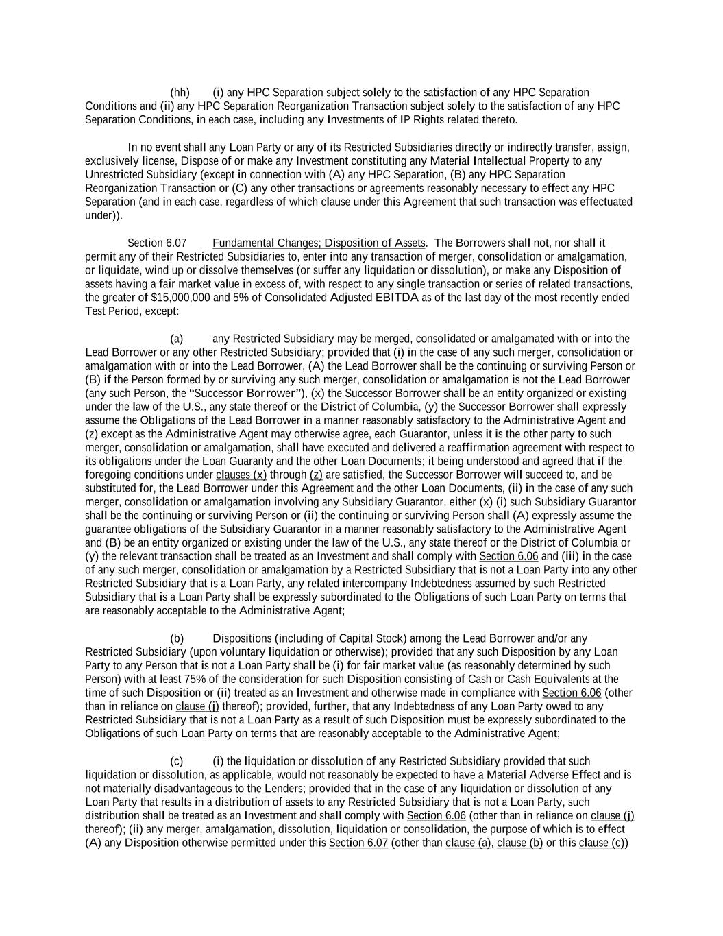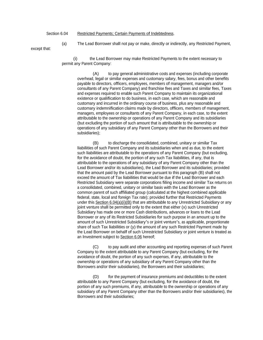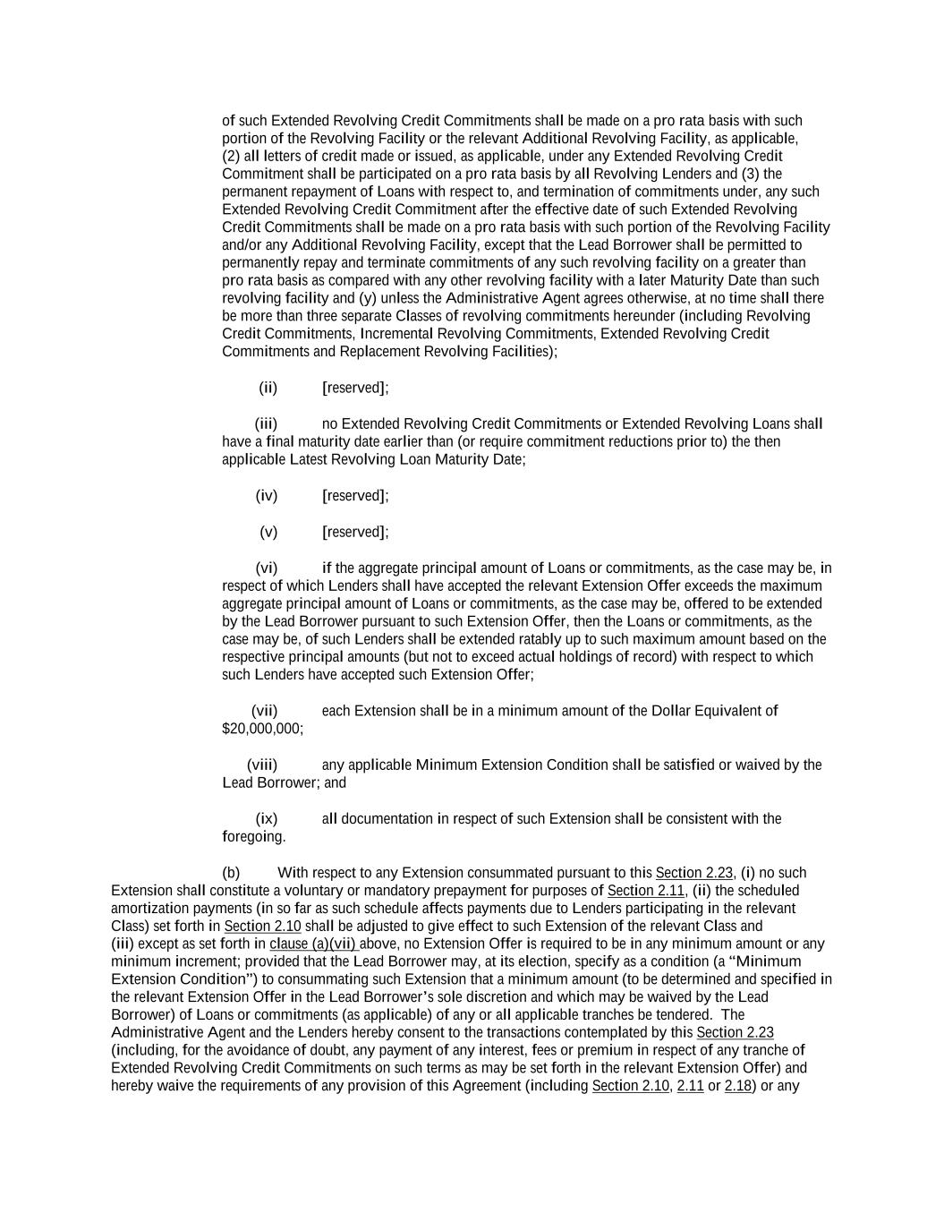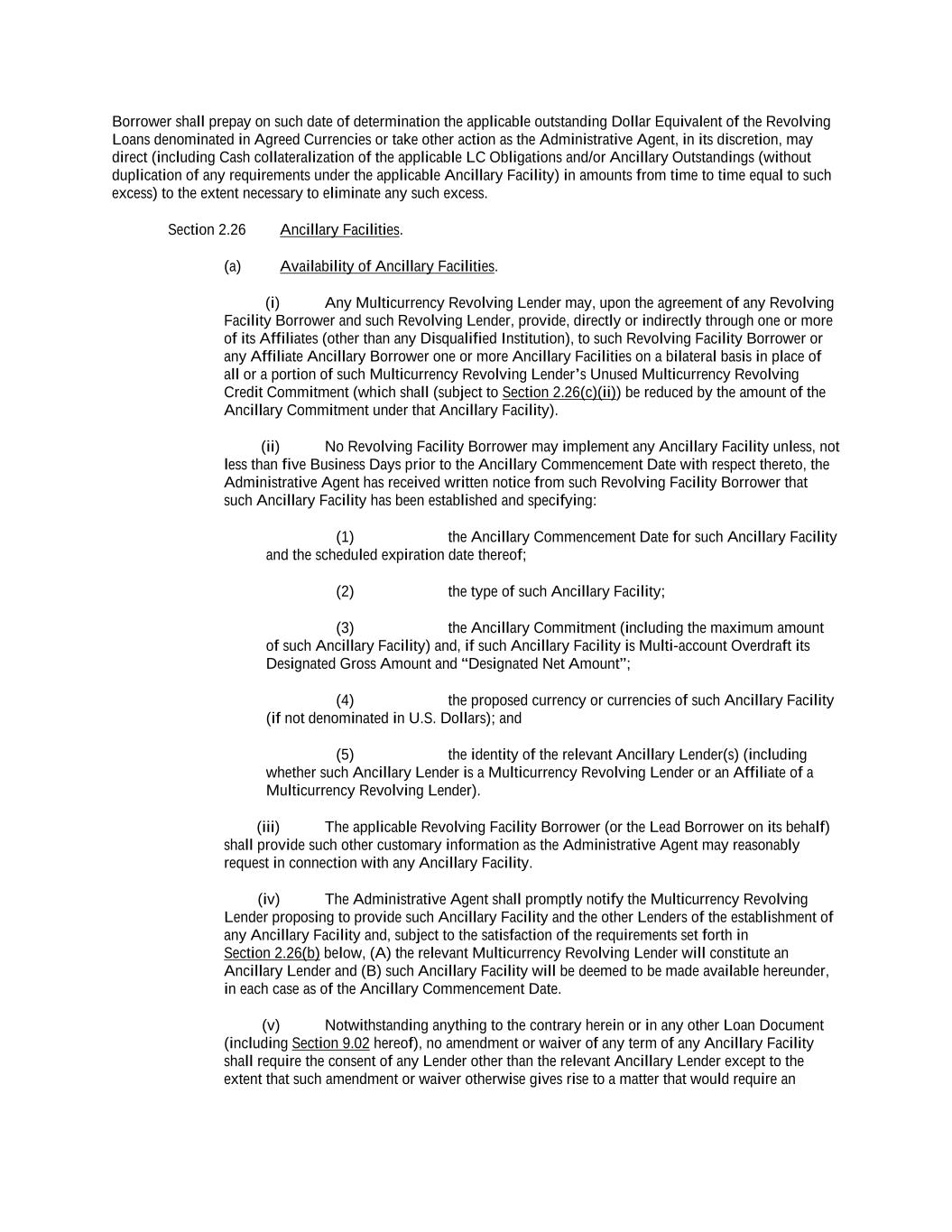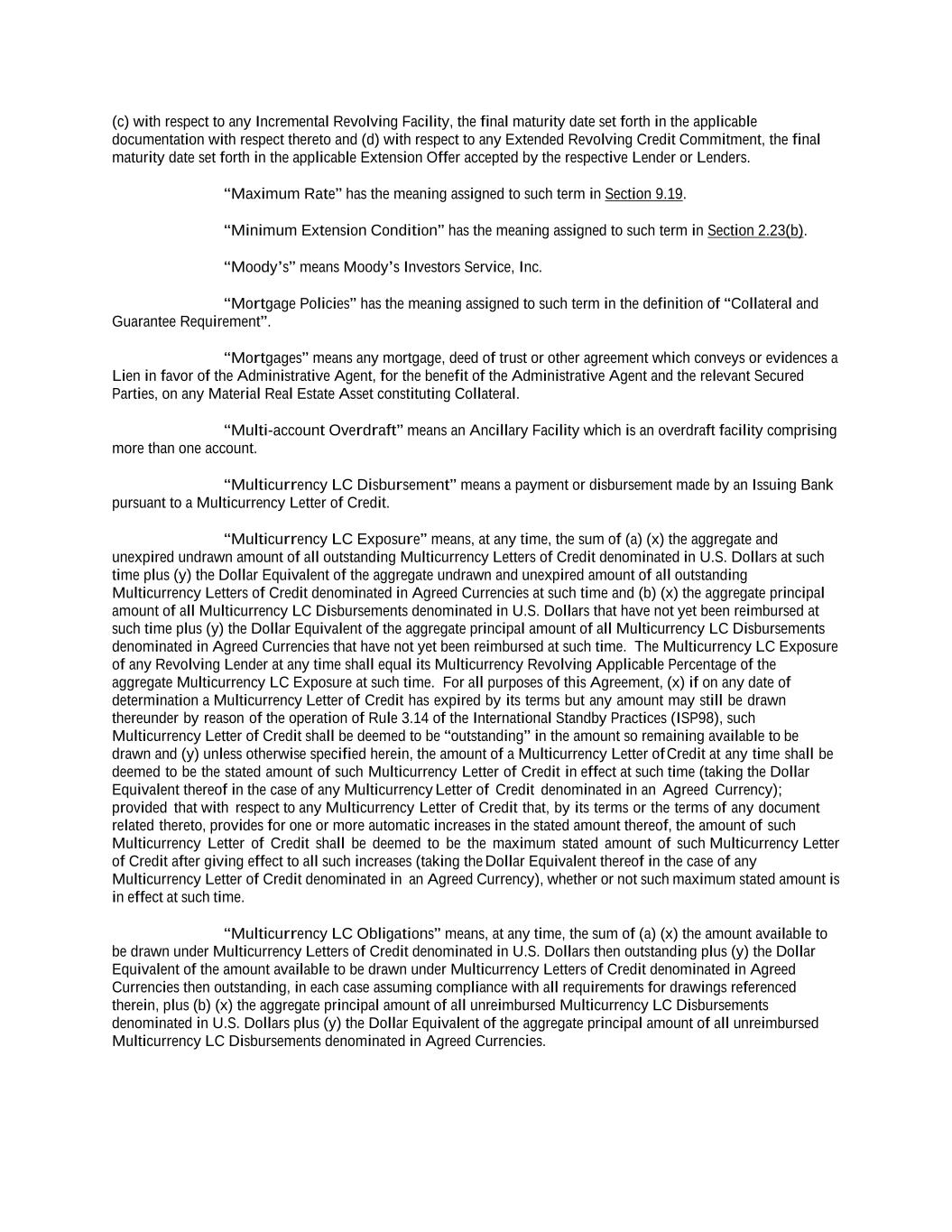 -ii- 61234327 #97236474v29 Section 2.17 Taxes. ............................................................................................................................................ 88 Section 2.18 Payments Generally; Allocation of Proceeds; Sharing of Payments. ............................................ 91 Section 2.19 Mitigation Obligations; Replacement of Lenders. ........................................................................ 93 Section 2.20 Illegality. ....................................................................................................................................... 94 Section 2.21 Defaulting Lenders ........................................................................................................................ 95 Section 2.22 Incremental Credit Extensions. ..................................................................................................... 97 Section 2.23 Extensions of Loans and Revolving Commitments. ................................................................... 102 Section 2.24 Lead Borrower as Borrower Representative ............................................................................... 104 Section 2.25 Currency Equivalents. ................................................................................................................. 104 Section 2.26 Ancillary Facilities. ..................................................................................................................... 105 Section 2.27 Benchmark Replacement. ........................................................................................................... 109 Section 2.28 Canadian Benchmark Replacement Setting. ............................................................................... 111 ARTICLE 3 REPRESENTATIONS AND WARRANTIES Section 3.01 Organization; Powers .................................................................................................................. 112 Section 3.02 Authorization; Enforceability...................................................................................................... 113 Section 3.03 Governmental Approvals; No Conflicts ...................................................................................... 113 Section 3.04 Financial Condition; No Material Adverse Effect. ..................................................................... 113 Section 3.05 Properties; Intellectual Property. ................................................................................................. 113 Section 3.06 Litigation and Environmental Matters. ....................................................................................... 114 Section 3.07 Compliance with Laws ................................................................................................................ 114 Section 3.08 Investment Company Status ........................................................................................................ 114 Section 3.09 Taxes ........................................................................................................................................... 114 Section 3.10 ERISA. ........................................................................................................................................ 114 Section 3.11 Disclosure. .................................................................................................................................. 114 Section 3.12 Solvency ...................................................................................................................................... 115 Section 3.13 Capitalization and Subsidiaries ................................................................................................... 115 Section 3.14 Security Interest in Collateral...................................................................................................... 115 Section 3.15 Labor Disputes ............................................................................................................................ 115 Section 3.16 Federal Reserve Regulations. ...................................................................................................... 115 Section 3.17 Economic and Trade Sanctions and Anti-Corruption Laws. ....................................................... 116 Section 3.18 Senior Indebtedness .................................................................................................................... 116 Section 3.19 Use of Proceeds ........................................................................................................................... 116 Section 3.20 Insurance ..................................................................................................................................... 116 Section 3.21 Central Administration; COMI ................................................................................................... 116