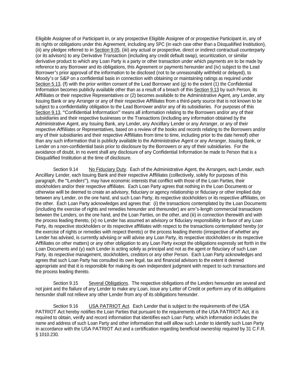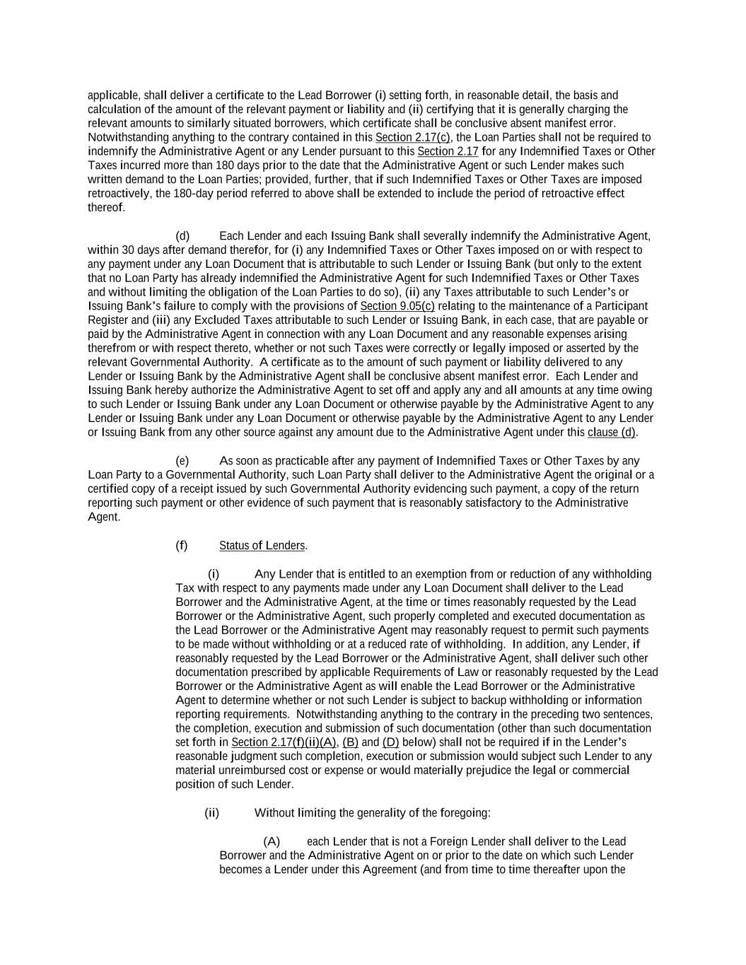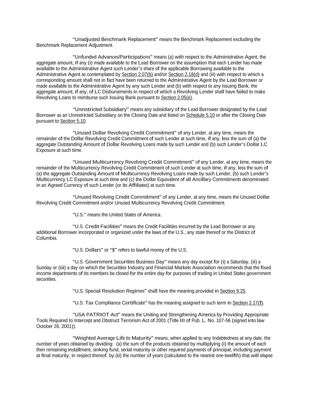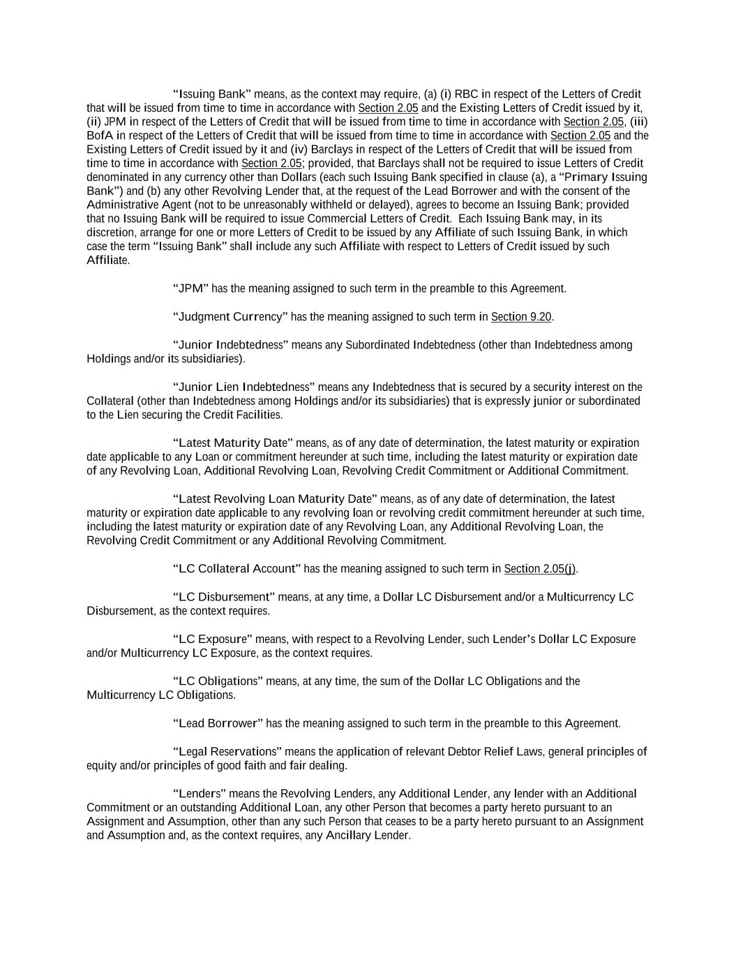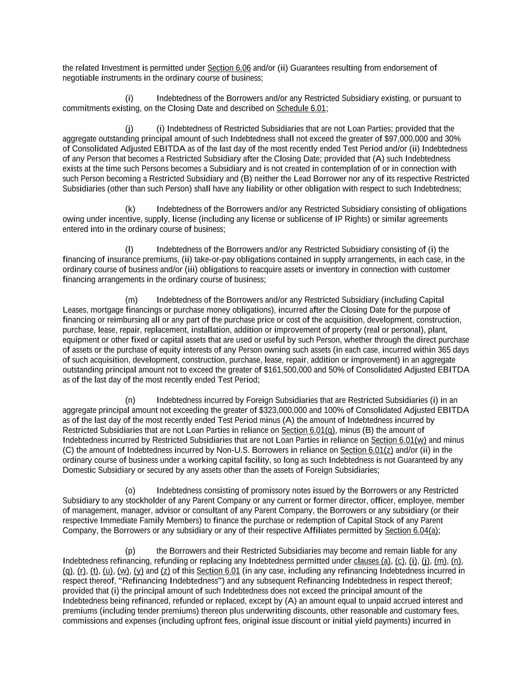 -ii- 61234327 #97236474v29 Section 2.17 Taxes. ............................................................................................................................................ 88 Section 2.18 Payments Generally; Allocation of Proceeds; Sharing of Payments. ............................................ 91 Section 2.19 Mitigation Obligations; Replacement of Lenders. ........................................................................ 93 Section 2.20 Illegality. ....................................................................................................................................... 94 Section 2.21 Defaulting Lenders ........................................................................................................................ 95 Section 2.22 Incremental Credit Extensions. ..................................................................................................... 97 Section 2.23 Extensions of Loans and Revolving Commitments. ................................................................... 102 Section 2.24 Lead Borrower as Borrower Representative ............................................................................... 104 Section 2.25 Currency Equivalents. ................................................................................................................. 104 Section 2.26 Ancillary Facilities. ..................................................................................................................... 105 Section 2.27 Benchmark Replacement. ........................................................................................................... 109 Section 2.28 Canadian Benchmark Replacement Setting. ............................................................................... 111 ARTICLE 3 REPRESENTATIONS AND WARRANTIES Section 3.01 Organization; Powers .................................................................................................................. 112 Section 3.02 Authorization; Enforceability...................................................................................................... 113 Section 3.03 Governmental Approvals; No Conflicts ...................................................................................... 113 Section 3.04 Financial Condition; No Material Adverse Effect. ..................................................................... 113 Section 3.05 Properties; Intellectual Property. ................................................................................................. 113 Section 3.06 Litigation and Environmental Matters. ....................................................................................... 114 Section 3.07 Compliance with Laws ................................................................................................................ 114 Section 3.08 Investment Company Status ........................................................................................................ 114 Section 3.09 Taxes ........................................................................................................................................... 114 Section 3.10 ERISA. ........................................................................................................................................ 114 Section 3.11 Disclosure. .................................................................................................................................. 114 Section 3.12 Solvency ...................................................................................................................................... 115 Section 3.13 Capitalization and Subsidiaries ................................................................................................... 115 Section 3.14 Security Interest in Collateral...................................................................................................... 115 Section 3.15 Labor Disputes ............................................................................................................................ 115 Section 3.16 Federal Reserve Regulations. ...................................................................................................... 115 Section 3.17 Economic and Trade Sanctions and Anti-Corruption Laws. ....................................................... 116 Section 3.18 Senior Indebtedness .................................................................................................................... 116 Section 3.19 Use of Proceeds ........................................................................................................................... 116 Section 3.20 Insurance ..................................................................................................................................... 116 Section 3.21 Central Administration; COMI ................................................................................................... 116