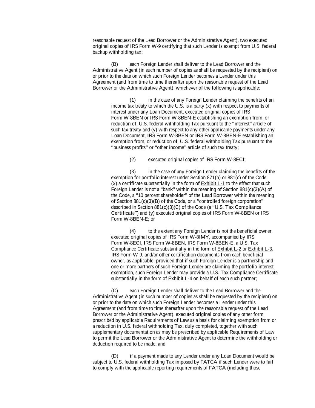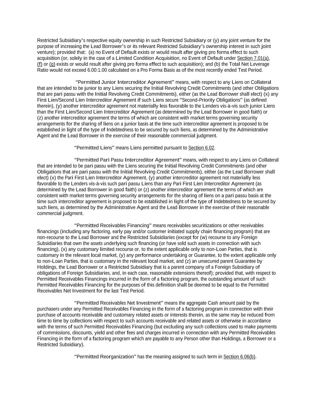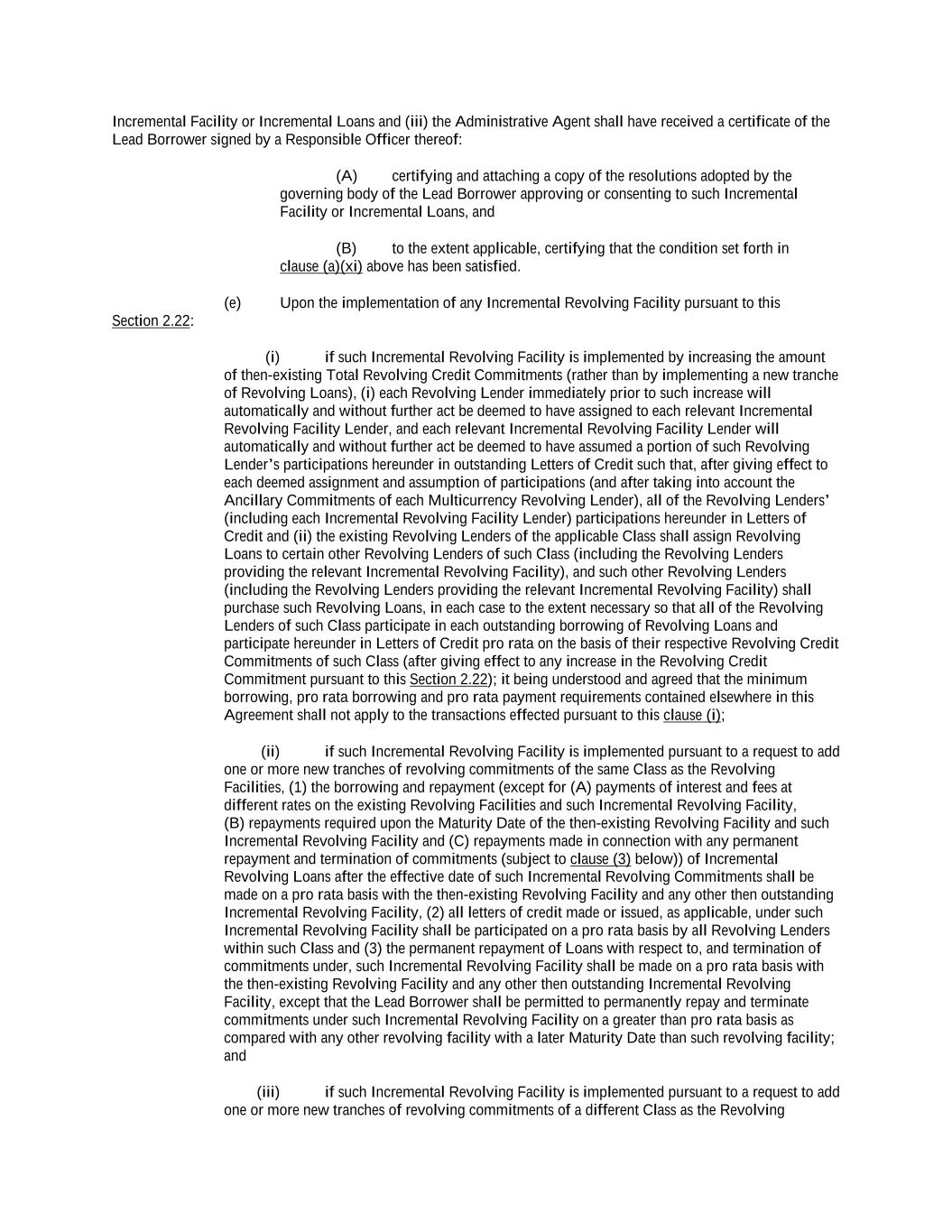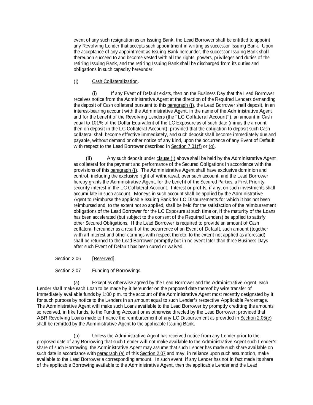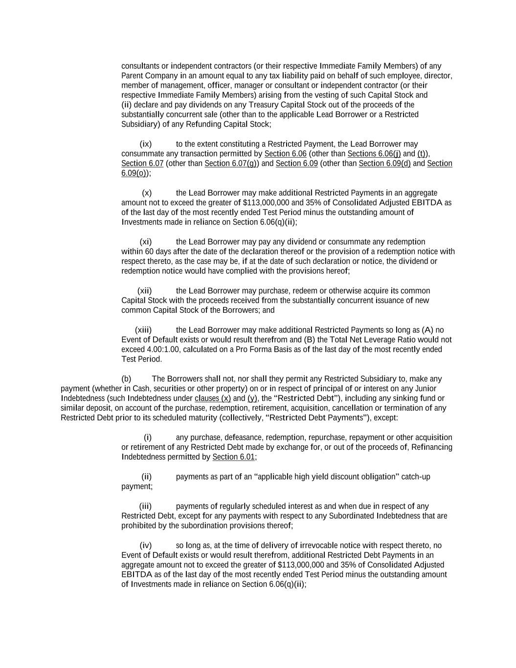 -ii- 61234327 #97236474v29 Section 2.17 Taxes. ............................................................................................................................................ 88 Section 2.18 Payments Generally; Allocation of Proceeds; Sharing of Payments. ............................................ 91 Section 2.19 Mitigation Obligations; Replacement of Lenders. ........................................................................ 93 Section 2.20 Illegality. ....................................................................................................................................... 94 Section 2.21 Defaulting Lenders ........................................................................................................................ 95 Section 2.22 Incremental Credit Extensions. ..................................................................................................... 97 Section 2.23 Extensions of Loans and Revolving Commitments. ................................................................... 102 Section 2.24 Lead Borrower as Borrower Representative ............................................................................... 104 Section 2.25 Currency Equivalents. ................................................................................................................. 104 Section 2.26 Ancillary Facilities. ..................................................................................................................... 105 Section 2.27 Benchmark Replacement. ........................................................................................................... 109 Section 2.28 Canadian Benchmark Replacement Setting. ............................................................................... 111 ARTICLE 3 REPRESENTATIONS AND WARRANTIES Section 3.01 Organization; Powers .................................................................................................................. 112 Section 3.02 Authorization; Enforceability...................................................................................................... 113 Section 3.03 Governmental Approvals; No Conflicts ...................................................................................... 113 Section 3.04 Financial Condition; No Material Adverse Effect. ..................................................................... 113 Section 3.05 Properties; Intellectual Property. ................................................................................................. 113 Section 3.06 Litigation and Environmental Matters. ....................................................................................... 114 Section 3.07 Compliance with Laws ................................................................................................................ 114 Section 3.08 Investment Company Status ........................................................................................................ 114 Section 3.09 Taxes ........................................................................................................................................... 114 Section 3.10 ERISA. ........................................................................................................................................ 114 Section 3.11 Disclosure. .................................................................................................................................. 114 Section 3.12 Solvency ...................................................................................................................................... 115 Section 3.13 Capitalization and Subsidiaries ................................................................................................... 115 Section 3.14 Security Interest in Collateral...................................................................................................... 115 Section 3.15 Labor Disputes ............................................................................................................................ 115 Section 3.16 Federal Reserve Regulations. ...................................................................................................... 115 Section 3.17 Economic and Trade Sanctions and Anti-Corruption Laws. ....................................................... 116 Section 3.18 Senior Indebtedness .................................................................................................................... 116 Section 3.19 Use of Proceeds ........................................................................................................................... 116 Section 3.20 Insurance ..................................................................................................................................... 116 Section 3.21 Central Administration; COMI ................................................................................................... 116