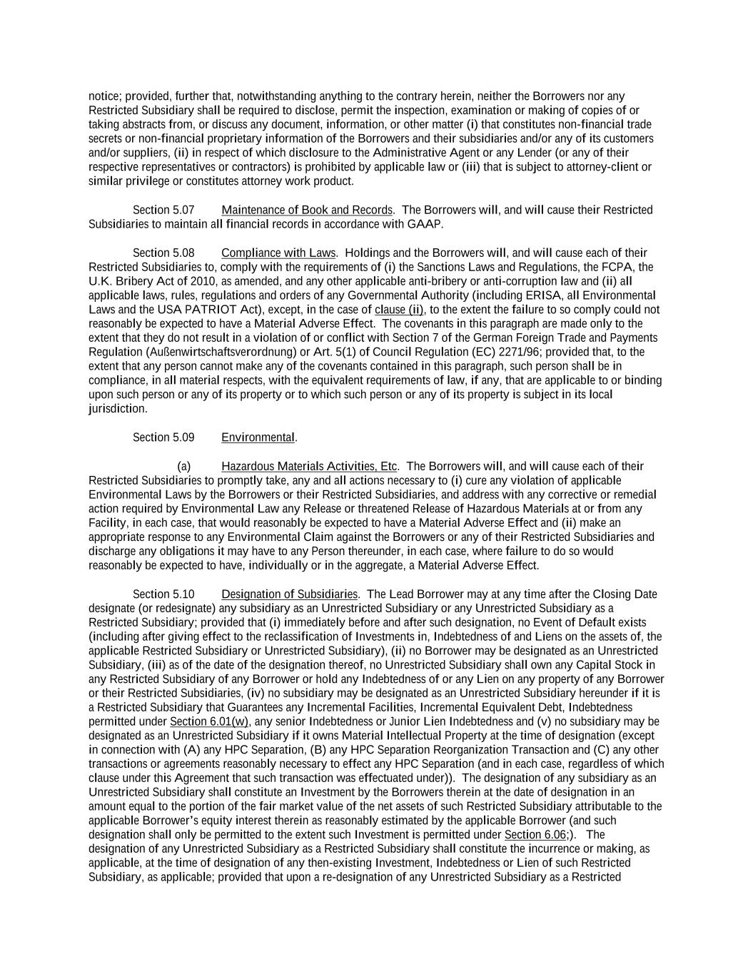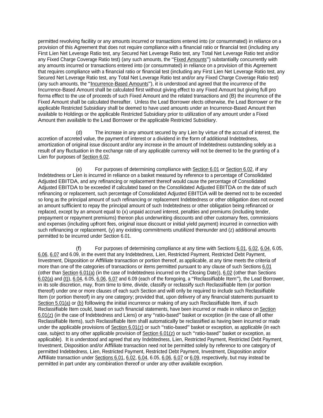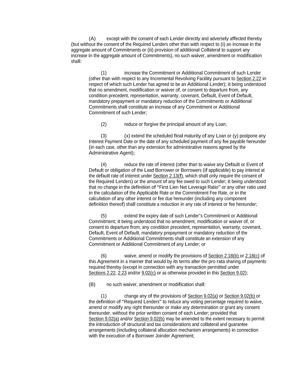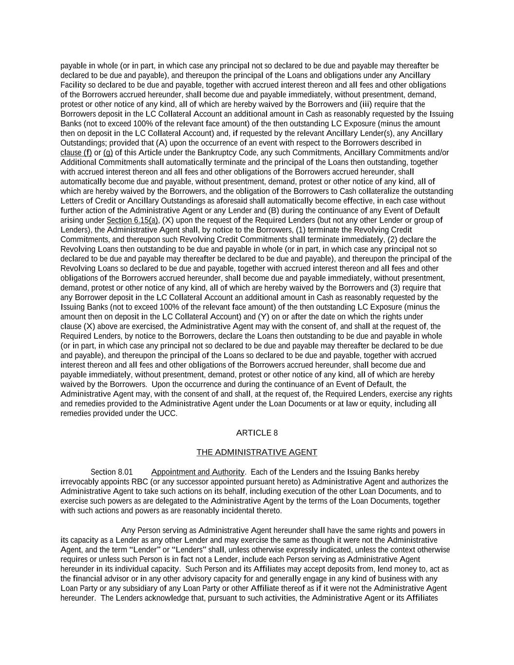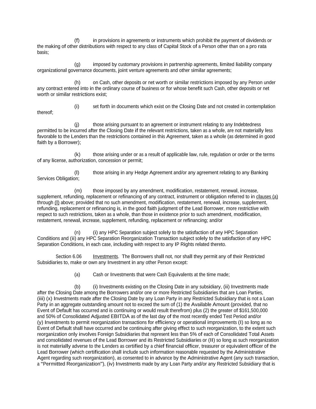 -ii- 61234327 #97236474v29 Section 2.17 Taxes. ............................................................................................................................................ 88 Section 2.18 Payments Generally; Allocation of Proceeds; Sharing of Payments. ............................................ 91 Section 2.19 Mitigation Obligations; Replacement of Lenders. ........................................................................ 93 Section 2.20 Illegality. ....................................................................................................................................... 94 Section 2.21 Defaulting Lenders ........................................................................................................................ 95 Section 2.22 Incremental Credit Extensions. ..................................................................................................... 97 Section 2.23 Extensions of Loans and Revolving Commitments. ................................................................... 102 Section 2.24 Lead Borrower as Borrower Representative ............................................................................... 104 Section 2.25 Currency Equivalents. ................................................................................................................. 104 Section 2.26 Ancillary Facilities. ..................................................................................................................... 105 Section 2.27 Benchmark Replacement. ........................................................................................................... 109 Section 2.28 Canadian Benchmark Replacement Setting. ............................................................................... 111 ARTICLE 3 REPRESENTATIONS AND WARRANTIES Section 3.01 Organization; Powers .................................................................................................................. 112 Section 3.02 Authorization; Enforceability...................................................................................................... 113 Section 3.03 Governmental Approvals; No Conflicts ...................................................................................... 113 Section 3.04 Financial Condition; No Material Adverse Effect. ..................................................................... 113 Section 3.05 Properties; Intellectual Property. ................................................................................................. 113 Section 3.06 Litigation and Environmental Matters. ....................................................................................... 114 Section 3.07 Compliance with Laws ................................................................................................................ 114 Section 3.08 Investment Company Status ........................................................................................................ 114 Section 3.09 Taxes ........................................................................................................................................... 114 Section 3.10 ERISA. ........................................................................................................................................ 114 Section 3.11 Disclosure. .................................................................................................................................. 114 Section 3.12 Solvency ...................................................................................................................................... 115 Section 3.13 Capitalization and Subsidiaries ................................................................................................... 115 Section 3.14 Security Interest in Collateral...................................................................................................... 115 Section 3.15 Labor Disputes ............................................................................................................................ 115 Section 3.16 Federal Reserve Regulations. ...................................................................................................... 115 Section 3.17 Economic and Trade Sanctions and Anti-Corruption Laws. ....................................................... 116 Section 3.18 Senior Indebtedness .................................................................................................................... 116 Section 3.19 Use of Proceeds ........................................................................................................................... 116 Section 3.20 Insurance ..................................................................................................................................... 116 Section 3.21 Central Administration; COMI ................................................................................................... 116