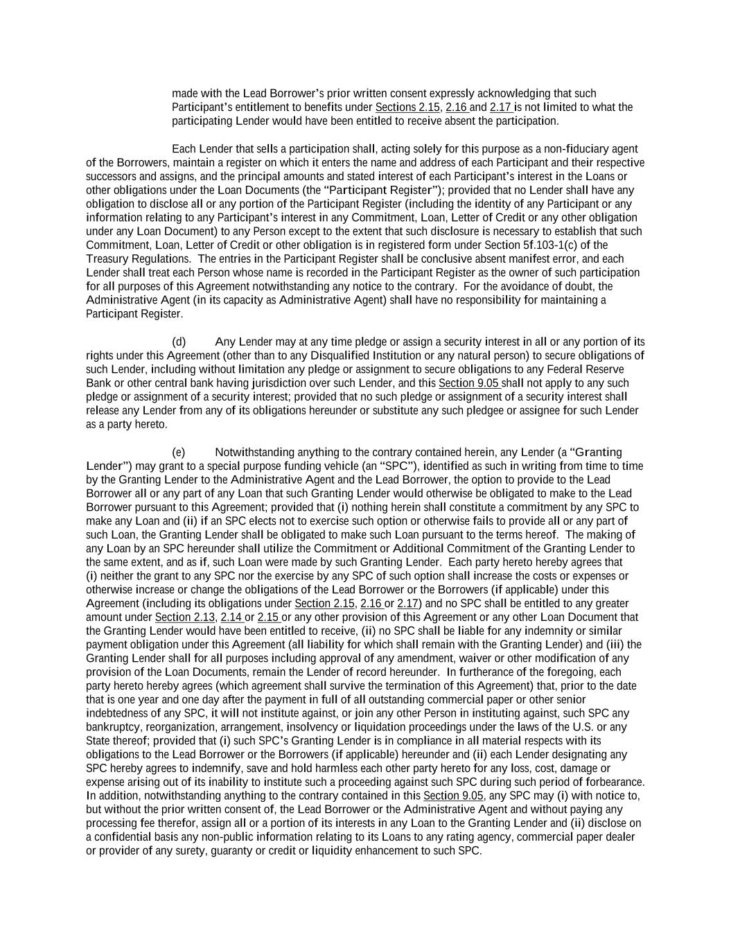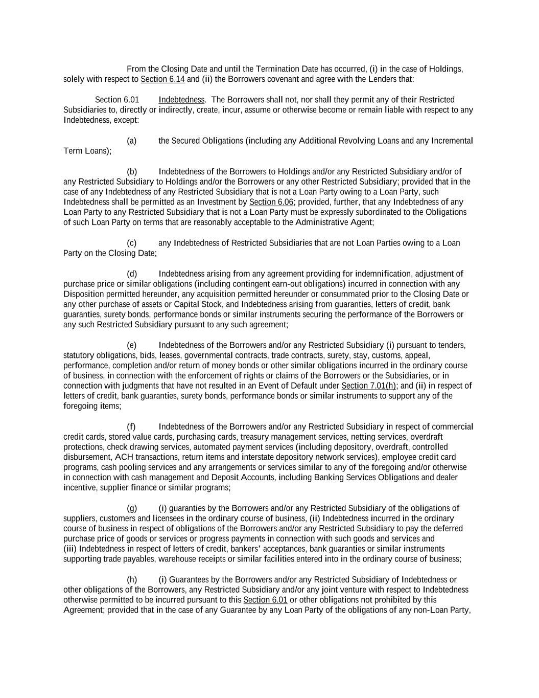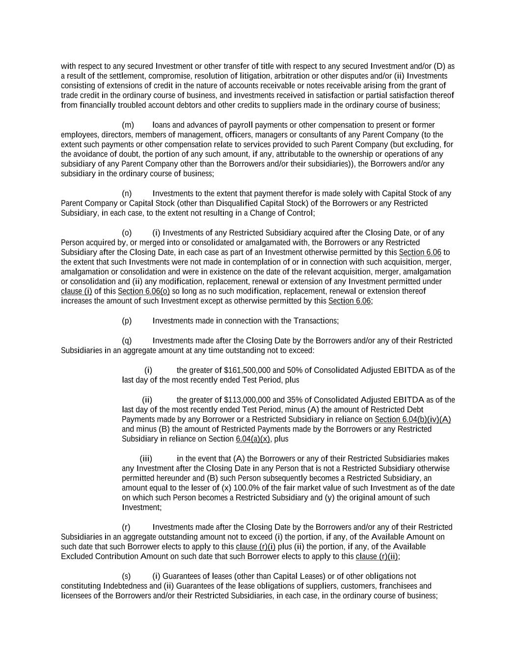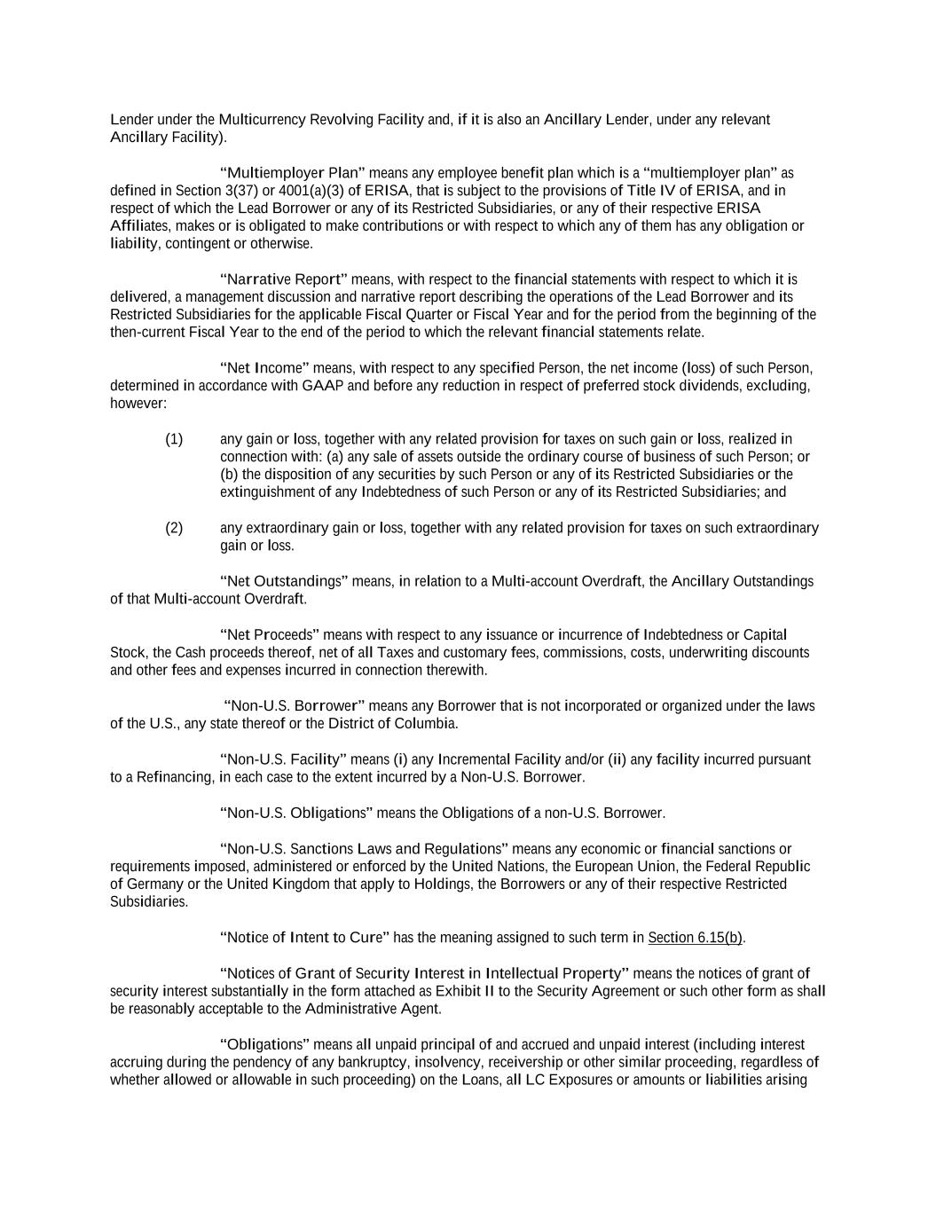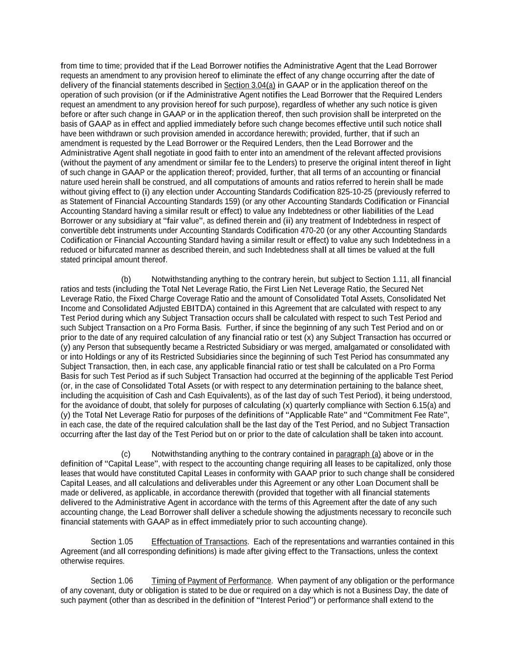 -ii- 61234327 #97236474v29 Section 2.17 Taxes. ............................................................................................................................................ 88 Section 2.18 Payments Generally; Allocation of Proceeds; Sharing of Payments. ............................................ 91 Section 2.19 Mitigation Obligations; Replacement of Lenders. ........................................................................ 93 Section 2.20 Illegality. ....................................................................................................................................... 94 Section 2.21 Defaulting Lenders ........................................................................................................................ 95 Section 2.22 Incremental Credit Extensions. ..................................................................................................... 97 Section 2.23 Extensions of Loans and Revolving Commitments. ................................................................... 102 Section 2.24 Lead Borrower as Borrower Representative ............................................................................... 104 Section 2.25 Currency Equivalents. ................................................................................................................. 104 Section 2.26 Ancillary Facilities. ..................................................................................................................... 105 Section 2.27 Benchmark Replacement. ........................................................................................................... 109 Section 2.28 Canadian Benchmark Replacement Setting. ............................................................................... 111 ARTICLE 3 REPRESENTATIONS AND WARRANTIES Section 3.01 Organization; Powers .................................................................................................................. 112 Section 3.02 Authorization; Enforceability...................................................................................................... 113 Section 3.03 Governmental Approvals; No Conflicts ...................................................................................... 113 Section 3.04 Financial Condition; No Material Adverse Effect. ..................................................................... 113 Section 3.05 Properties; Intellectual Property. ................................................................................................. 113 Section 3.06 Litigation and Environmental Matters. ....................................................................................... 114 Section 3.07 Compliance with Laws ................................................................................................................ 114 Section 3.08 Investment Company Status ........................................................................................................ 114 Section 3.09 Taxes ........................................................................................................................................... 114 Section 3.10 ERISA. ........................................................................................................................................ 114 Section 3.11 Disclosure. .................................................................................................................................. 114 Section 3.12 Solvency ...................................................................................................................................... 115 Section 3.13 Capitalization and Subsidiaries ................................................................................................... 115 Section 3.14 Security Interest in Collateral...................................................................................................... 115 Section 3.15 Labor Disputes ............................................................................................................................ 115 Section 3.16 Federal Reserve Regulations. ...................................................................................................... 115 Section 3.17 Economic and Trade Sanctions and Anti-Corruption Laws. ....................................................... 116 Section 3.18 Senior Indebtedness .................................................................................................................... 116 Section 3.19 Use of Proceeds ........................................................................................................................... 116 Section 3.20 Insurance ..................................................................................................................................... 116 Section 3.21 Central Administration; COMI ................................................................................................... 116