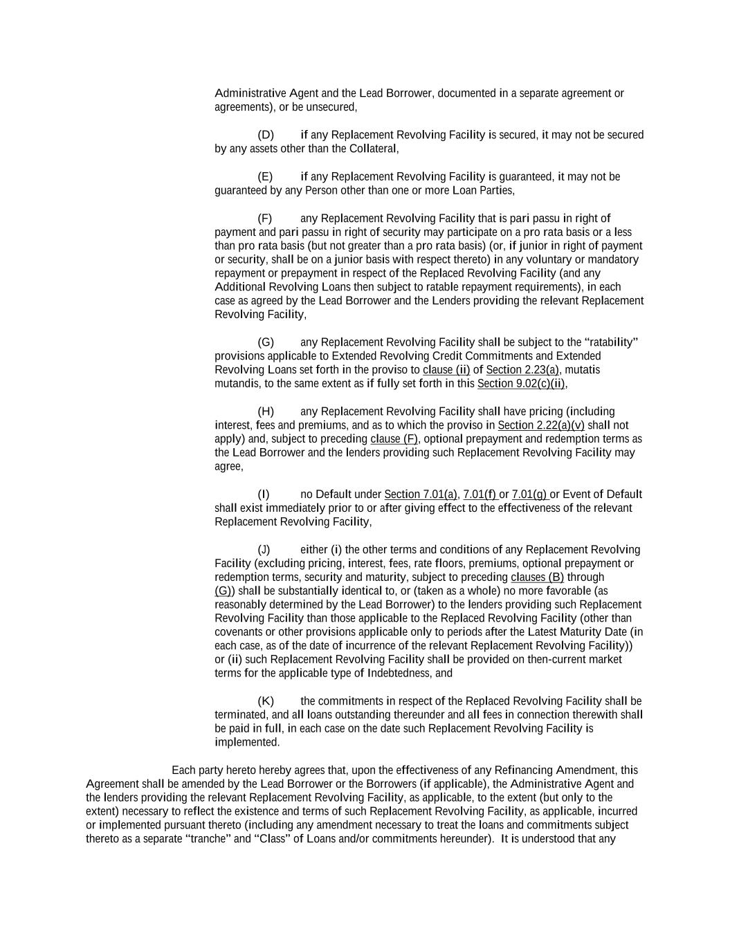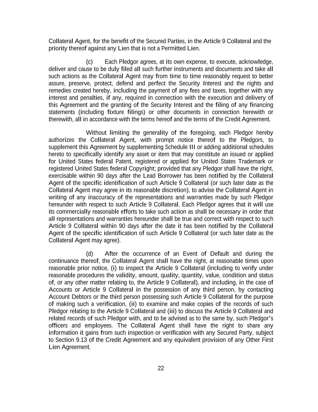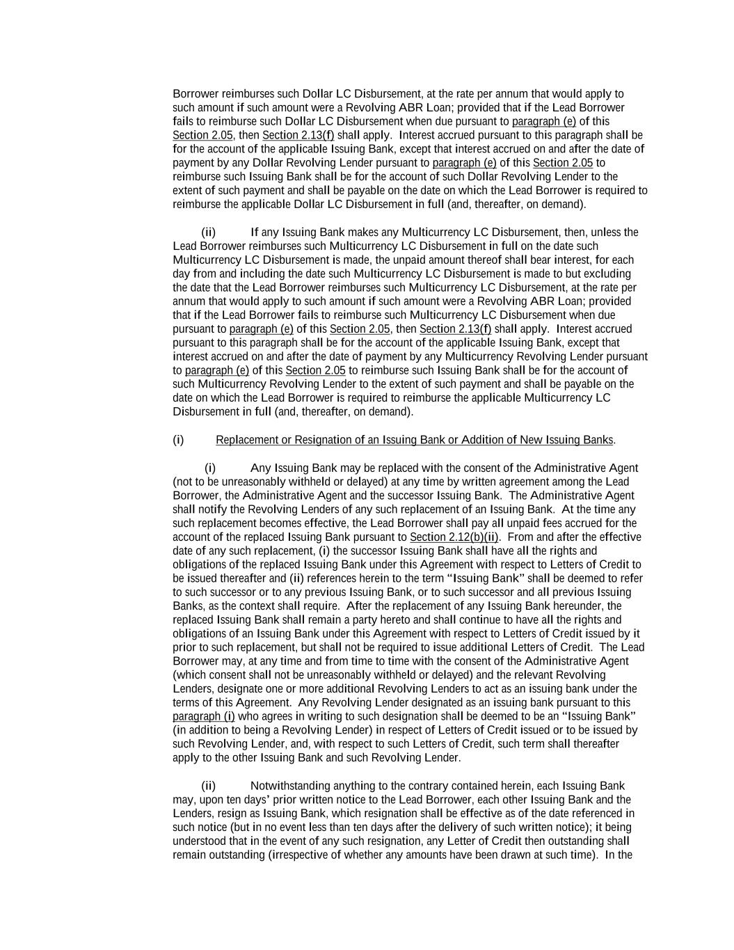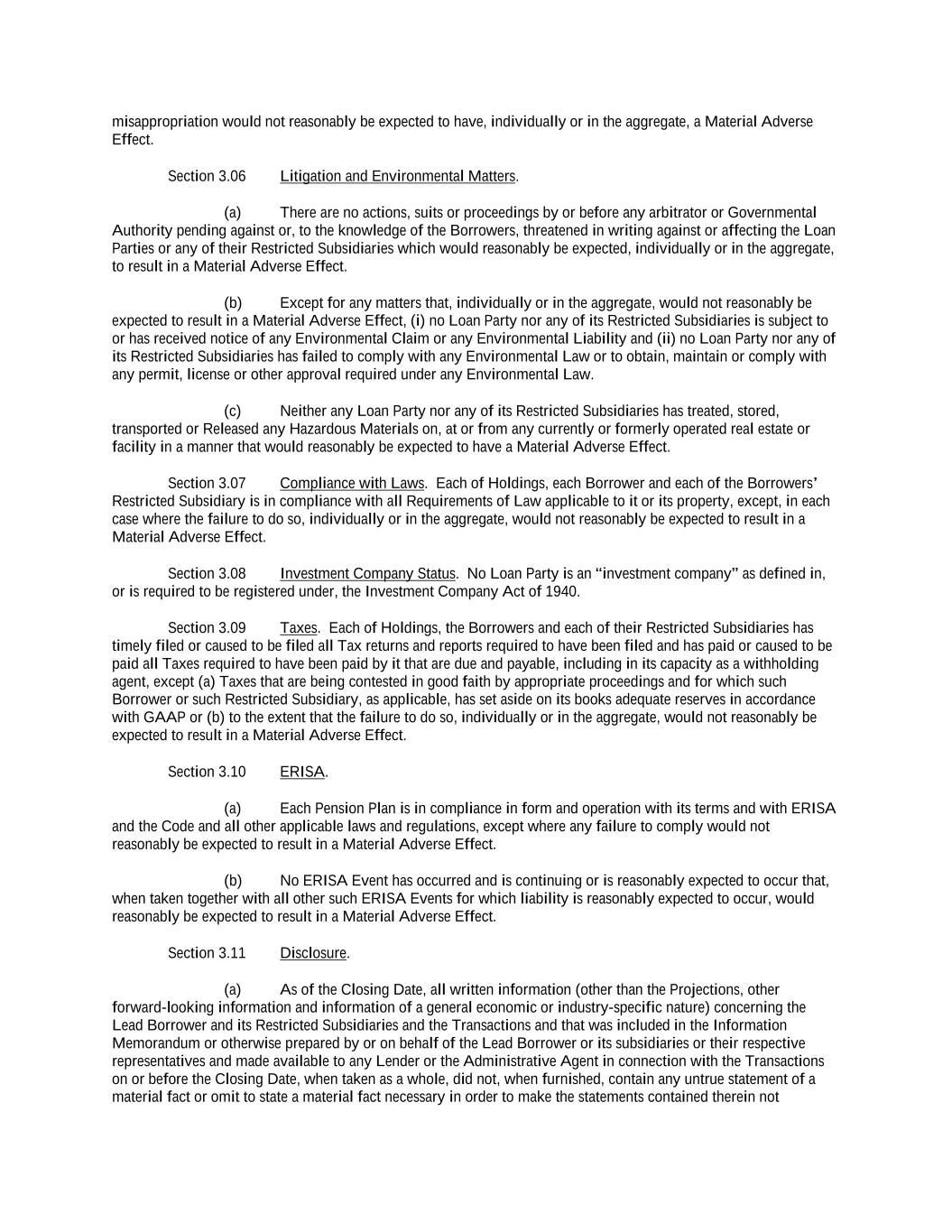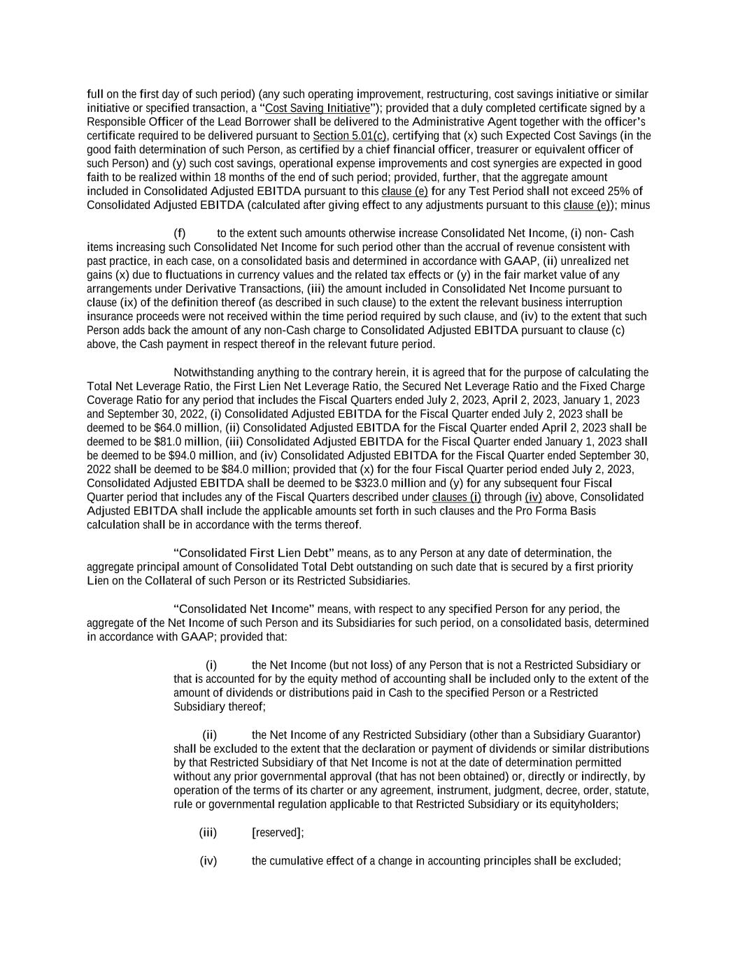 -ii- 61234327 #97236474v29 Section 2.17 Taxes. ............................................................................................................................................ 88 Section 2.18 Payments Generally; Allocation of Proceeds; Sharing of Payments. ............................................ 91 Section 2.19 Mitigation Obligations; Replacement of Lenders. ........................................................................ 93 Section 2.20 Illegality. ....................................................................................................................................... 94 Section 2.21 Defaulting Lenders ........................................................................................................................ 95 Section 2.22 Incremental Credit Extensions. ..................................................................................................... 97 Section 2.23 Extensions of Loans and Revolving Commitments. ................................................................... 102 Section 2.24 Lead Borrower as Borrower Representative ............................................................................... 104 Section 2.25 Currency Equivalents. ................................................................................................................. 104 Section 2.26 Ancillary Facilities. ..................................................................................................................... 105 Section 2.27 Benchmark Replacement. ........................................................................................................... 109 Section 2.28 Canadian Benchmark Replacement Setting. ............................................................................... 111 ARTICLE 3 REPRESENTATIONS AND WARRANTIES Section 3.01 Organization; Powers .................................................................................................................. 112 Section 3.02 Authorization; Enforceability...................................................................................................... 113 Section 3.03 Governmental Approvals; No Conflicts ...................................................................................... 113 Section 3.04 Financial Condition; No Material Adverse Effect. ..................................................................... 113 Section 3.05 Properties; Intellectual Property. ................................................................................................. 113 Section 3.06 Litigation and Environmental Matters. ....................................................................................... 114 Section 3.07 Compliance with Laws ................................................................................................................ 114 Section 3.08 Investment Company Status ........................................................................................................ 114 Section 3.09 Taxes ........................................................................................................................................... 114 Section 3.10 ERISA. ........................................................................................................................................ 114 Section 3.11 Disclosure. .................................................................................................................................. 114 Section 3.12 Solvency ...................................................................................................................................... 115 Section 3.13 Capitalization and Subsidiaries ................................................................................................... 115 Section 3.14 Security Interest in Collateral...................................................................................................... 115 Section 3.15 Labor Disputes ............................................................................................................................ 115 Section 3.16 Federal Reserve Regulations. ...................................................................................................... 115 Section 3.17 Economic and Trade Sanctions and Anti-Corruption Laws. ....................................................... 116 Section 3.18 Senior Indebtedness .................................................................................................................... 116 Section 3.19 Use of Proceeds ........................................................................................................................... 116 Section 3.20 Insurance ..................................................................................................................................... 116 Section 3.21 Central Administration; COMI ................................................................................................... 116