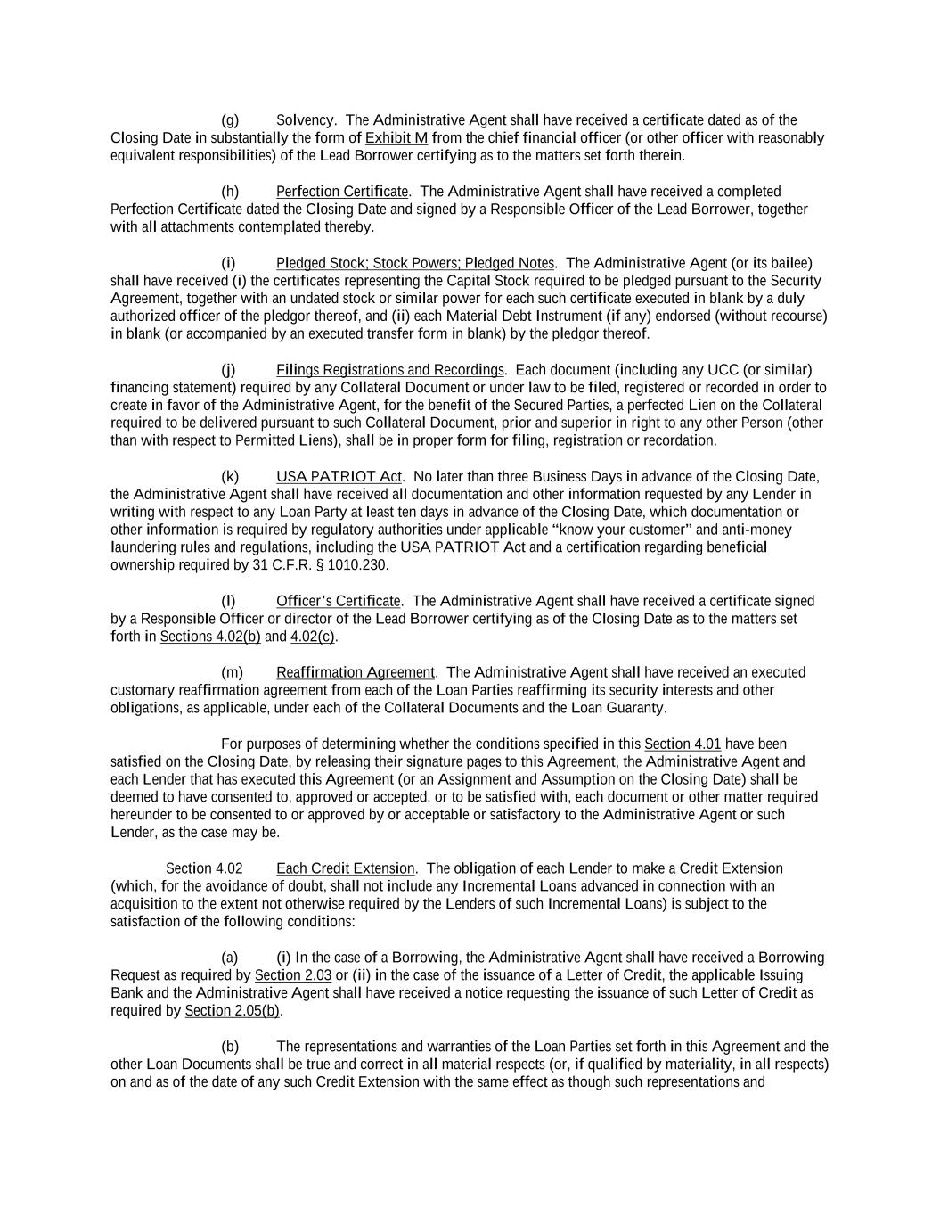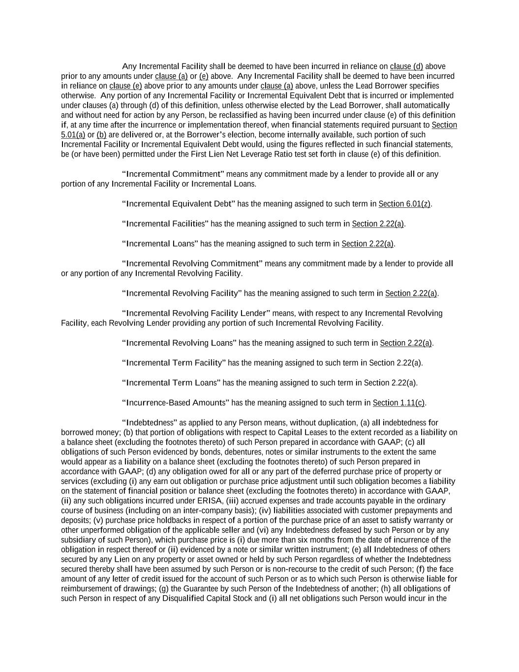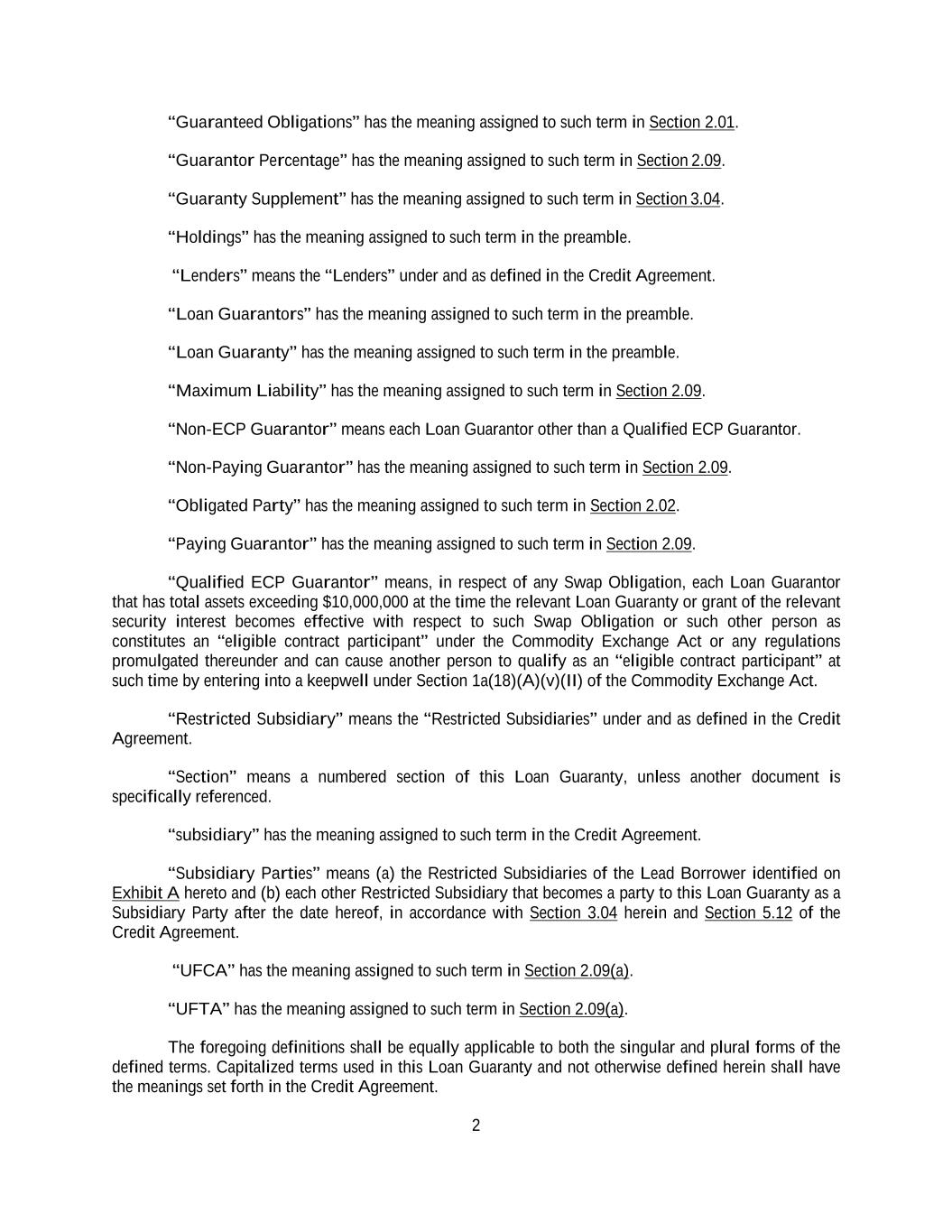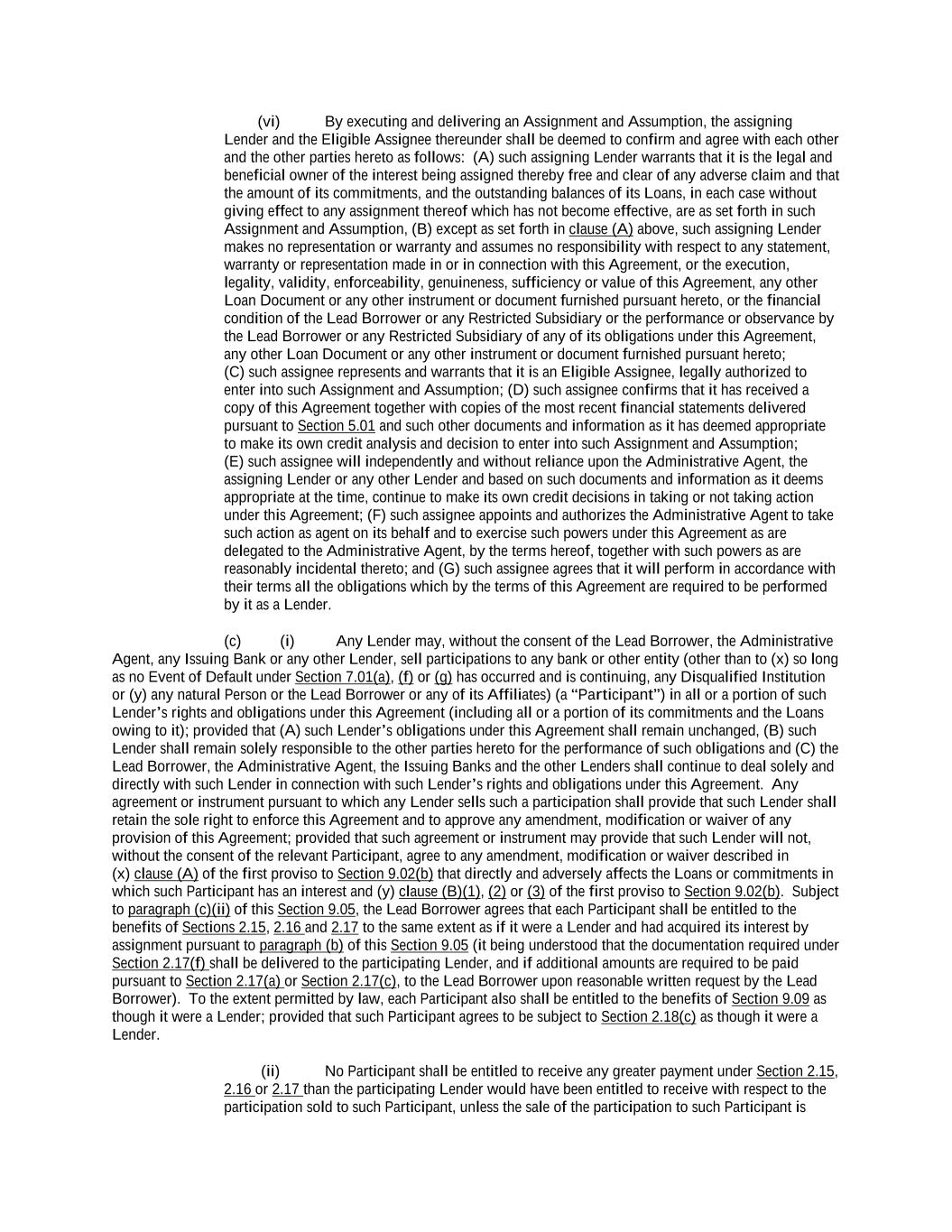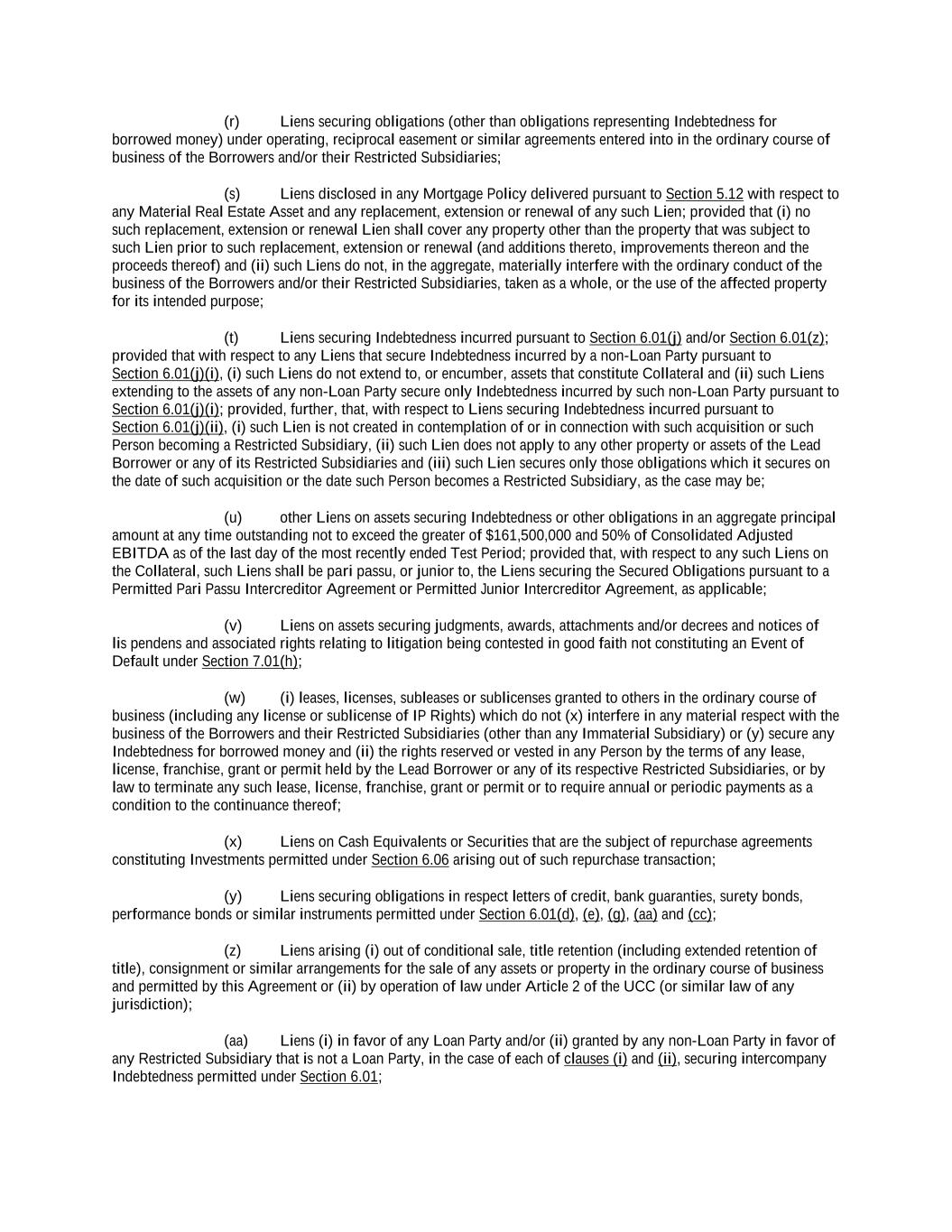-ii- 61234327 #97236474v29 Section 2.17 Taxes. ............................................................................................................................................ 88 Section 2.18 Payments Generally; Allocation of Proceeds; Sharing of Payments. ............................................ 91 Section 2.19 Mitigation Obligations; Replacement of Lenders. ........................................................................ 93 Section 2.20 Illegality. ....................................................................................................................................... 94 Section 2.21 Defaulting Lenders ........................................................................................................................ 95 Section 2.22 Incremental Credit Extensions. ..................................................................................................... 97 Section 2.23 Extensions of Loans and Revolving Commitments. ................................................................... 102 Section 2.24 Lead Borrower as Borrower Representative ............................................................................... 104 Section 2.25 Currency Equivalents. ................................................................................................................. 104 Section 2.26 Ancillary Facilities. ..................................................................................................................... 105 Section 2.27 Benchmark Replacement. ........................................................................................................... 109 Section 2.28 Canadian Benchmark Replacement Setting. ............................................................................... 111 ARTICLE 3 REPRESENTATIONS AND WARRANTIES Section 3.01 Organization; Powers .................................................................................................................. 112 Section 3.02 Authorization; Enforceability...................................................................................................... 113 Section 3.03 Governmental Approvals; No Conflicts ...................................................................................... 113 Section 3.04 Financial Condition; No Material Adverse Effect. ..................................................................... 113 Section 3.05 Properties; Intellectual Property. ................................................................................................. 113 Section 3.06 Litigation and Environmental Matters. ....................................................................................... 114 Section 3.07 Compliance with Laws ................................................................................................................ 114 Section 3.08 Investment Company Status ........................................................................................................ 114 Section 3.09 Taxes ........................................................................................................................................... 114 Section 3.10 ERISA. ........................................................................................................................................ 114 Section 3.11 Disclosure. .................................................................................................................................. 114 Section 3.12 Solvency ...................................................................................................................................... 115 Section 3.13 Capitalization and Subsidiaries ................................................................................................... 115 Section 3.14 Security Interest in Collateral...................................................................................................... 115 Section 3.15 Labor Disputes ............................................................................................................................ 115 Section 3.16 Federal Reserve Regulations. ...................................................................................................... 115 Section 3.17 Economic and Trade Sanctions and Anti-Corruption Laws. ....................................................... 116 Section 3.18 Senior Indebtedness .................................................................................................................... 116 Section 3.19 Use of Proceeds ........................................................................................................................... 116 Section 3.20 Insurance ..................................................................................................................................... 116 Section 3.21 Central Administration; COMI ................................................................................................... 116