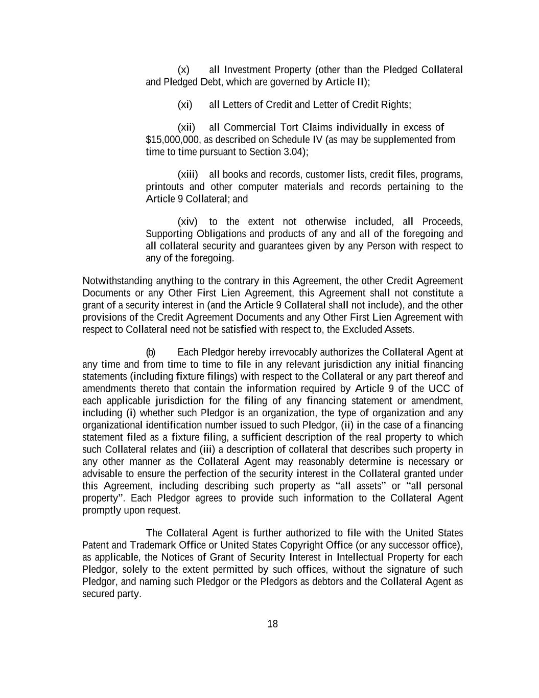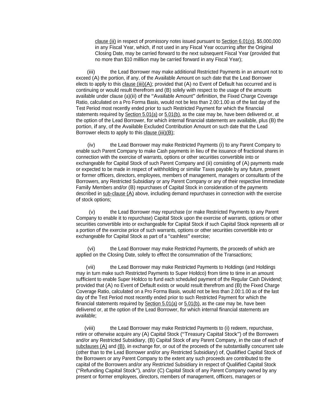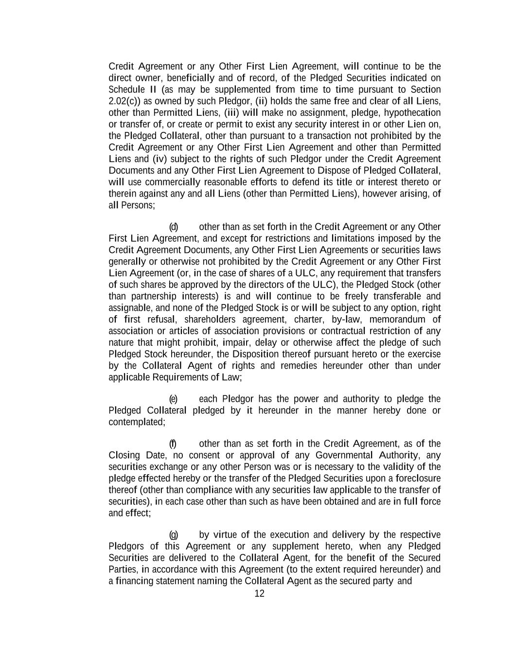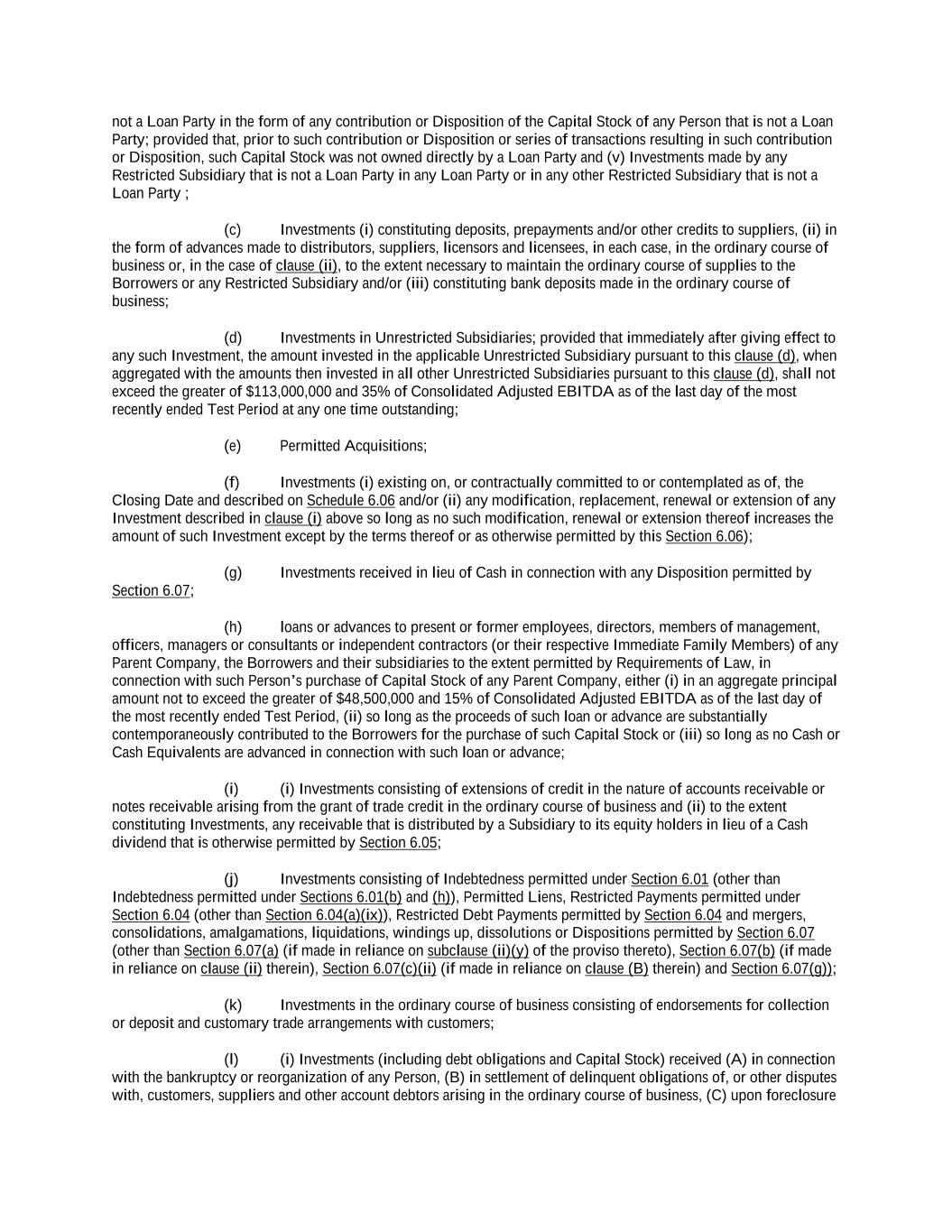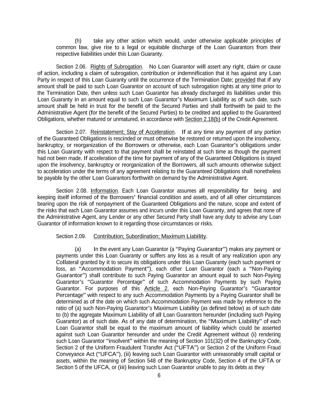 -ii- 61234327 #97236474v29 Section 2.17 Taxes. ............................................................................................................................................ 88 Section 2.18 Payments Generally; Allocation of Proceeds; Sharing of Payments. ............................................ 91 Section 2.19 Mitigation Obligations; Replacement of Lenders. ........................................................................ 93 Section 2.20 Illegality. ....................................................................................................................................... 94 Section 2.21 Defaulting Lenders ........................................................................................................................ 95 Section 2.22 Incremental Credit Extensions. ..................................................................................................... 97 Section 2.23 Extensions of Loans and Revolving Commitments. ................................................................... 102 Section 2.24 Lead Borrower as Borrower Representative ............................................................................... 104 Section 2.25 Currency Equivalents. ................................................................................................................. 104 Section 2.26 Ancillary Facilities. ..................................................................................................................... 105 Section 2.27 Benchmark Replacement. ........................................................................................................... 109 Section 2.28 Canadian Benchmark Replacement Setting. ............................................................................... 111 ARTICLE 3 REPRESENTATIONS AND WARRANTIES Section 3.01 Organization; Powers .................................................................................................................. 112 Section 3.02 Authorization; Enforceability...................................................................................................... 113 Section 3.03 Governmental Approvals; No Conflicts ...................................................................................... 113 Section 3.04 Financial Condition; No Material Adverse Effect. ..................................................................... 113 Section 3.05 Properties; Intellectual Property. ................................................................................................. 113 Section 3.06 Litigation and Environmental Matters. ....................................................................................... 114 Section 3.07 Compliance with Laws ................................................................................................................ 114 Section 3.08 Investment Company Status ........................................................................................................ 114 Section 3.09 Taxes ........................................................................................................................................... 114 Section 3.10 ERISA. ........................................................................................................................................ 114 Section 3.11 Disclosure. .................................................................................................................................. 114 Section 3.12 Solvency ...................................................................................................................................... 115 Section 3.13 Capitalization and Subsidiaries ................................................................................................... 115 Section 3.14 Security Interest in Collateral...................................................................................................... 115 Section 3.15 Labor Disputes ............................................................................................................................ 115 Section 3.16 Federal Reserve Regulations. ...................................................................................................... 115 Section 3.17 Economic and Trade Sanctions and Anti-Corruption Laws. ....................................................... 116 Section 3.18 Senior Indebtedness .................................................................................................................... 116 Section 3.19 Use of Proceeds ........................................................................................................................... 116 Section 3.20 Insurance ..................................................................................................................................... 116 Section 3.21 Central Administration; COMI ................................................................................................... 116