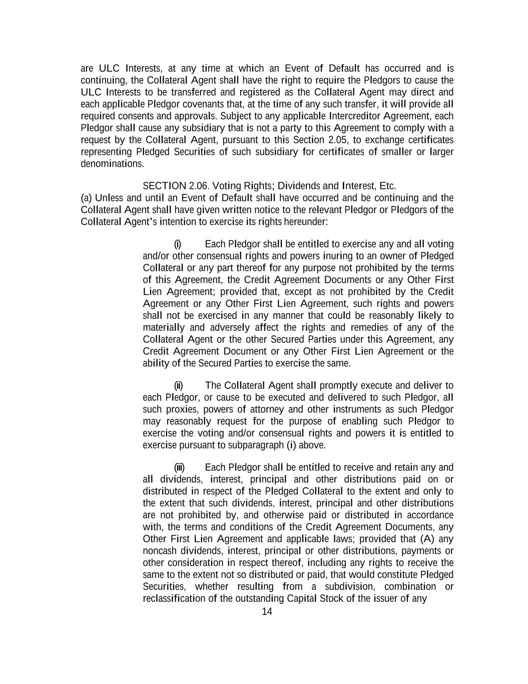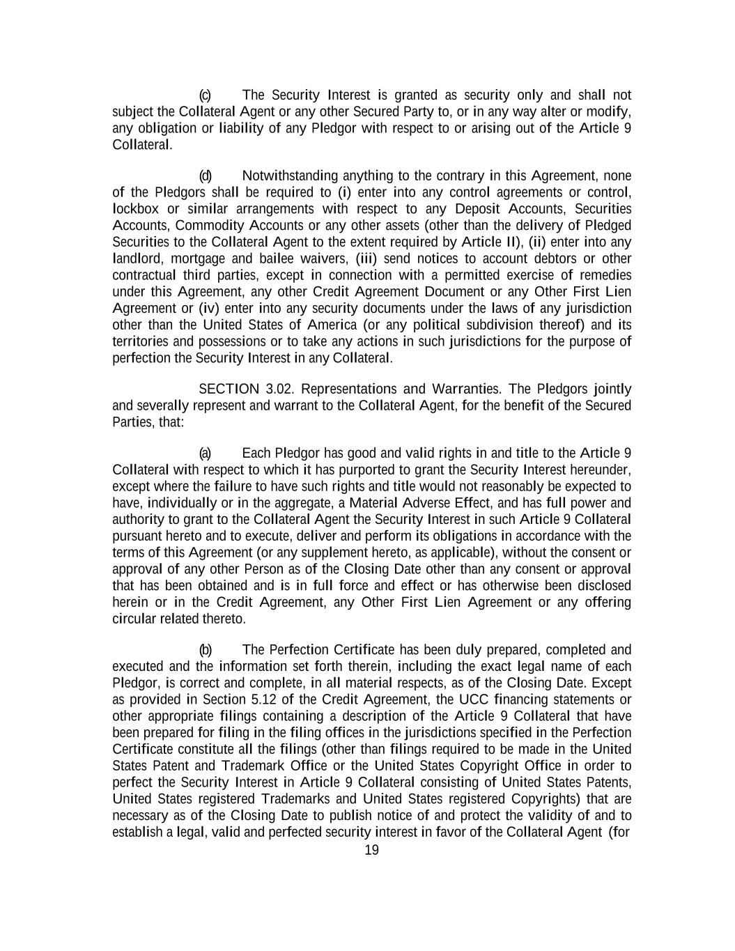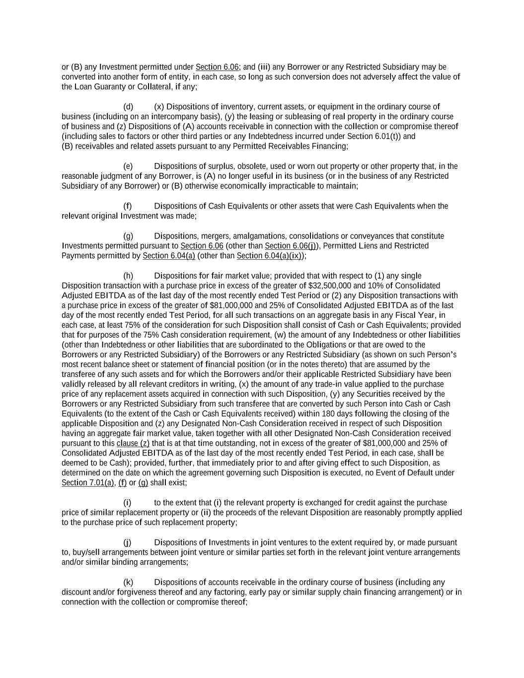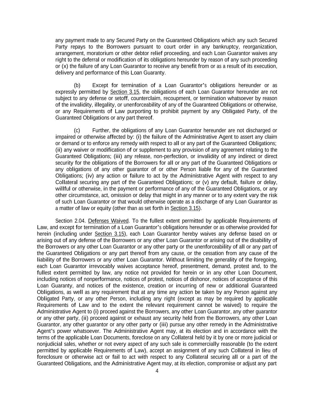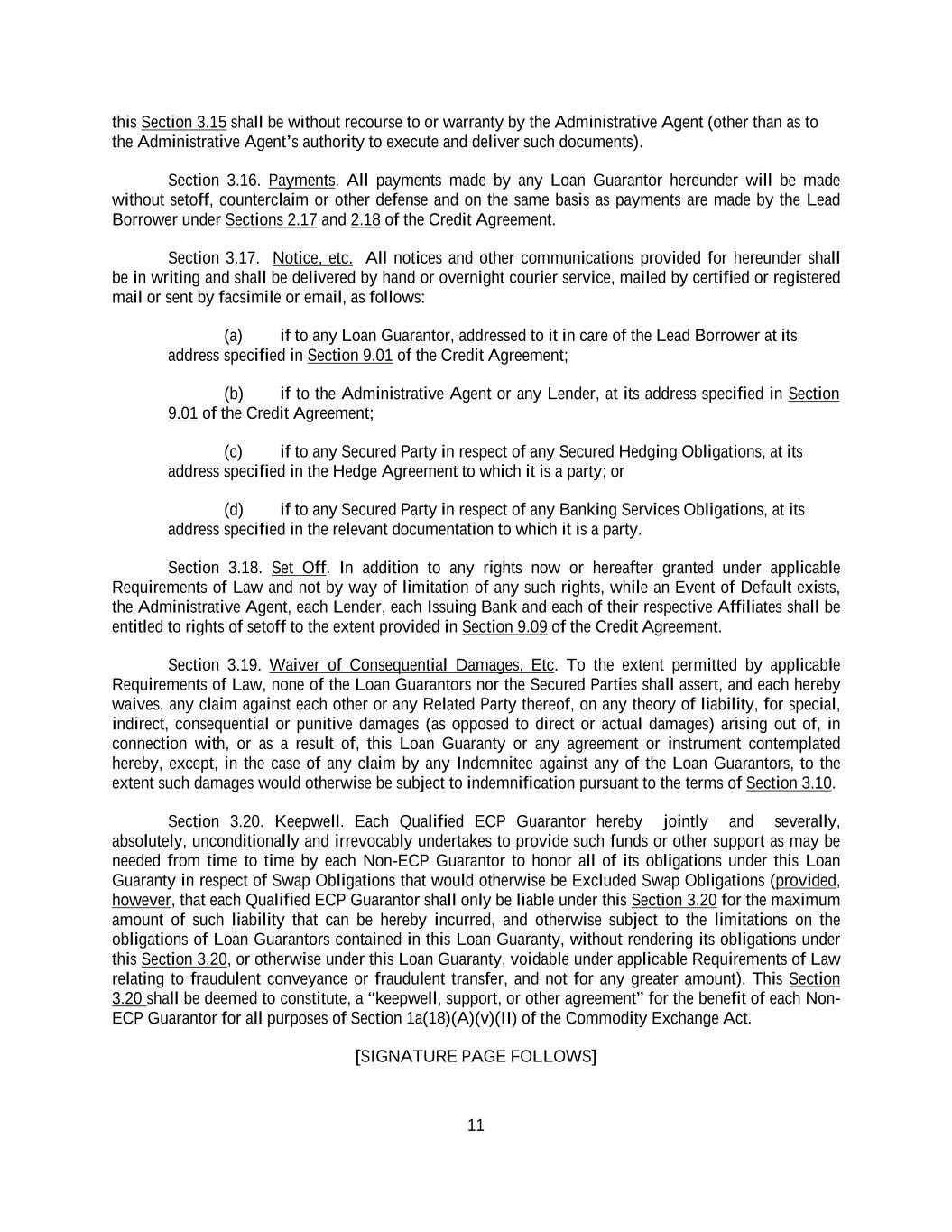 -ii- 61234327 #97236474v29 Section 2.17 Taxes. ............................................................................................................................................ 88 Section 2.18 Payments Generally; Allocation of Proceeds; Sharing of Payments. ............................................ 91 Section 2.19 Mitigation Obligations; Replacement of Lenders. ........................................................................ 93 Section 2.20 Illegality. ....................................................................................................................................... 94 Section 2.21 Defaulting Lenders ........................................................................................................................ 95 Section 2.22 Incremental Credit Extensions. ..................................................................................................... 97 Section 2.23 Extensions of Loans and Revolving Commitments. ................................................................... 102 Section 2.24 Lead Borrower as Borrower Representative ............................................................................... 104 Section 2.25 Currency Equivalents. ................................................................................................................. 104 Section 2.26 Ancillary Facilities. ..................................................................................................................... 105 Section 2.27 Benchmark Replacement. ........................................................................................................... 109 Section 2.28 Canadian Benchmark Replacement Setting. ............................................................................... 111 ARTICLE 3 REPRESENTATIONS AND WARRANTIES Section 3.01 Organization; Powers .................................................................................................................. 112 Section 3.02 Authorization; Enforceability...................................................................................................... 113 Section 3.03 Governmental Approvals; No Conflicts ...................................................................................... 113 Section 3.04 Financial Condition; No Material Adverse Effect. ..................................................................... 113 Section 3.05 Properties; Intellectual Property. ................................................................................................. 113 Section 3.06 Litigation and Environmental Matters. ....................................................................................... 114 Section 3.07 Compliance with Laws ................................................................................................................ 114 Section 3.08 Investment Company Status ........................................................................................................ 114 Section 3.09 Taxes ........................................................................................................................................... 114 Section 3.10 ERISA. ........................................................................................................................................ 114 Section 3.11 Disclosure. .................................................................................................................................. 114 Section 3.12 Solvency ...................................................................................................................................... 115 Section 3.13 Capitalization and Subsidiaries ................................................................................................... 115 Section 3.14 Security Interest in Collateral...................................................................................................... 115 Section 3.15 Labor Disputes ............................................................................................................................ 115 Section 3.16 Federal Reserve Regulations. ...................................................................................................... 115 Section 3.17 Economic and Trade Sanctions and Anti-Corruption Laws. ....................................................... 116 Section 3.18 Senior Indebtedness .................................................................................................................... 116 Section 3.19 Use of Proceeds ........................................................................................................................... 116 Section 3.20 Insurance ..................................................................................................................................... 116 Section 3.21 Central Administration; COMI ................................................................................................... 116