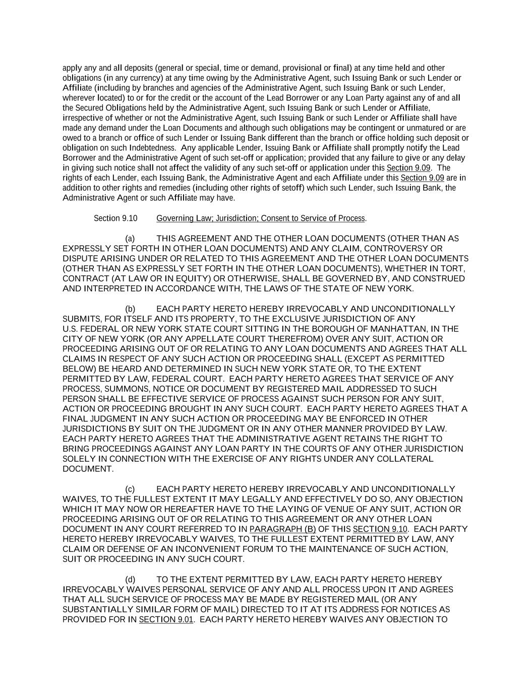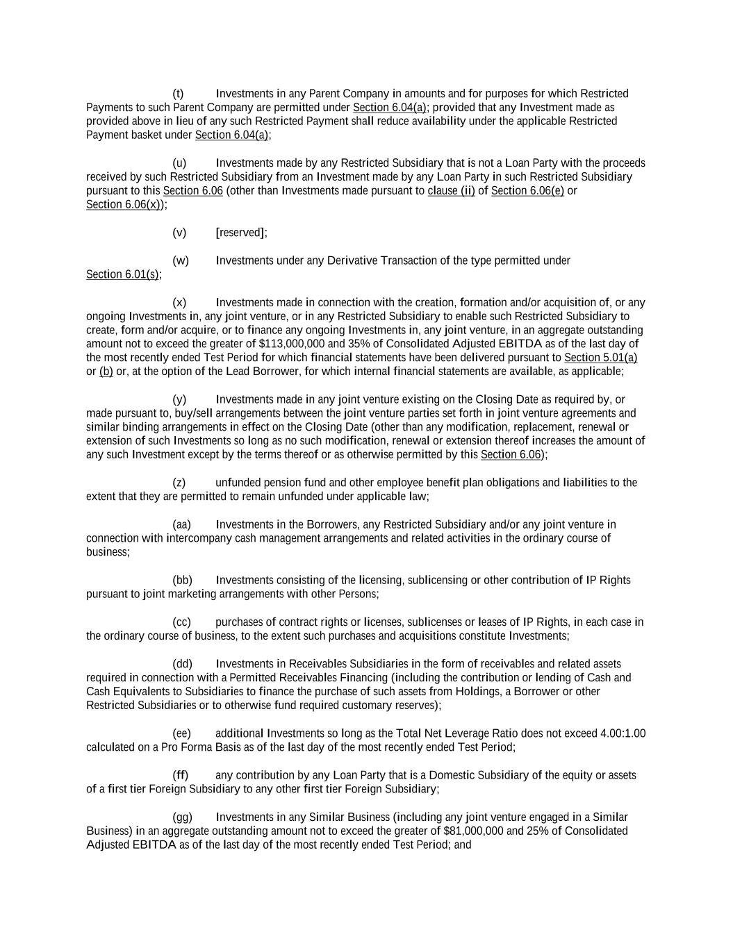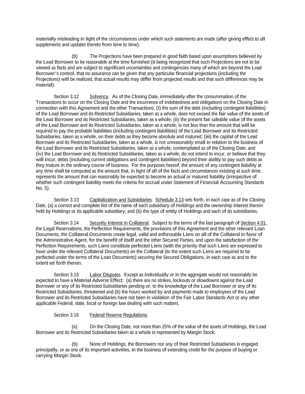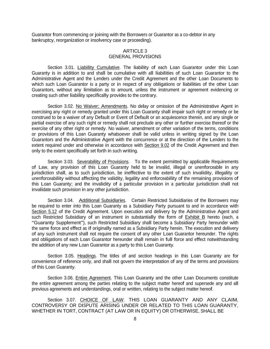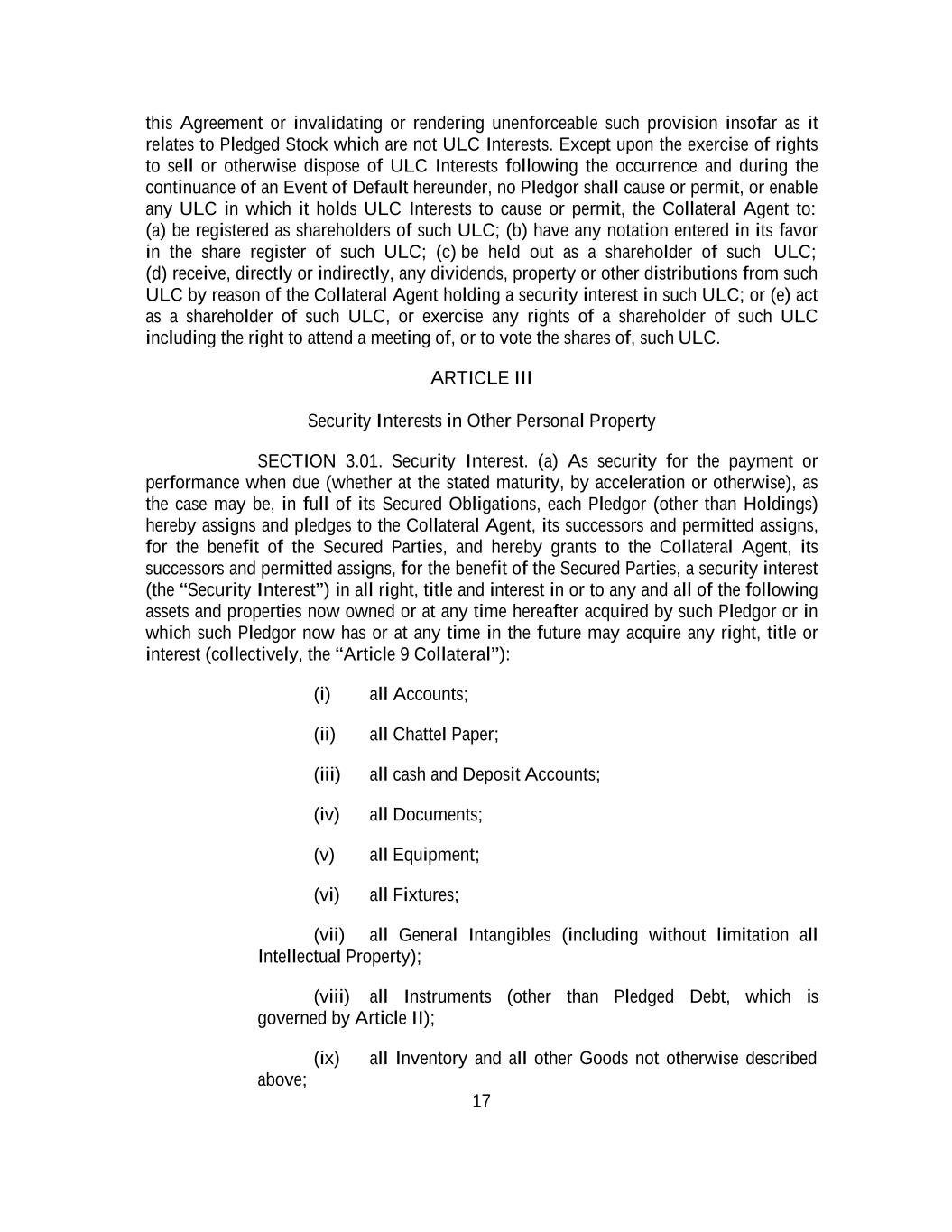 -ii- 61234327 #97236474v29 Section 2.17 Taxes. ............................................................................................................................................ 88 Section 2.18 Payments Generally; Allocation of Proceeds; Sharing of Payments. ............................................ 91 Section 2.19 Mitigation Obligations; Replacement of Lenders. ........................................................................ 93 Section 2.20 Illegality. ....................................................................................................................................... 94 Section 2.21 Defaulting Lenders ........................................................................................................................ 95 Section 2.22 Incremental Credit Extensions. ..................................................................................................... 97 Section 2.23 Extensions of Loans and Revolving Commitments. ................................................................... 102 Section 2.24 Lead Borrower as Borrower Representative ............................................................................... 104 Section 2.25 Currency Equivalents. ................................................................................................................. 104 Section 2.26 Ancillary Facilities. ..................................................................................................................... 105 Section 2.27 Benchmark Replacement. ........................................................................................................... 109 Section 2.28 Canadian Benchmark Replacement Setting. ............................................................................... 111 ARTICLE 3 REPRESENTATIONS AND WARRANTIES Section 3.01 Organization; Powers .................................................................................................................. 112 Section 3.02 Authorization; Enforceability...................................................................................................... 113 Section 3.03 Governmental Approvals; No Conflicts ...................................................................................... 113 Section 3.04 Financial Condition; No Material Adverse Effect. ..................................................................... 113 Section 3.05 Properties; Intellectual Property. ................................................................................................. 113 Section 3.06 Litigation and Environmental Matters. ....................................................................................... 114 Section 3.07 Compliance with Laws ................................................................................................................ 114 Section 3.08 Investment Company Status ........................................................................................................ 114 Section 3.09 Taxes ........................................................................................................................................... 114 Section 3.10 ERISA. ........................................................................................................................................ 114 Section 3.11 Disclosure. .................................................................................................................................. 114 Section 3.12 Solvency ...................................................................................................................................... 115 Section 3.13 Capitalization and Subsidiaries ................................................................................................... 115 Section 3.14 Security Interest in Collateral...................................................................................................... 115 Section 3.15 Labor Disputes ............................................................................................................................ 115 Section 3.16 Federal Reserve Regulations. ...................................................................................................... 115 Section 3.17 Economic and Trade Sanctions and Anti-Corruption Laws. ....................................................... 116 Section 3.18 Senior Indebtedness .................................................................................................................... 116 Section 3.19 Use of Proceeds ........................................................................................................................... 116 Section 3.20 Insurance ..................................................................................................................................... 116 Section 3.21 Central Administration; COMI ................................................................................................... 116
