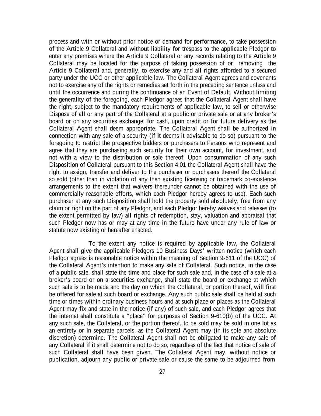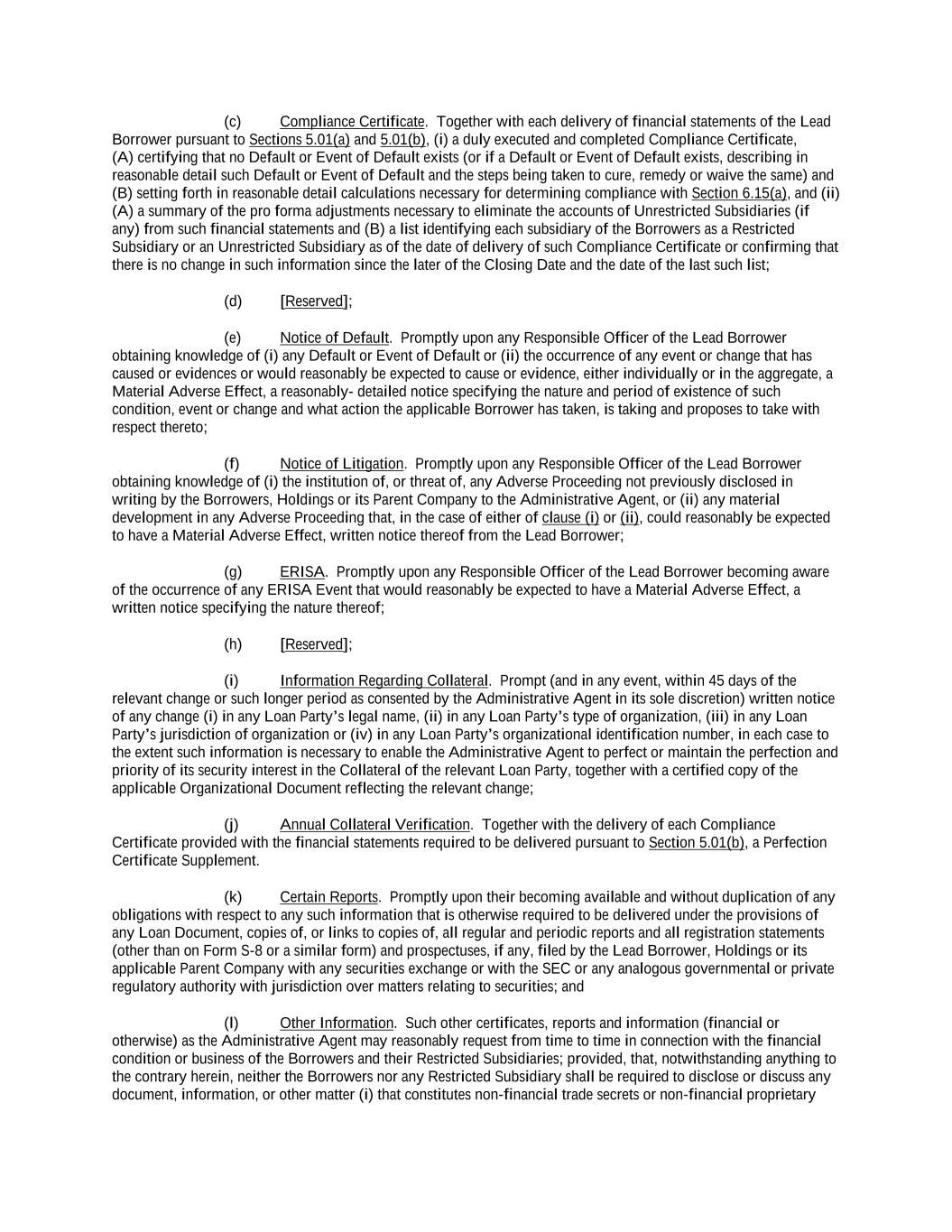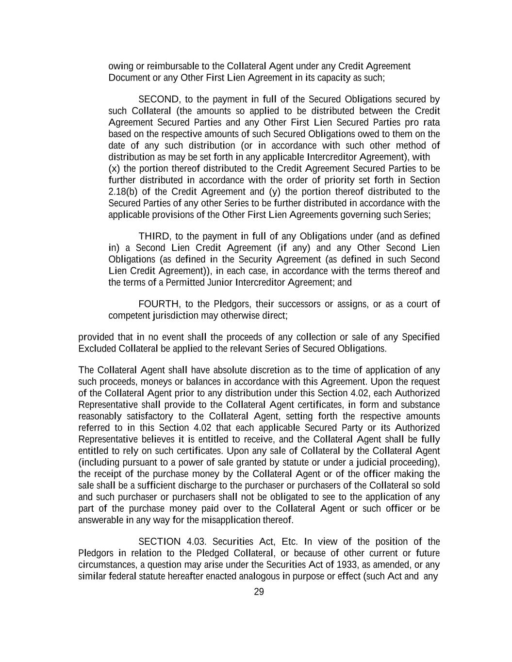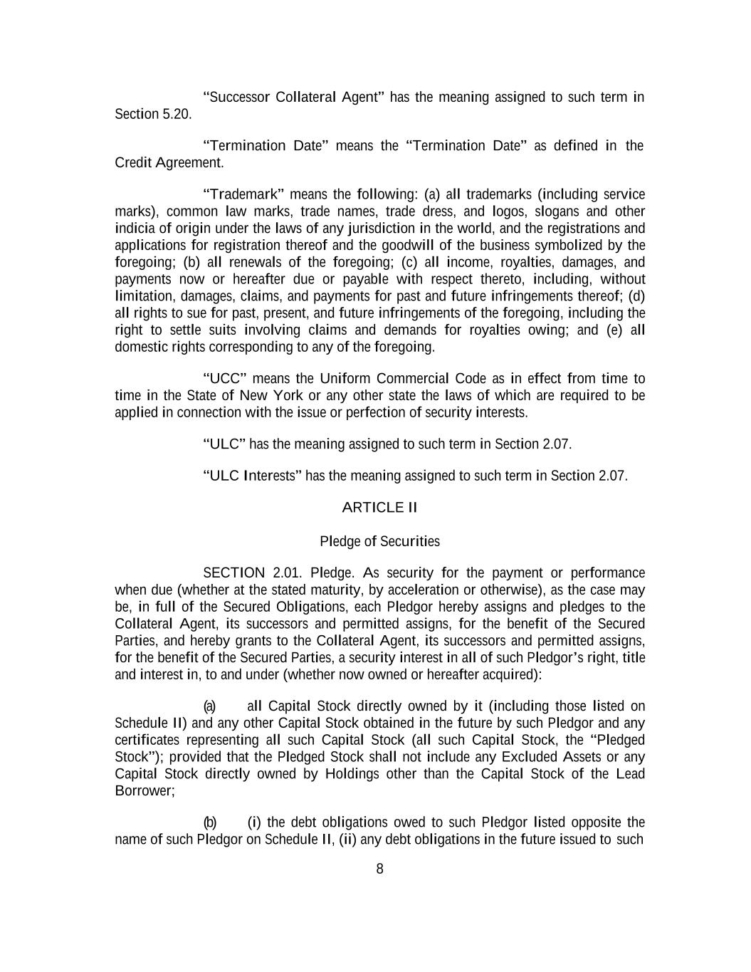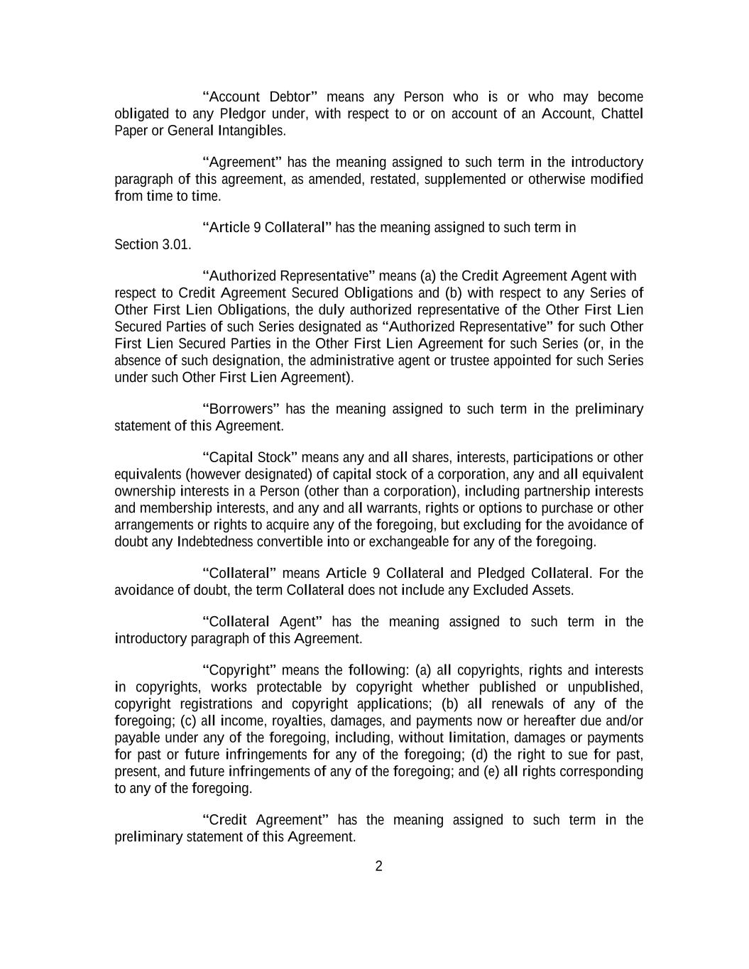 -ii- 61234327 #97236474v29 Section 2.17 Taxes. ............................................................................................................................................ 88 Section 2.18 Payments Generally; Allocation of Proceeds; Sharing of Payments. ............................................ 91 Section 2.19 Mitigation Obligations; Replacement of Lenders. ........................................................................ 93 Section 2.20 Illegality. ....................................................................................................................................... 94 Section 2.21 Defaulting Lenders ........................................................................................................................ 95 Section 2.22 Incremental Credit Extensions. ..................................................................................................... 97 Section 2.23 Extensions of Loans and Revolving Commitments. ................................................................... 102 Section 2.24 Lead Borrower as Borrower Representative ............................................................................... 104 Section 2.25 Currency Equivalents. ................................................................................................................. 104 Section 2.26 Ancillary Facilities. ..................................................................................................................... 105 Section 2.27 Benchmark Replacement. ........................................................................................................... 109 Section 2.28 Canadian Benchmark Replacement Setting. ............................................................................... 111 ARTICLE 3 REPRESENTATIONS AND WARRANTIES Section 3.01 Organization; Powers .................................................................................................................. 112 Section 3.02 Authorization; Enforceability...................................................................................................... 113 Section 3.03 Governmental Approvals; No Conflicts ...................................................................................... 113 Section 3.04 Financial Condition; No Material Adverse Effect. ..................................................................... 113 Section 3.05 Properties; Intellectual Property. ................................................................................................. 113 Section 3.06 Litigation and Environmental Matters. ....................................................................................... 114 Section 3.07 Compliance with Laws ................................................................................................................ 114 Section 3.08 Investment Company Status ........................................................................................................ 114 Section 3.09 Taxes ........................................................................................................................................... 114 Section 3.10 ERISA. ........................................................................................................................................ 114 Section 3.11 Disclosure. .................................................................................................................................. 114 Section 3.12 Solvency ...................................................................................................................................... 115 Section 3.13 Capitalization and Subsidiaries ................................................................................................... 115 Section 3.14 Security Interest in Collateral...................................................................................................... 115 Section 3.15 Labor Disputes ............................................................................................................................ 115 Section 3.16 Federal Reserve Regulations. ...................................................................................................... 115 Section 3.17 Economic and Trade Sanctions and Anti-Corruption Laws. ....................................................... 116 Section 3.18 Senior Indebtedness .................................................................................................................... 116 Section 3.19 Use of Proceeds ........................................................................................................................... 116 Section 3.20 Insurance ..................................................................................................................................... 116 Section 3.21 Central Administration; COMI ................................................................................................... 116