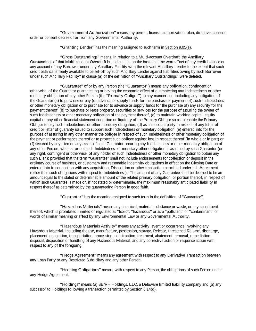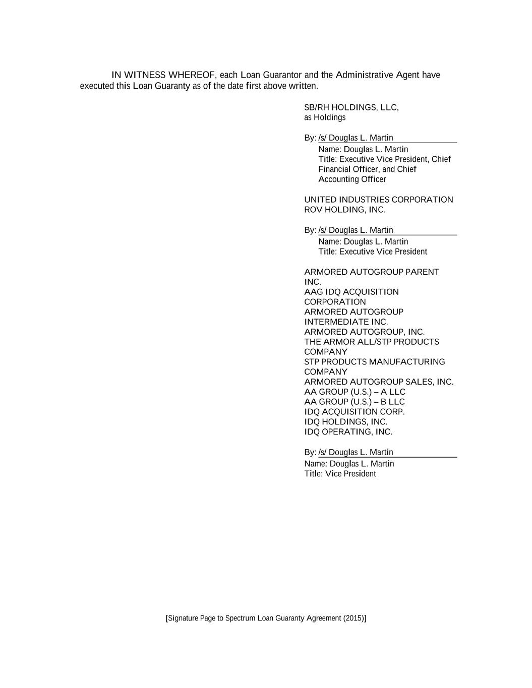 Obligations under the Credit Agreement and, at the Company’s option, under certain interest rate protection or other hedging arrangements and certain cash management arrangements (collectively, the “Secured Obligations”) are guaranteed by SB/RH Holdings and the direct and indirect wholly-owned material domestic subsidiaries of SB/RH Holdings, other than the Company (the “Subsidiary Guarantors”), subject to certain exceptions, pursuant to the Loan Guaranty, dated as of June 23, 2015, by and among SB/RH Holdings, the Subsidiary Guarantors party thereto from time to time and Royal Bank of Canada, as administrative agent and collateral agent (the “Loan Guaranty”).