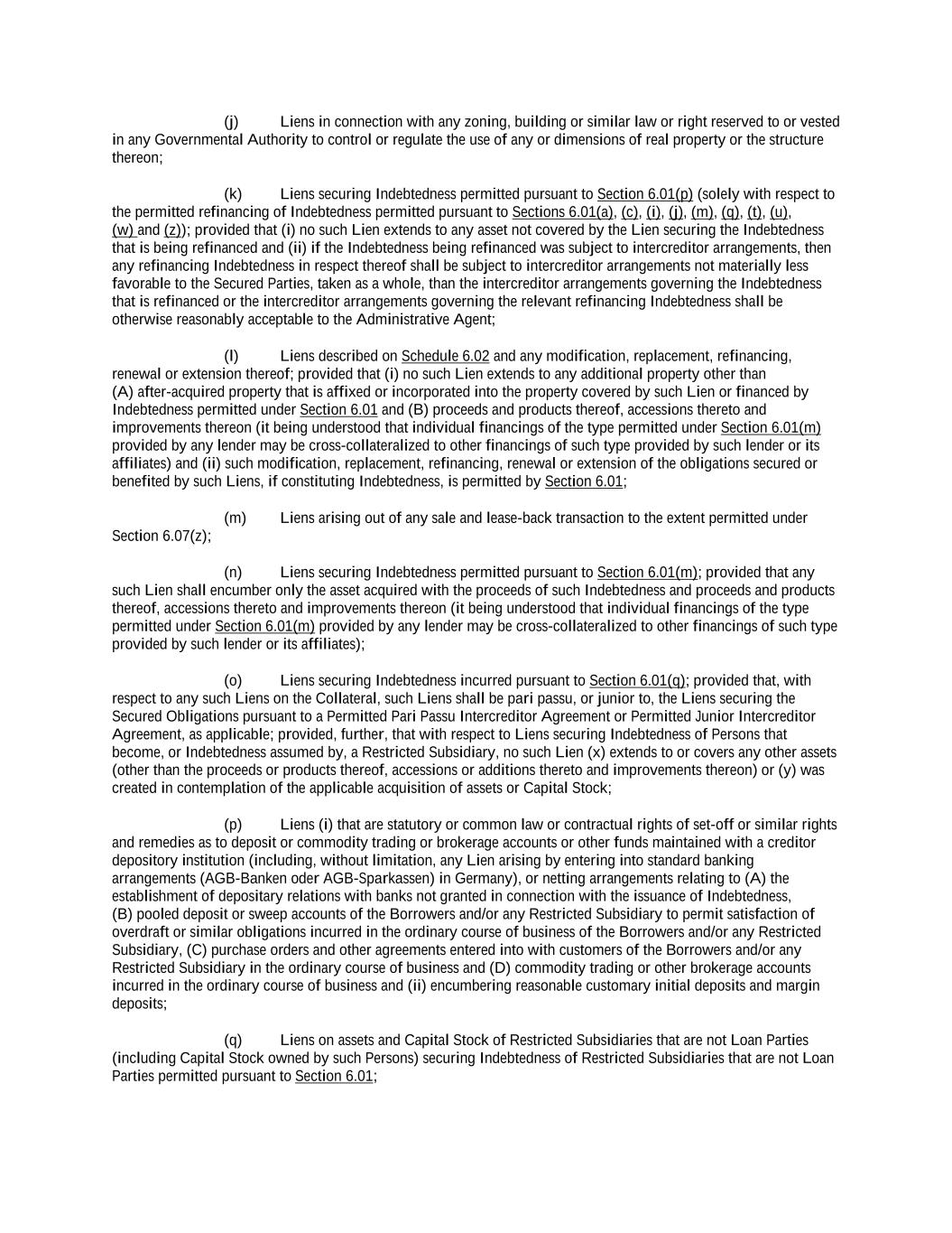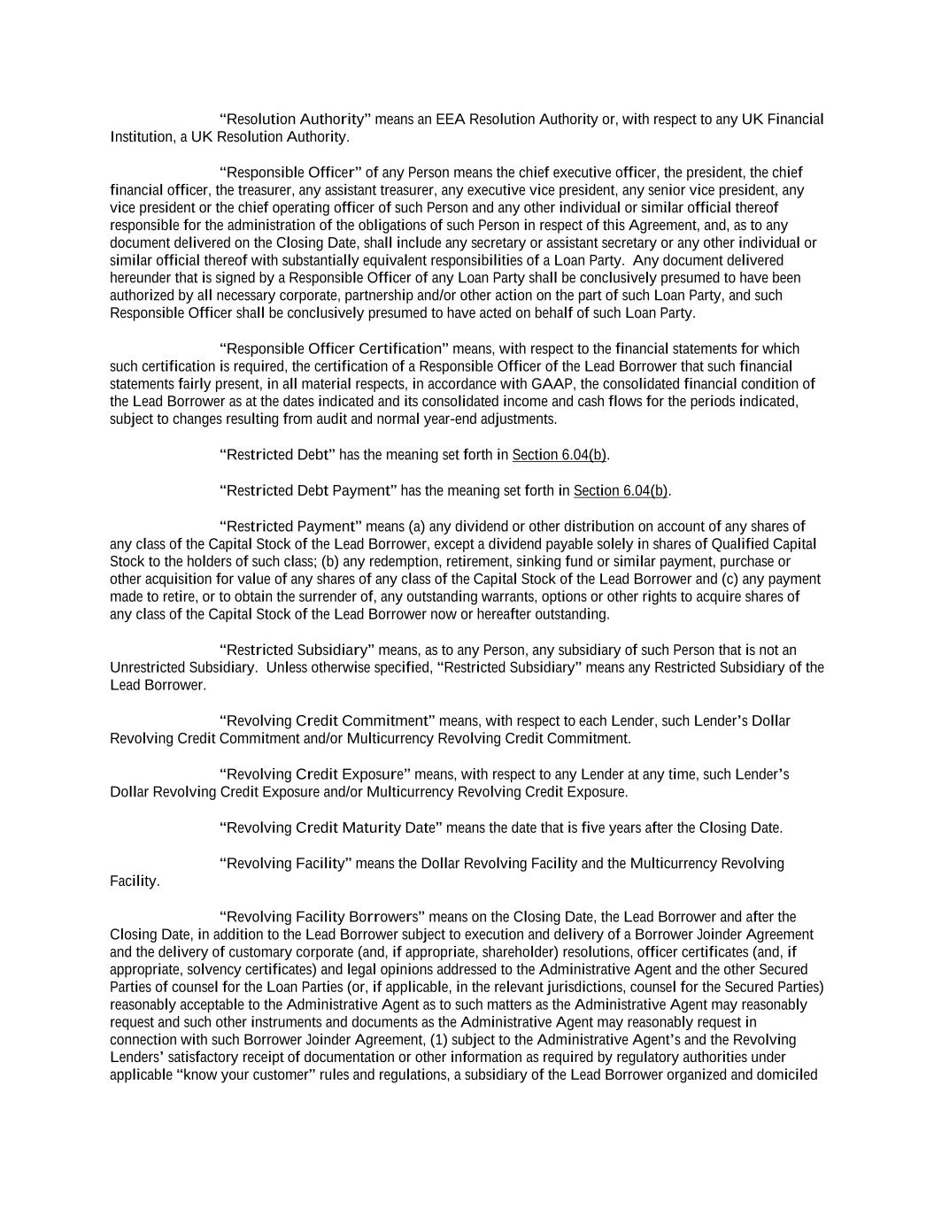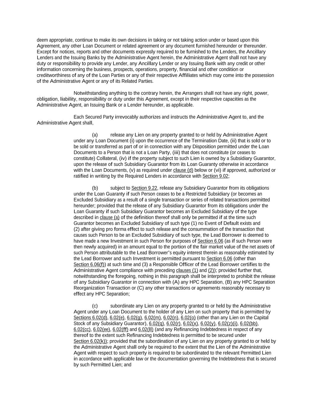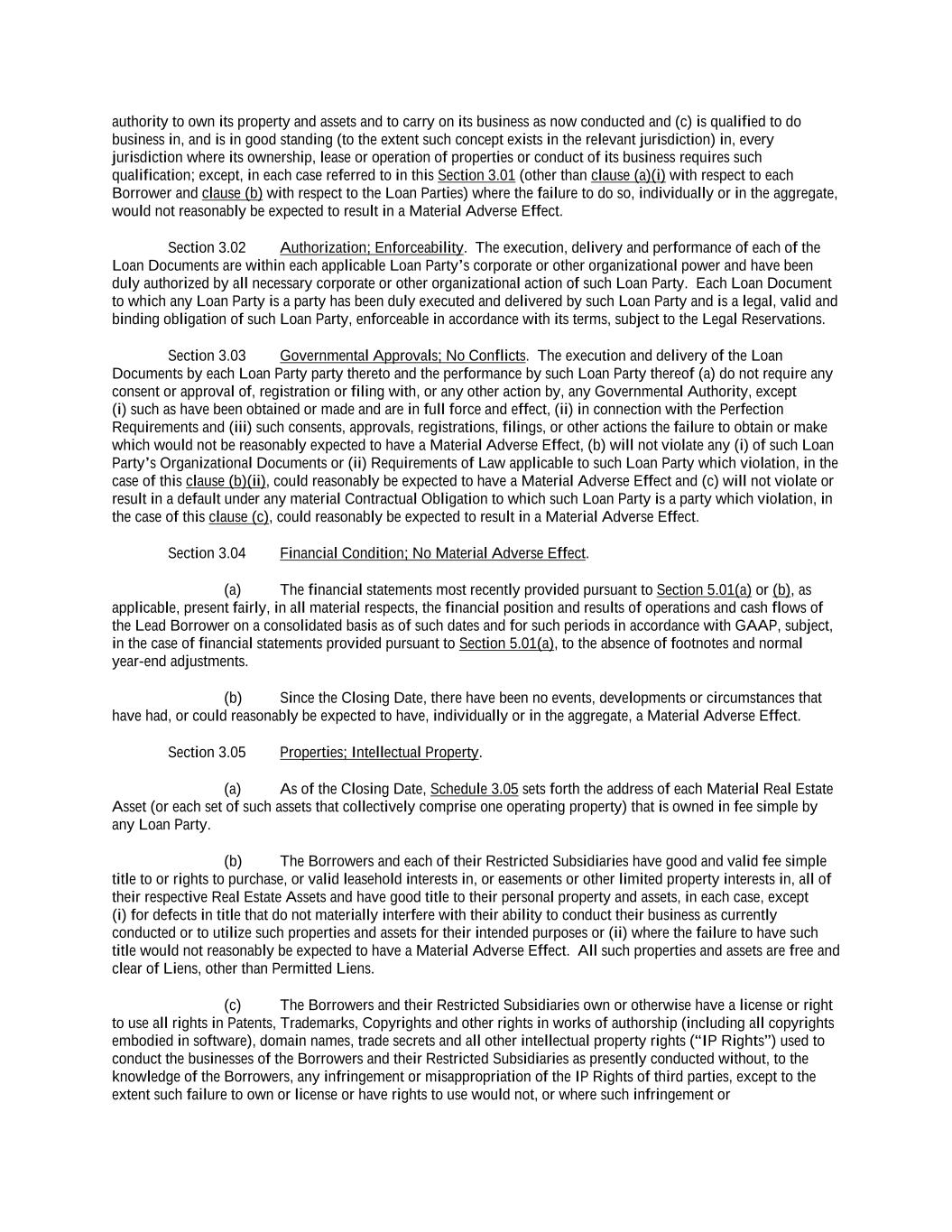 -iii- 61234327 #97236474v29 ARTICLE 4 CONDITIONS Section 4.01 Closing Date ................................................................................................................................ 117 Section 4.02 Each Credit Extension ................................................................................................................. 118 ARTICLE 5 AFFIRMATIVE COVENANTS Section 5.01 Financial Statements and Other Reports ..................................................................................... 119 Section 5.02 Existence ..................................................................................................................................... 121 Section 5.03 Payment of Taxes ........................................................................................................................ 122 Section 5.04 Maintenance of Properties........................................................................................................... 122 Section 5.05 Insurance ..................................................................................................................................... 122 Section 5.06 Inspections .................................................................................................................................. 122 Section 5.07 Maintenance of Book and Records ............................................................................................. 123 Section 5.08 Compliance with Laws ................................................................................................................ 123 Section 5.09 Environmental. ............................................................................................................................ 123 Section 5.10 Designation of Subsidiaries......................................................................................................... 123 Section 5.11 Use of Proceeds ........................................................................................................................... 124 Section 5.12 Covenant to Guarantee Obligations and Give Security. .............................................................. 124 Section 5.13 Maintenance of Ratings .............................................................................................................. 125 Section 5.14 [Reserved]. .................................................................................................................................. 125 Section 5.15 Further Assurances ...................................................................................................................... 125 Section 5.16 Closing Date Post-Closing Deliverables ..................................................................................... 125 ARTICLE 6 NEGATIVE COVENANTS Section 6.01 Indebtedness ................................................................................................................................ 126 Section 6.02 Liens ............................................................................................................................................ 132 Section 6.03 No Further Negative Pledges ...................................................................................................... 135 Section 6.04 Restricted Payments; Certain Payments of Indebtedness. ........................................................... 137 Section 6.05 Restrictions on Subsidiary Distributions ..................................................................................... 141 Section 6.06 Investments ................................................................................................................................. 142 Section 6.07 Fundamental Changes; Disposition of Assets ............................................................................. 146 Section 6.08 [Reserved] ................................................................................................................................... 149 Section 6.09 Transactions with Affiliates ........................................................................................................ 149 Section 6.10 Conduct of Business.................................................................................................................... 151 Section 6.11 Amendments or Waivers of Organizational Documents ............................................................. 151 Section 6.12 Amendments of or Waivers with Respect to Certain Agreements .............................................. 151