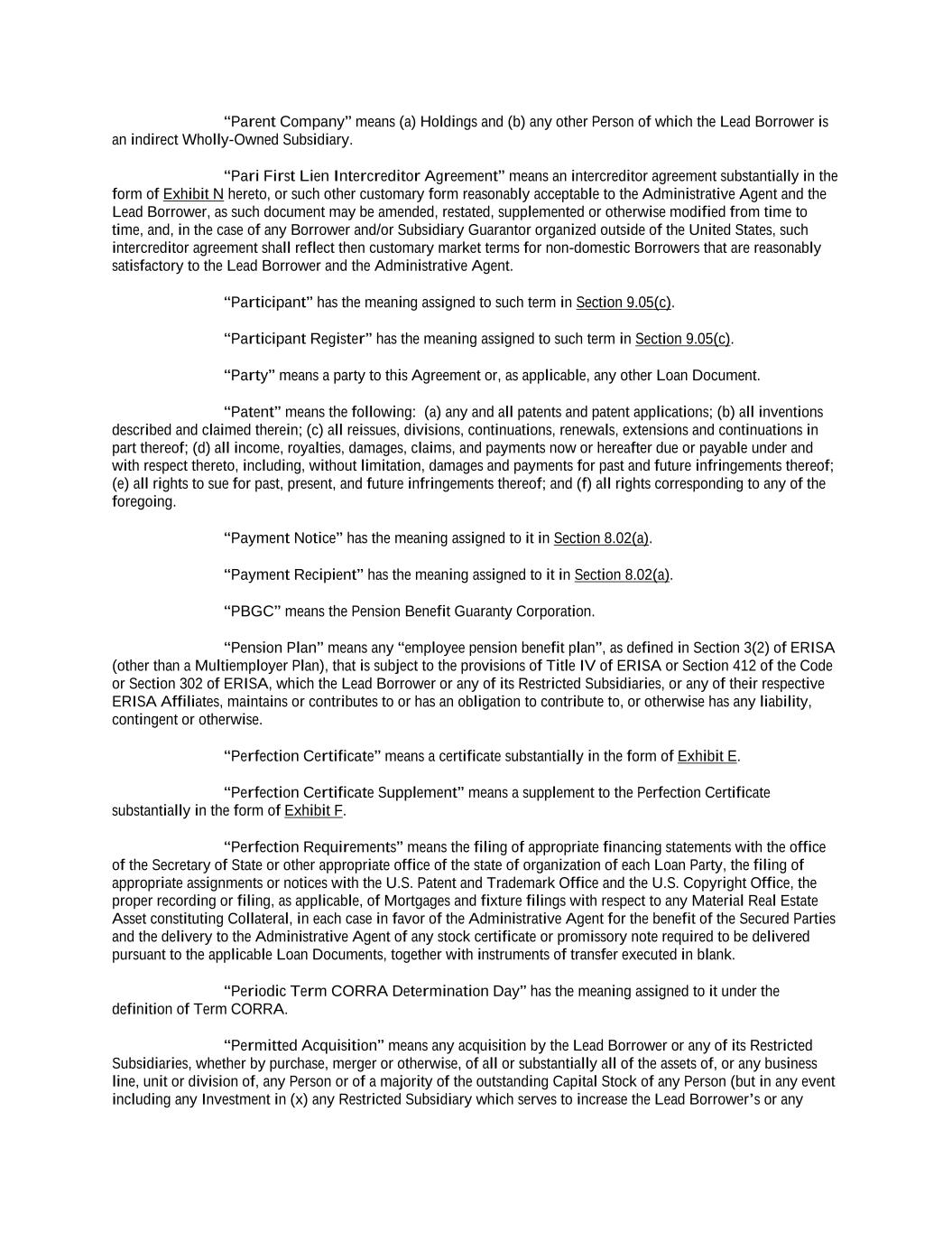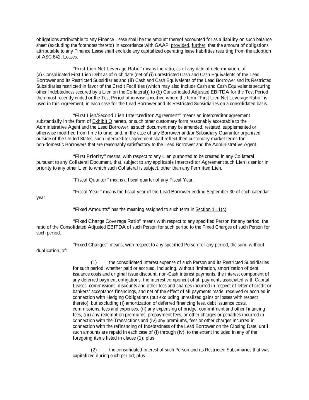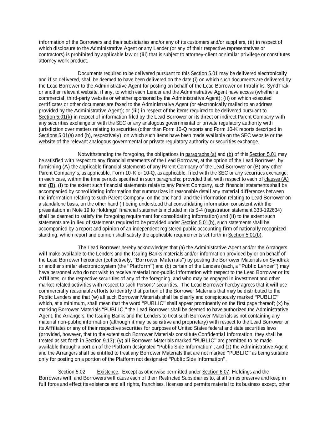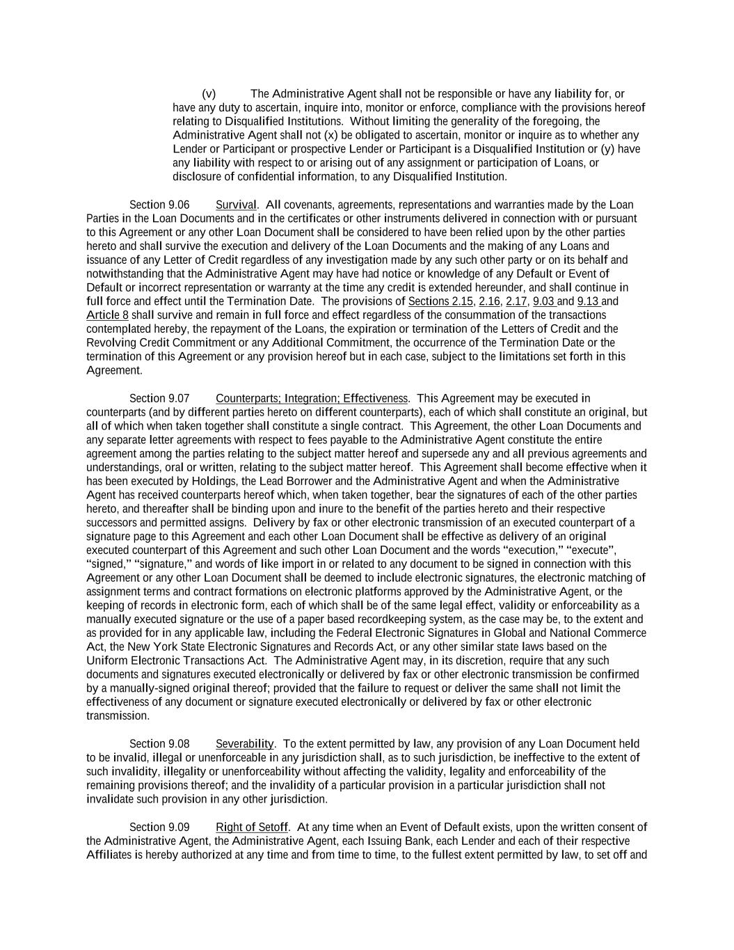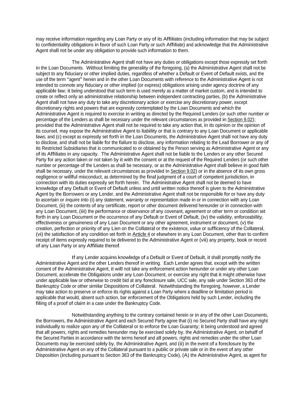 -iv- 61234327 #97236474v29 Section 6.13 Fiscal Year .................................................................................................................................. 151 Section 6.14 Permitted Activities of Holdings ................................................................................................. 151 Section 6.15 Financial Covenant. .................................................................................................................... 153 Section 6.16 Center of Main Interests .............................................................................................................. 153 ARTICLE 7 EVENTS OF DEFAULT Section 7.01 Events of Default ........................................................................................................................ 154 ARTICLE 8 THE ADMINISTRATIVE AGENT Section 8.01 Appointment and Authority ........................................................................................................ 156 Section 8.02 Erroneous Payments .................................................................................................................... 162 ARTICLE 9 MISCELLANEOUS Section 9.01 Notices. ....................................................................................................................................... 164 Section 9.02 Waivers; Amendments. ............................................................................................................... 165 Section 9.03 Expenses; Indemnity. .................................................................................................................. 170 Section 9.04 Waiver of Claim .......................................................................................................................... 171 Section 9.05 Successors and Assigns. .............................................................................................................. 172 Section 9.06 Survival ....................................................................................................................................... 177 Section 9.07 Counterparts; Integration; Effectiveness ..................................................................................... 177 Section 9.08 Severability ................................................................................................................................. 177 Section 9.09 Right of Setoff ............................................................................................................................. 177 Section 9.10 Governing Law; Jurisdiction; Consent to Service of Process. .................................................... 178 Section 9.11 Waiver of Jury Trial .................................................................................................................... 179 Section 9.12 Headings ..................................................................................................................................... 179 Section 9.13 Confidentiality ............................................................................................................................ 179 Section 9.14 No Fiduciary Duty ...................................................................................................................... 180 Section 9.15 Several Obligations ..................................................................................................................... 180 Section 9.16 USA PATRIOT Act .................................................................................................................... 180 Section 9.17 Disclosure ................................................................................................................................... 181 Section 9.18 Appointment for Perfection......................................................................................................... 181 Section 9.19 Interest Rate Limitation .............................................................................................................. 181 Section 9.20 Judgment Currency ..................................................................................................................... 181 Section 9.21 Conflicts ...................................................................................................................................... 181 Section 9.22 Release of Guarantors ................................................................................................................. 181 Section 9.23 Reaffirmation .............................................................................................................................. 182