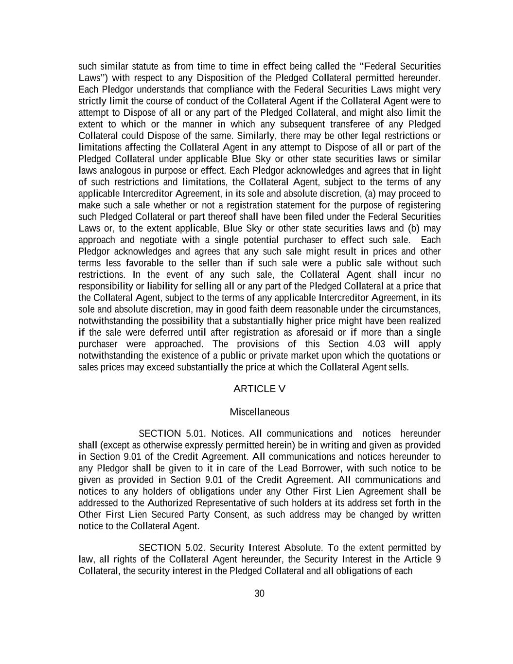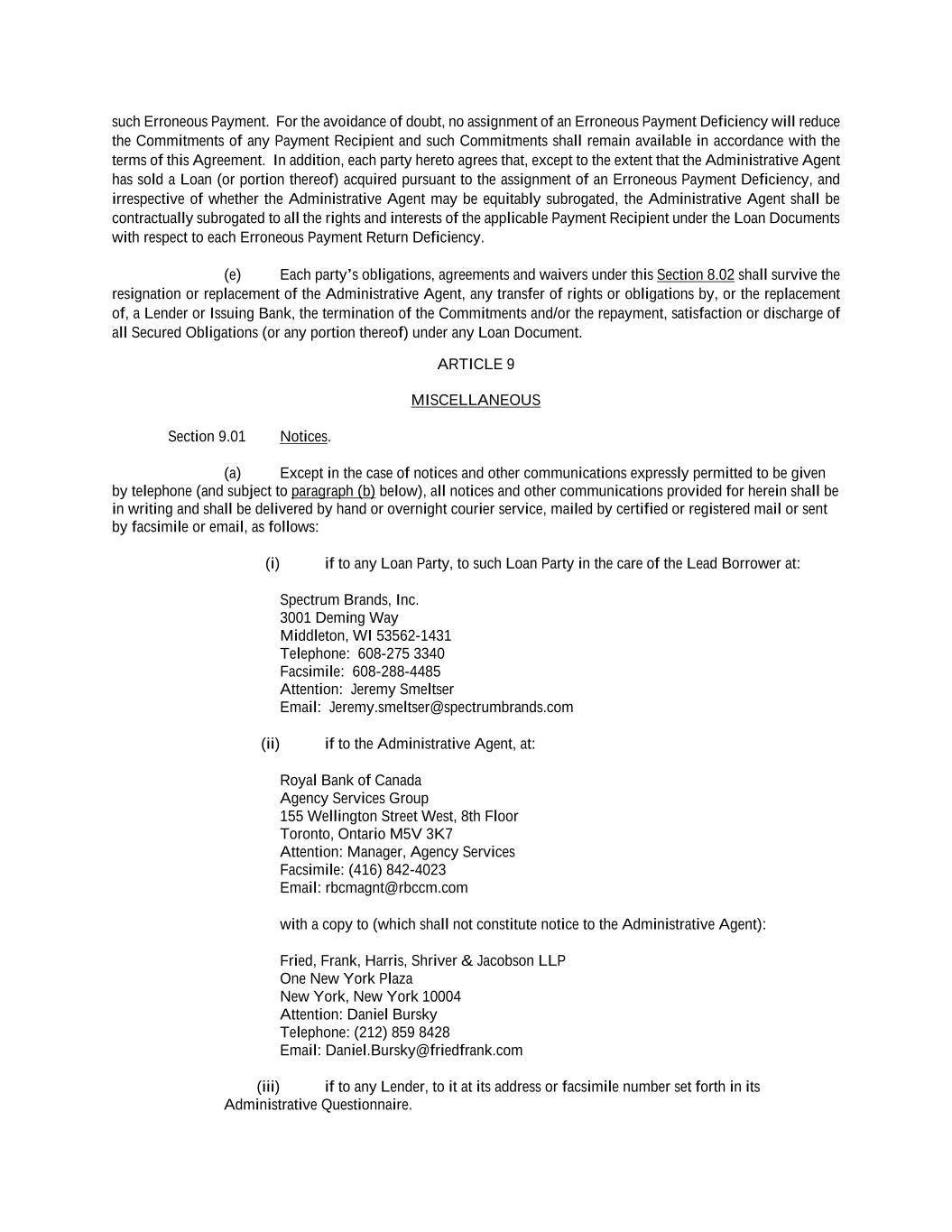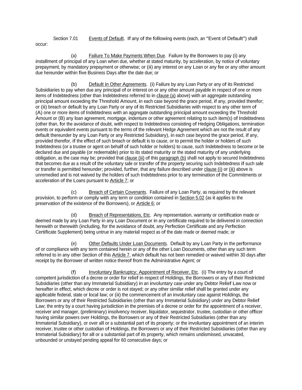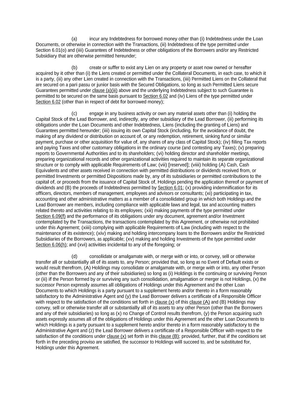 -iv- 61234327 #97236474v29 Section 6.13 Fiscal Year .................................................................................................................................. 151 Section 6.14 Permitted Activities of Holdings ................................................................................................. 151 Section 6.15 Financial Covenant. .................................................................................................................... 153 Section 6.16 Center of Main Interests .............................................................................................................. 153 ARTICLE 7 EVENTS OF DEFAULT Section 7.01 Events of Default ........................................................................................................................ 154 ARTICLE 8 THE ADMINISTRATIVE AGENT Section 8.01 Appointment and Authority ........................................................................................................ 156 Section 8.02 Erroneous Payments .................................................................................................................... 162 ARTICLE 9 MISCELLANEOUS Section 9.01 Notices. ....................................................................................................................................... 164 Section 9.02 Waivers; Amendments. ............................................................................................................... 165 Section 9.03 Expenses; Indemnity. .................................................................................................................. 170 Section 9.04 Waiver of Claim .......................................................................................................................... 171 Section 9.05 Successors and Assigns. .............................................................................................................. 172 Section 9.06 Survival ....................................................................................................................................... 177 Section 9.07 Counterparts; Integration; Effectiveness ..................................................................................... 177 Section 9.08 Severability ................................................................................................................................. 177 Section 9.09 Right of Setoff ............................................................................................................................. 177 Section 9.10 Governing Law; Jurisdiction; Consent to Service of Process. .................................................... 178 Section 9.11 Waiver of Jury Trial .................................................................................................................... 179 Section 9.12 Headings ..................................................................................................................................... 179 Section 9.13 Confidentiality ............................................................................................................................ 179 Section 9.14 No Fiduciary Duty ...................................................................................................................... 180 Section 9.15 Several Obligations ..................................................................................................................... 180 Section 9.16 USA PATRIOT Act .................................................................................................................... 180 Section 9.17 Disclosure ................................................................................................................................... 181 Section 9.18 Appointment for Perfection......................................................................................................... 181 Section 9.19 Interest Rate Limitation .............................................................................................................. 181 Section 9.20 Judgment Currency ..................................................................................................................... 181 Section 9.21 Conflicts ...................................................................................................................................... 181 Section 9.22 Release of Guarantors ................................................................................................................. 181 Section 9.23 Reaffirmation .............................................................................................................................. 182