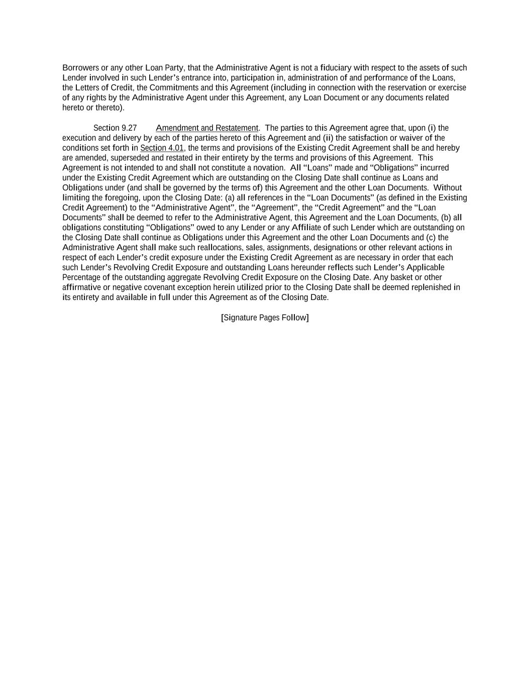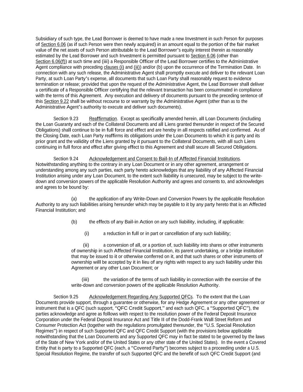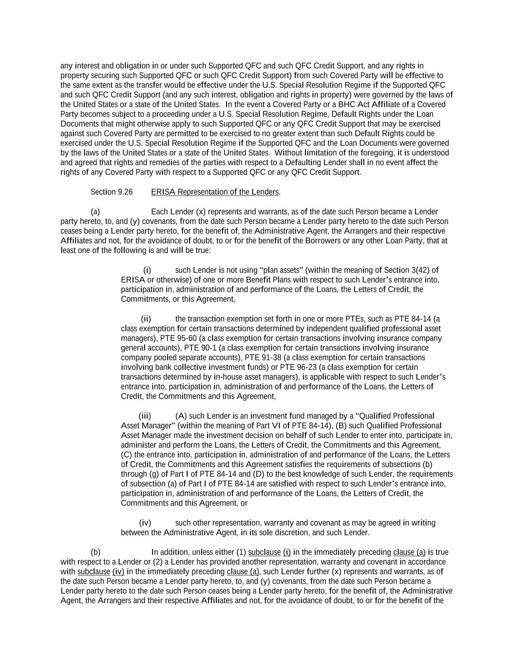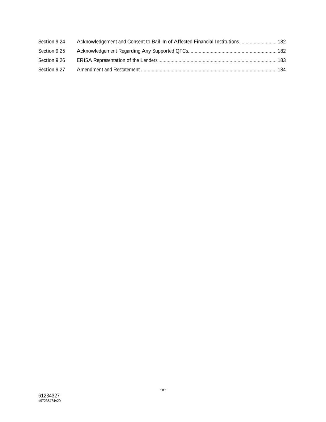-v- 61234327 #97236474v29 Section 9.24 Acknowledgement and Consent to Bail-In of Affected Financial Institutions ............................ 182 Section 9.25 Acknowledgement Regarding Any Supported QFCs.................................................................. 182 Section 9.26 ERISA Representation of the Lenders ........................................................................................ 183 Section 9.27 Amendment and Restatement ..................................................................................................... 184