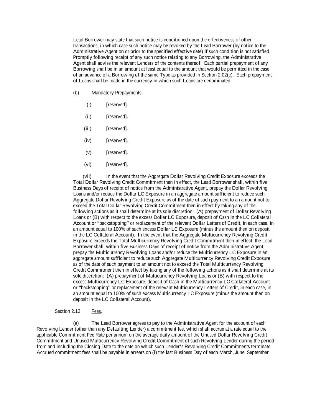 The Credit Agreement does not contain any mandatory prepayment provisions with respect to the Revolving Facility, except in the event that the overall exposure exceeds the commitments under the Revolving Facility.