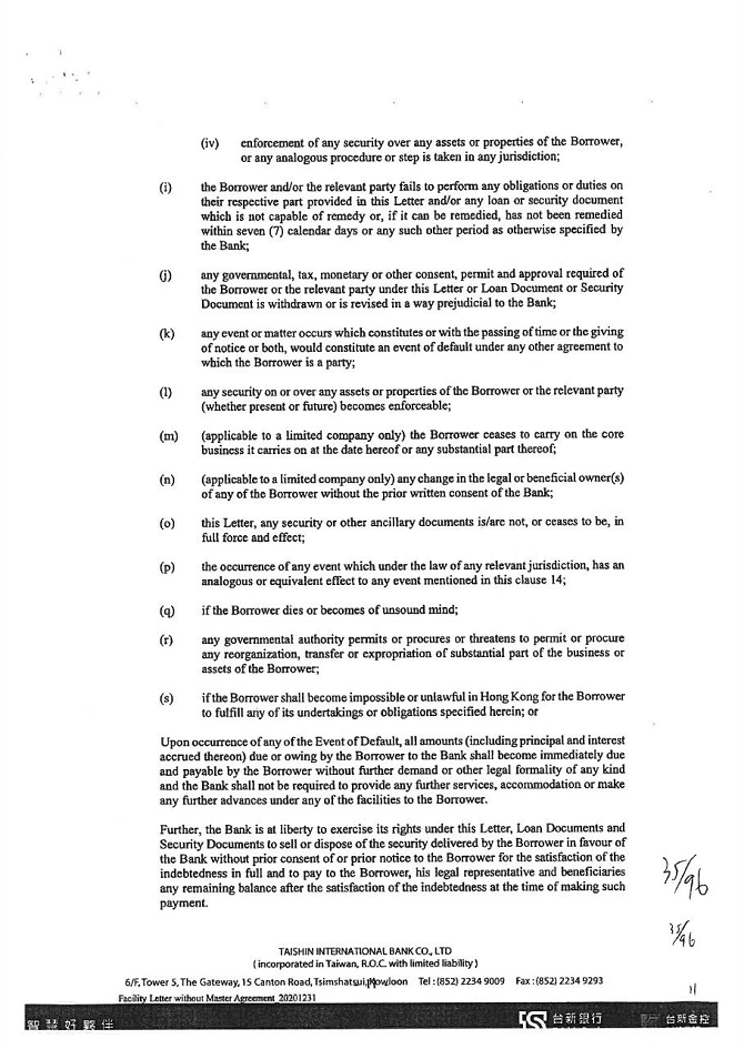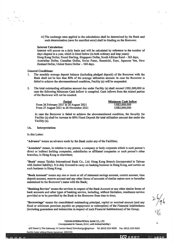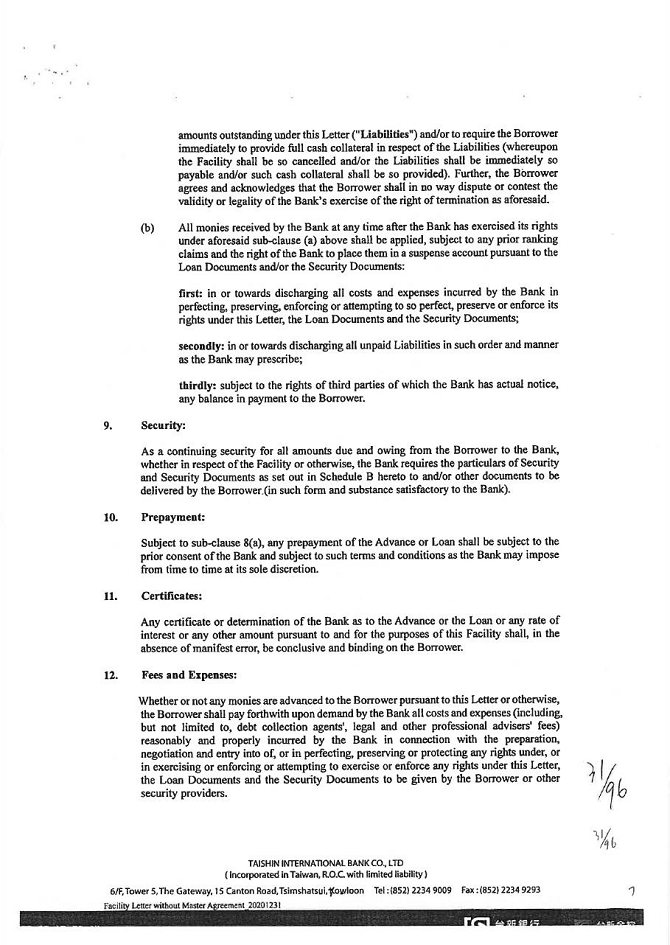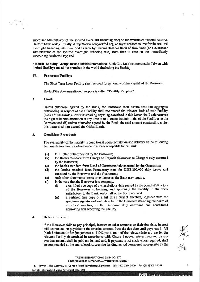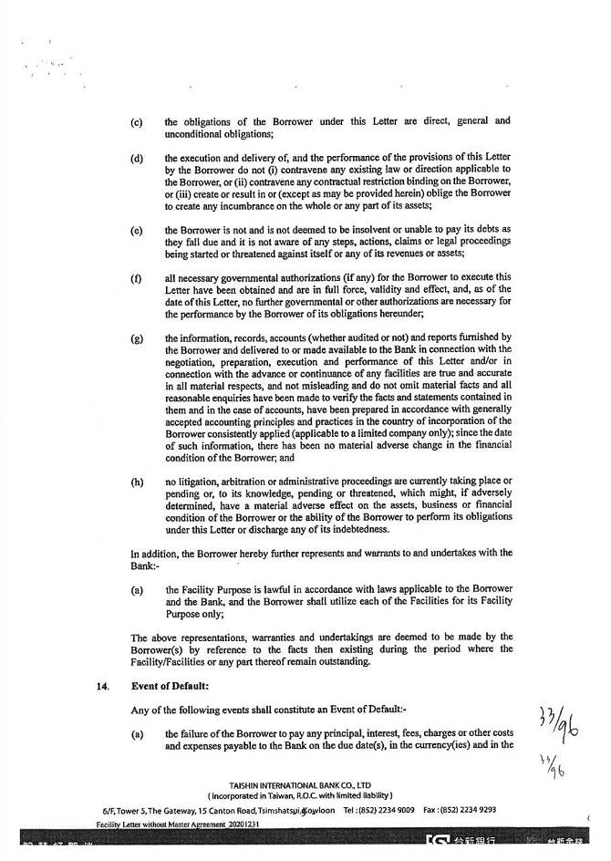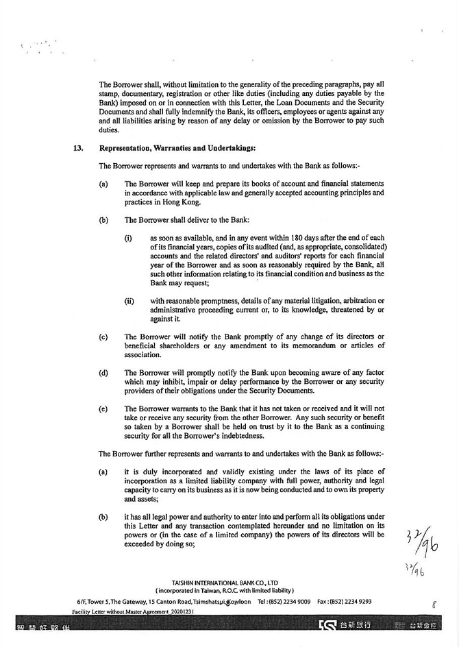 1. The guarantor is willing to accept KTB’s supervision of the purpose of credit, audit of business finance, inspection of collateral, supervision and access to relevant account books, statements (including consolidated financial statements of related enterprises), and documents at any time. When KTB deems it necessary, the guarantor may be required to complete the credit information on schedule, or to provide the accounting financial statements from the KTB accredited accountant and to request the accountant to provide working papers. However, KTB is not obligated to provide supervision, audit, consultation, information and credit inquiry. When KTB believes that the guarantor’s financial structure should be improved and therefore requires further changes, the guarantor should follow suit.