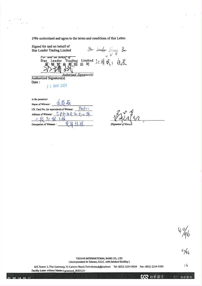 | Star Leader Trading Limited | Hong Kong | |