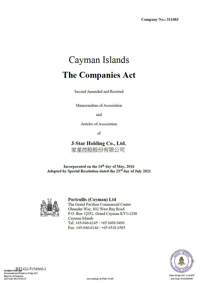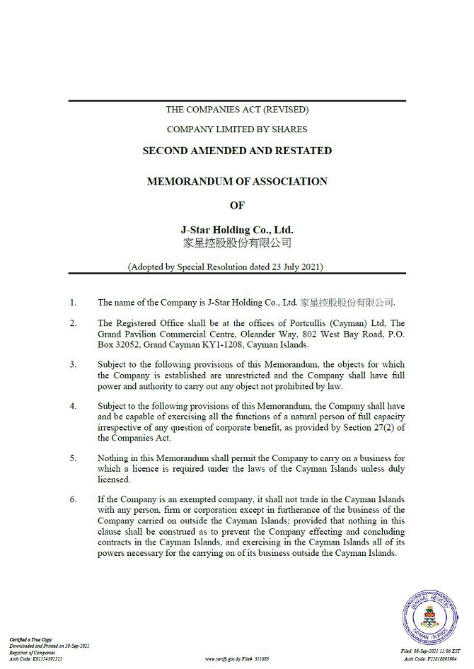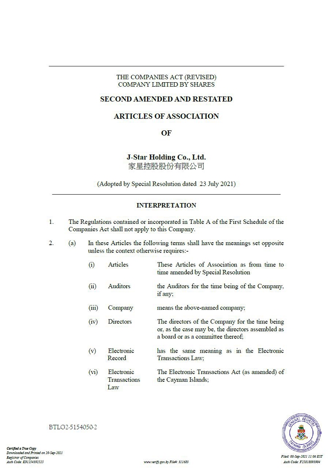 All references to “we,” “us,” “our,” “our company,” the “Company,”“our group,” the “Group” or similar terms used in this prospectus refer to J-Star Holding Co., Ltd., an exempted company with limited liability incorporated under the laws of the Cayman Islands, including its consolidated subsidiaries, unless the context otherwise indicates. To specifically indicate any of the subsidiaries under J-Star Holding Co., Ltd, separated definition of each subsidiary is adopted as defined below in order to refer to the same.