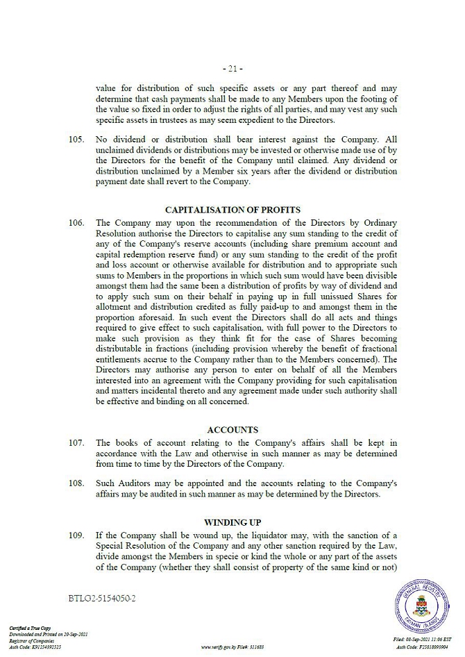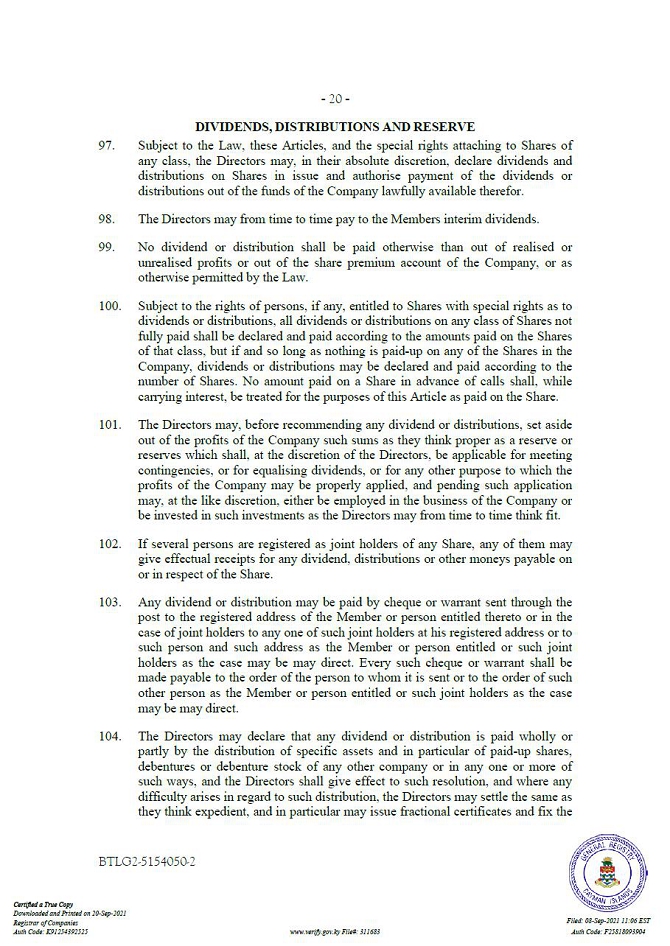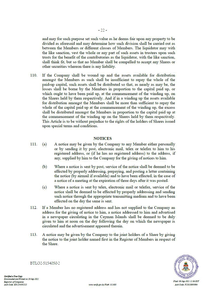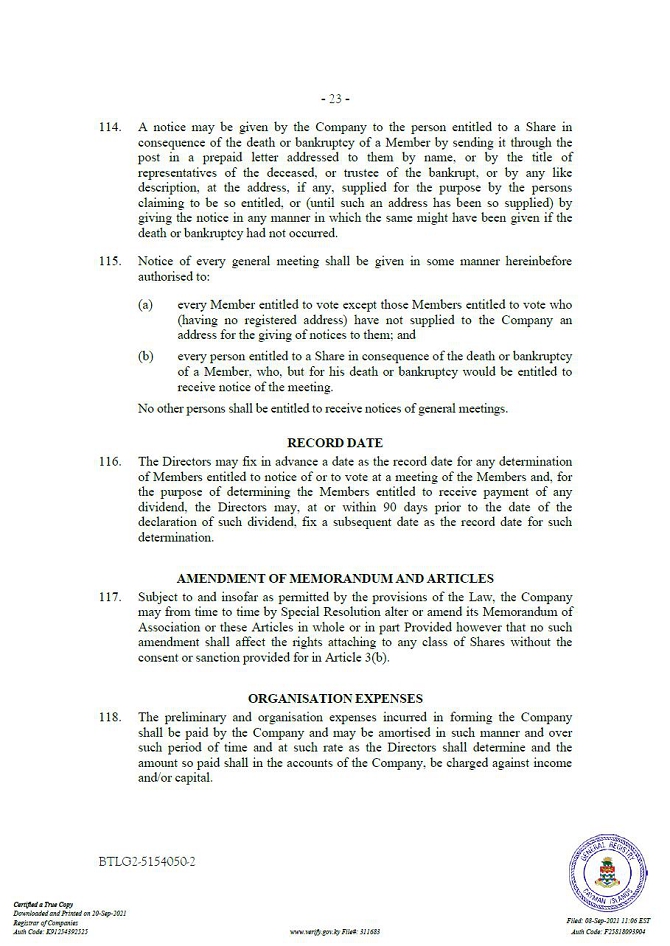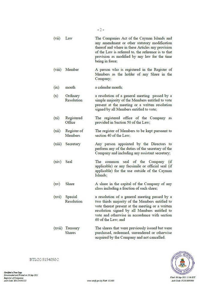 “Companies Act” means the Companies Act (2021 Revision) of the Cayman Islands, as may be amended from time to time.