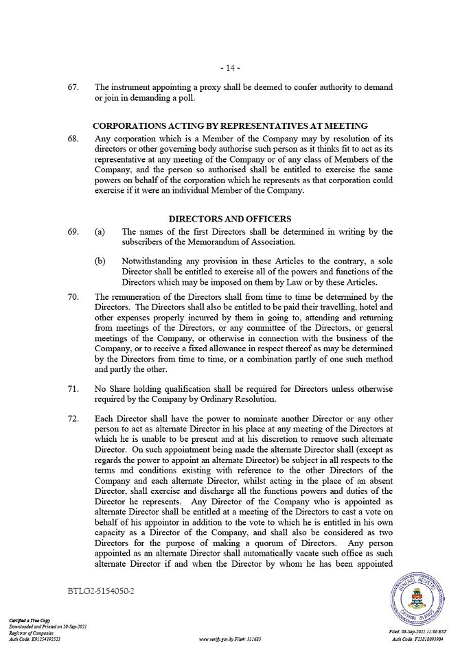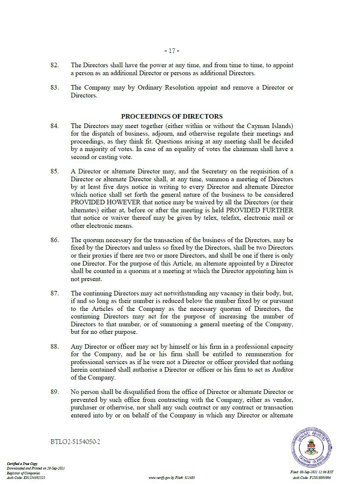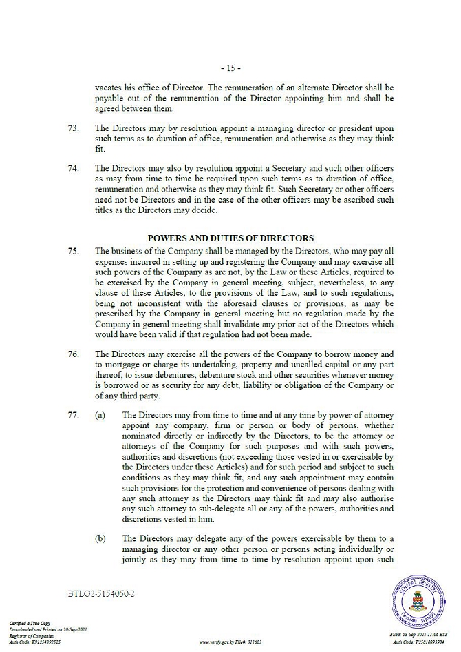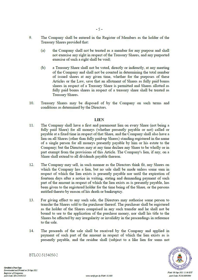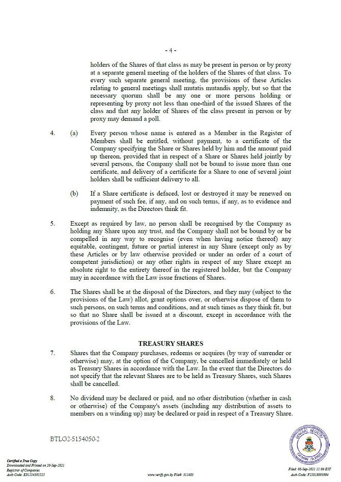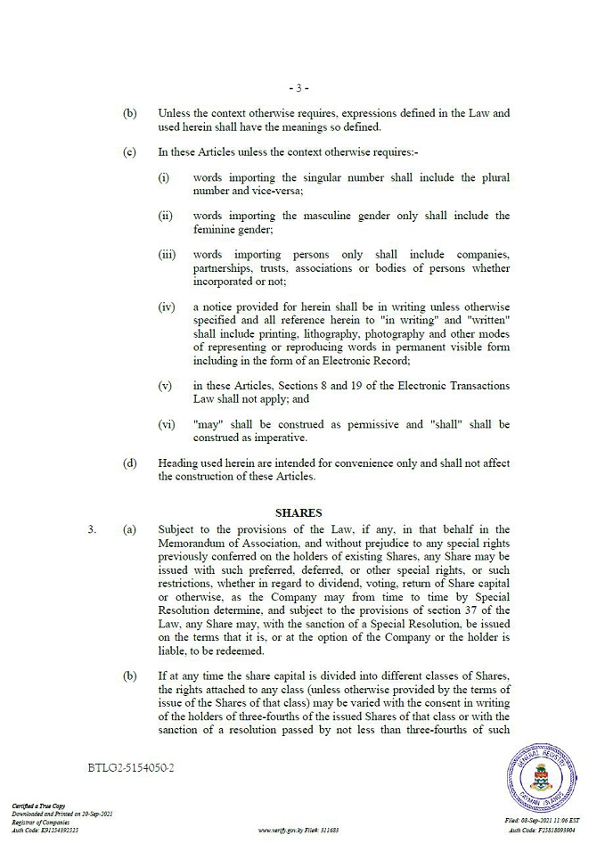 “Companies Act” means the Companies Act (2021 Revision) of the Cayman Islands, as may be amended from time to time.