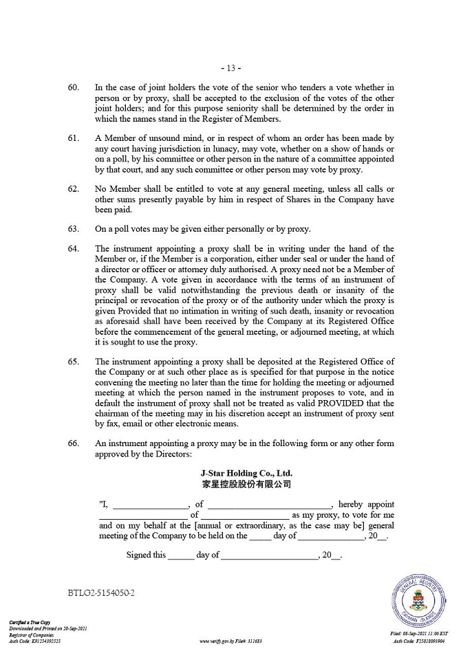Recent statements by the Chinese government initiated a series of regulatory actions and statements to regulate business operations in China with little advance notice, including cracking down on illegal activities in the securities market, adopting new measures to extend the scope of cybersecurity reviews, and expanding the efforts in anti-monopoly enforcement. Since these regulatory actions and statements are new, it is highly uncertain how soon legislative or administrative regulation making bodies will respond and what existing or new laws or regulations or detailed implementations and interpretations will be modified or promulgated, if any, and the potential impact such modified or new laws and regulations will have on our business operations in China, the ability to accept foreign investments and list on a U.S. or other foreign exchange. Any future action by the Chinese government expanding the categories of industries and companies whose foreign securities offerings are subject to government review could significantly limit or completely hinder our ability to offer or continue to offer securities to investors and could cause the value of such securities to significantly decline or be worthless. For a detailed description of the risks related to doing business in the PRC, and the offering, see “Risks Related to Conducting Operations in PRC” and “Risks Related to this Offering and Ownership of Our Ordinary Shares” in the Risk Factors section. Unless otherwise stated, as used in this prospectus, “we,” “us,” “our company,” the “Company,” “our,” “our group,” or the “Group” refers to J-Star Holding Co., Ltd., together with its subsidiaries, and also in the context of describing our operations and consolidated financial information. To specifically indicate any of the subsidiaries under J-Star Holding Co., Ltd, separated definition of each subsidiary is adopted as defined below in order to refer to the same.
