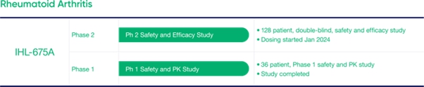 IHL-675A is our drug candidate in an ongoing Australian Phase 2 trial for the treatment of inflammatory conditions, with an initial focus on rheumatoid arthritis (“RA”). IHL-675A is an oral fixed dose combination of cannabidiol and hydroxychloroquine sulfate designed to target two different pathways, acting synergistically to alleviate inflammation. In our Phase 1 clinical trial, IHL-675A was observed to be well-tolerated and bioavailable. In preclinical studies, IHL-675A was observed to reduce inflammatory markers and disease scores across multiple animal inflammatory disease models and in vitro assays. The Phase 2 trial is investigating the safety and efficacy of IHL-675A in rheumatoid arthritis patients. We anticipate reporting top-line data from this Phase 2 trial in the second half of 2025.