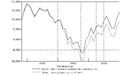 The chart shows how the value of your investment would have changed, and also shows how the J.P. Morgan Emerging Markets Bond Index Global Diversified Index performed over the same period.
