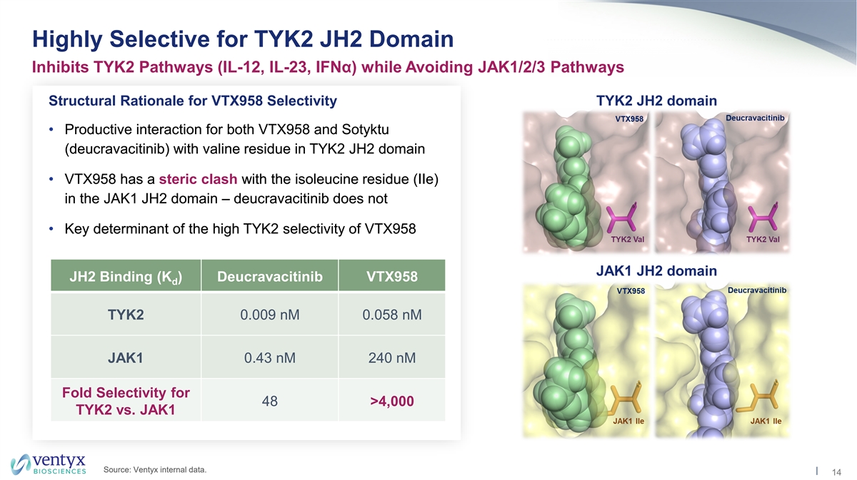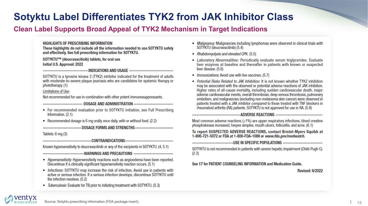 Sotyktu Label Differentiates TYK2 from JAK Inhibitor Class Clean Label Supports Broad Appeal of TYK2 Mechanism in Target Indications Source: Sotyktu prescribing information (FDA package insert). 13
