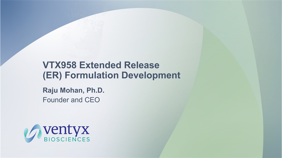 VTX958 Extended Release (ER) Formulation Development Raju Mohan, Ph.D. Founder and CEO 33