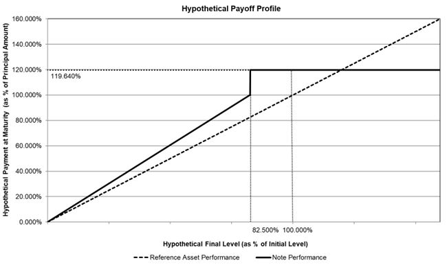 is greater than or equal to the threshold level of 82.50% of the initial level (equal to the closing level of the index on the pricing date), you will receive the threshold settlement amount of between $1,196.40 and $1,231.00 (to be determined on the