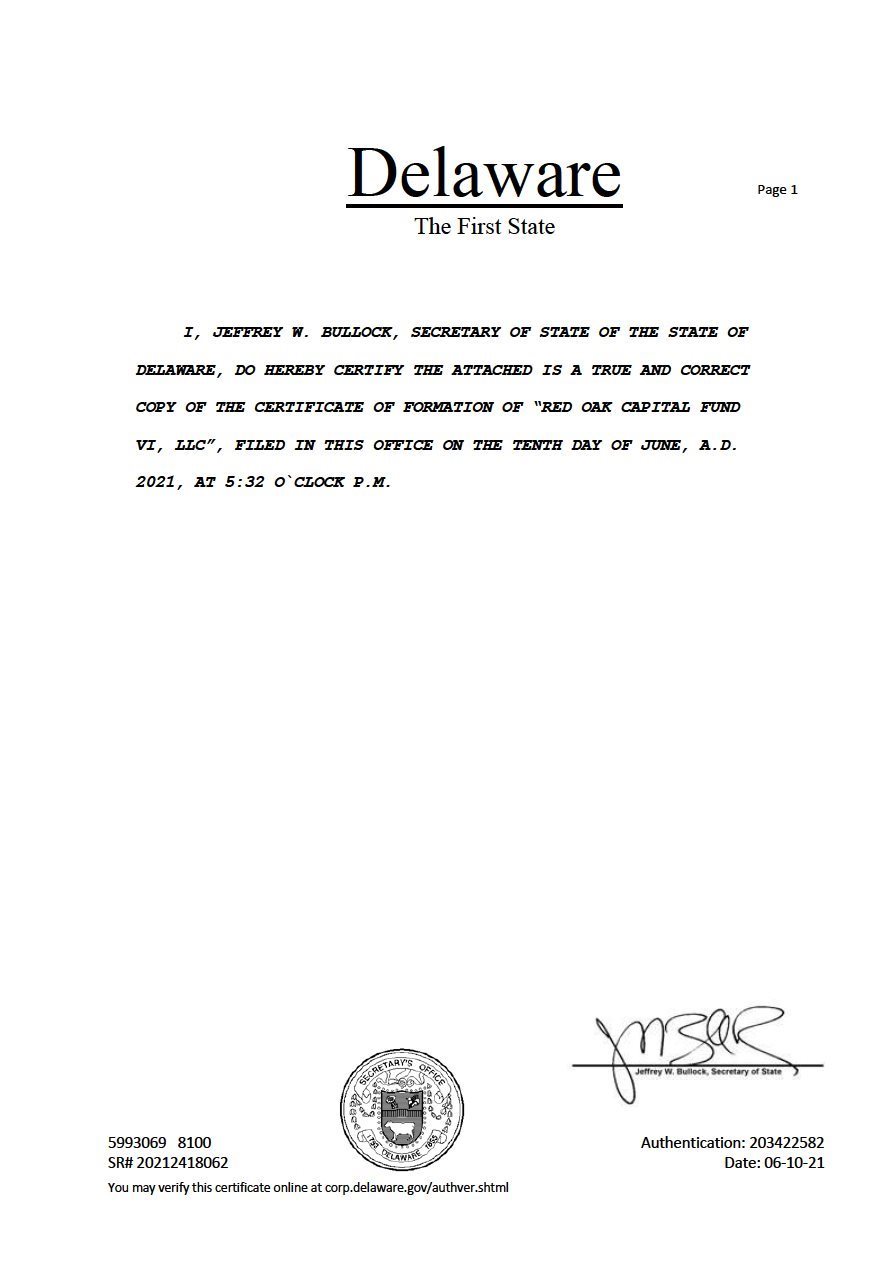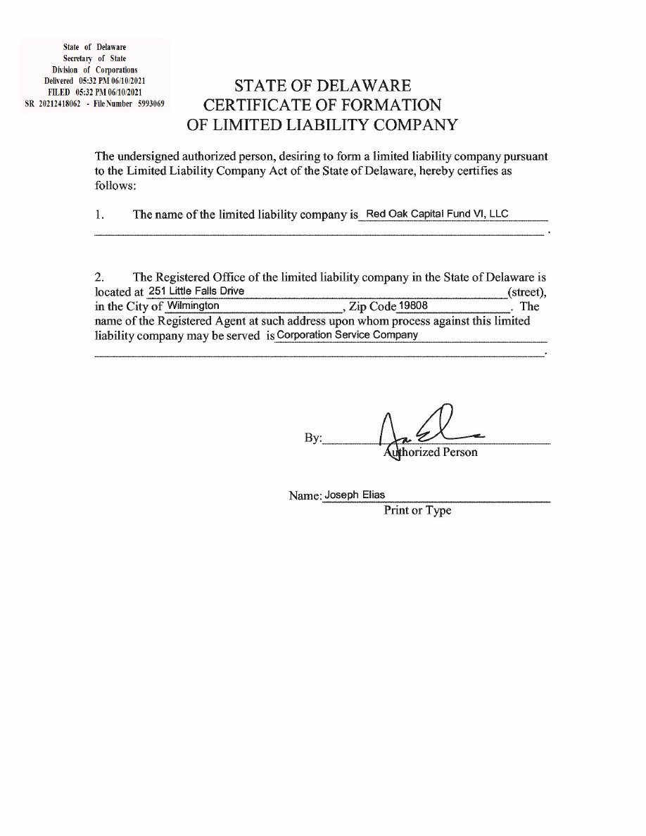 | Company | Red Oak Capital Fund VI, LLC, a Delaware limited liability company. | |