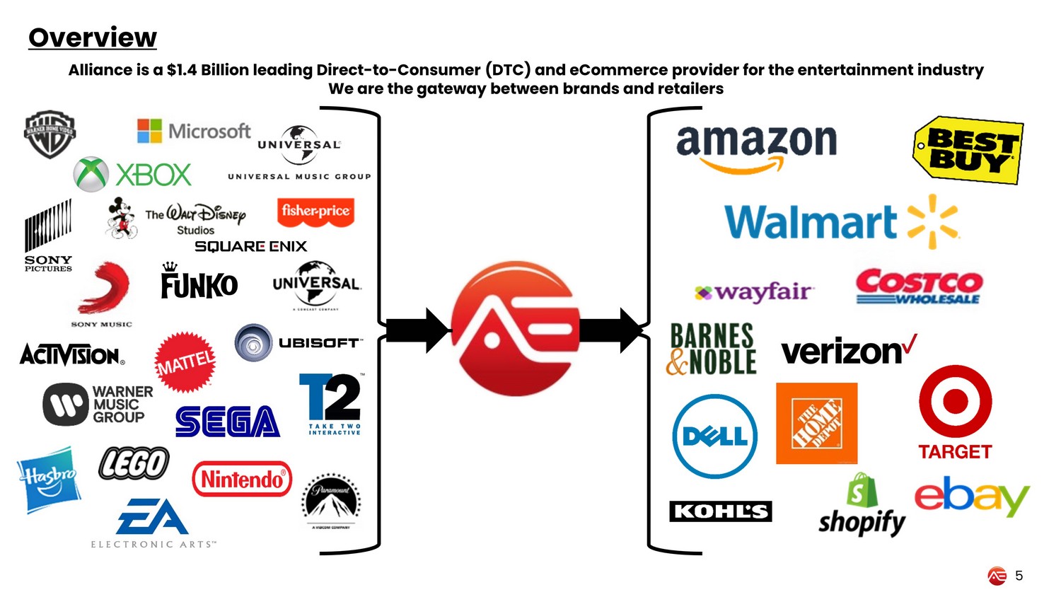 Overview Alliance is a $1.4 Billion leading Direct - to - Consumer (DTC) and eCommerce provider for the entertainment industry We are the gateway between brands and retailers 5