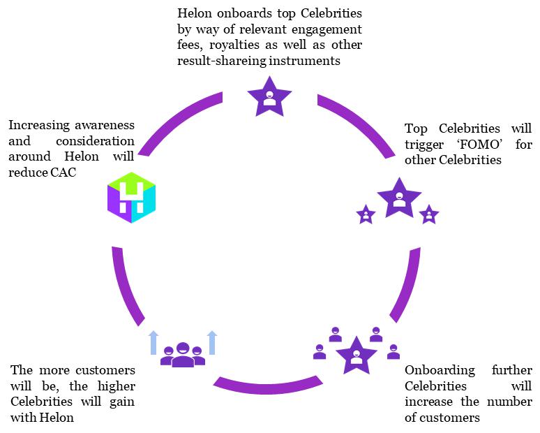 In this perspective, the Helon platform is aimed both at the Celebrities to whom it offers an unprecedented possibility of exploitation (and, therefore, monetization) of their image, as well as new channels of contact with their fan base; and at the public to whom it offers an innovative opportunity for aggregation based on common preferences and realized through digital assets that represent, at the same time, an opportunity for collecting, interaction with the Celebrities, gaming and earning.