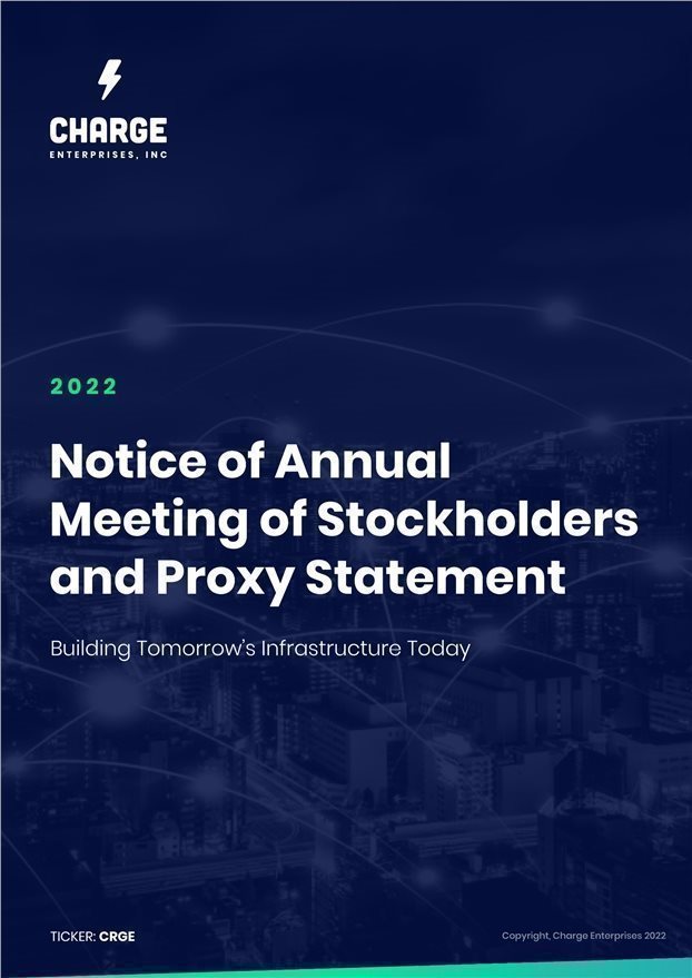The 2022 Annual Meeting of Stockholders (the “Annual Meeting”) of Charge Enterprises, Inc. will be held at Hyatt Regency Miami, 400 SE 2nd Avenue, Miami, Florida 33131 on Thursday, September 22, 2022 at 9:00 a.m., Eastern Time, for the following purposes, which are more fully described in the accompanying Proxy Statement: