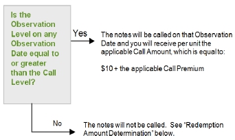 The notes will be called at $10.00 plus the applicable Call Premium if the Observation Level on one of the Observation Dates is equal to or greater than the Call Level. After the notes are called, they will no longer remain outstanding and there will not be any further payments on the notes.