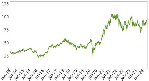 The following graph shows the daily historical performance of MS on its primary exchange in the period from January 1, 2014 through April 25, 2024. We obtained this historical data from Bloomberg L.P. We have not independently verified the accuracy or completeness of the information obtained from Bloomberg L.P. On the pricing date, the Closing Market Price of MS was $92.56. The graph below may have been adjusted to reflect certain corporate actions such as stock splits and reverse stock splits.