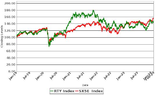 Historical Performance of the EURO STOXX 50® Index and the Russell 2000® Index