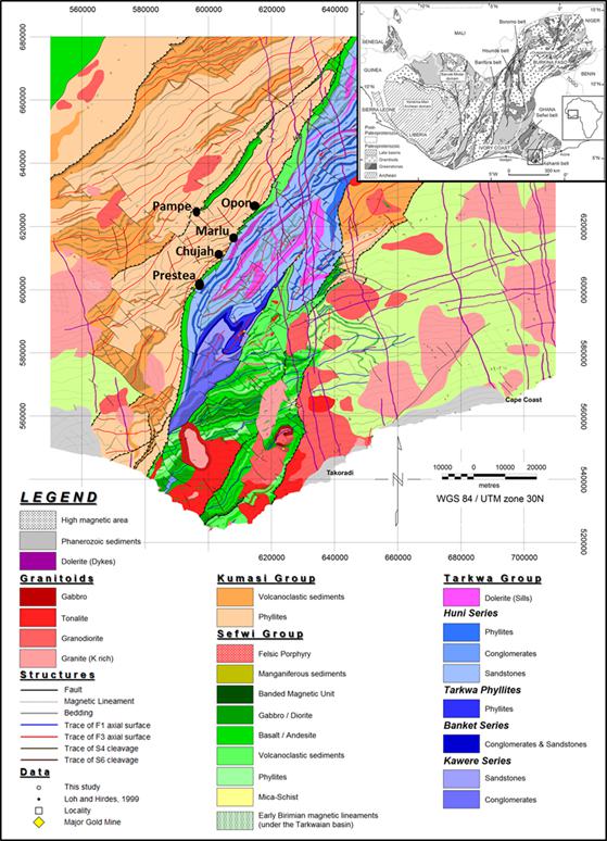 Golden Star (2018). NI43-101 Technical Report on Resources and Reserves Golden Star Resources Ltd, Bogoso/Prestea Gold Mine, Ghana. Effective Date December 31, 2017. Report prepared by Golden Star Resources Ltd. March 2018. 287pp.