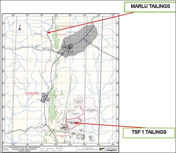 Re-mining and processing of TSF-1 tailings is not currently included in the LOM plan as it is not supported with a Mineral Resource estimate or metallurgical testwork. However, a conceptual Management Plan has been included within the LOM plan for review once a mineral resource has been developed pending future required works. Treatment of the TSF-1 tailings would necessitate processing in parallel with the operating oxide CIL plant whereby the carbon stripping circuit and general plant utilities and services, including reagent preparation, would be utilised with modifications as required. The conceptual plan calls for the re-mining of 18.5Mt of TSF-1 tailings at a rate of circa 4Mtpa commencing January 2025. The average head grade is stated as 0.87 g/t Au with a planned recovery of 40.6%.